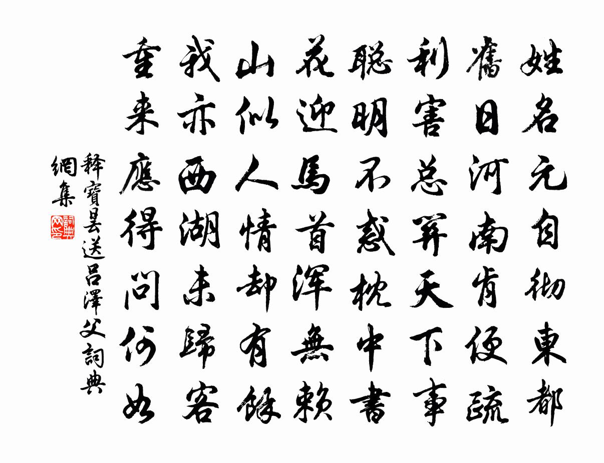 詩詞名句歷史字典書法欣賞書法字典國語詞典說文解字康熙字典古漢語字典標 題 作 者 詩 句 送呂澤父作者:釋寶曇 朝代:宋代送呂澤父原文姓名元自徹東都,舊日河南肯便疏。利害總關天下事,聰明不惑枕中書。花迎馬首渾無賴,山似人情卻有餘。我亦西湖未歸客,重來應得問何如。詩詞問答問:送呂澤父的作者是誰?答:釋寶曇問:送呂澤父寫於哪個朝代?答:宋代釋寶曇送呂澤父書法欣賞送呂澤父書法作品詩詞推薦田間夜歸有作示王覺民二首王之道〔宋代〕江上秋來憶少年,龜腸尤覺病詩饕。調和索似三分醬,澒洞看如八斗糟。水怪重增風勢惡,湘靈難禁雁聲高。何當金陵雜興二百首蘇泂〔宋代〕宛轉歌喉一串珠,玉人花貌更清姝。明年東武南城唱,試覓源流定憶渠。游東庵黃庚〔宋代〕庵連兜率寺,三徑竹邊開。林密暑不到,窗虛月自業。暮山啼鳥靜,雲樹嘯猿哀。拂拭殘碑字,年深半緣苔。齊天樂(重遊番陽)丁默〔宋代〕兩株煙柳荒城外,依依暮帆曾駐。小扇障塵,輕輿貼岸,誰料重行吟處。流光暗度。悵蘭漵春移,葦汀秋聚。可奈清平樂張元乾〔宋代〕亂山深處。雪擁溪橋路。曉日乍明催客去。驚起玉鴉翻樹。翠衾香暖檀灰。一枝想見疏梅。憑仗東風說與,畫眉人暑退秋夜賞月姜特立〔宋代〕冠巾暑退才如律,詩酒交清不作疏。今夕孤光清到骨,鏤冰裁玉滿林廬。卜運算元楊無咎〔宋代〕婆娑月里枝,隱約空中露。擬訪嫦娥高處看,一夜心生羽。仙種落人間,群艷難儔侶。惱亂騷人有底香,欲賦無奇滿江紅毛並〔宋代〕潑水初收,鞦韆外、輕煙漠漠。春漸遠、綠楊芳草,燕飛池閣。已著單衣寒食後,夜來還是東風惡。對空山、寂寂病起五首劉克莊〔宋代〕躬圭寶箑俱藏起,出入惟消笠與簑。農說雨暘差有準,客談間諜易傳訛。豐年海熟田尤熟,新地朝和野亦和。縱使州上元晁說之〔宋代〕酷愛鄜州月,真分紫府燈。月收煙蕩漾,燈比石稜層。代陳季若上張帥林光朝〔宋代〕一樣官儀漢代新,乘時大手與經綸。東南自古衣冠地,桐柏山前淮水春。如夢令向鎬〔宋代〕野店幾杯空酒,醉里兩眉長皺,已是不成眠,那更酒醒時候,知否,知否?直是為他消瘦。賀新郎王奕〔宋代〕何而不感。遂賦此呈燕五峰。帆卸西灣側。望康廬、老峰面目,舊曾相識。歲歲滔滔江浪遠,回首暮雲空碧。今想湘靈鼓瑟王邕〔唐代〕寶瑟和琴韻,靈妃應樂章。依稀聞促柱,仿佛夢新妝。波外聲初發,風前曲正長。淒清和萬籟,斷續繞三湘。轉覺和文倅侯彥嘉二首王之道〔宋代〕相逢珠玉走佳章,顧我無能更老蒼。嘗鼎固應從指染,沖天行喜見雲翔。向來別恨江同遠,此去詩情日共長。才似和平父寄道光法師王安石〔宋代〕欲見道人非一朝,杖藜無路到青霄。千岩萬壑排風雨,想對桐爐柏子燒。浣溪沙晏幾道〔宋代〕午醉西橋夕未醒,雨花淒斷不堪聽。歸時應減鬢邊青。衣化客塵今古道,柳含春意短長亭。鳳樓爭見路旁情。鴛鴦湖棹歌 之二十六朱彝尊〔清代〕梅花小閣兩重階,屈戍屏風六扇排。不及張銅爐在地,三冬長暖牡丹鞋。游先主祠堂置酒范祖禹〔宋代〕驅車酒出郊坰,酒涉溪上青酒岑。峰頭野寺不足到,先主祠堂猶可尋。祠堂之前流水長,翠屏重疊搖清光。老松窈德宗皇帝輓歌詞四首白居易〔唐代〕執象宗玄祖,貽謀啟孝孫。文高柏粱殿,禮薄灞陵原。宮仗辭天闕,朝儀出國門。生成不可報,二十七年恩。虞帝名句推薦琅琅新雨洗湖天,小景六橋邊。張可久《風入松·九日》 濃似春雲淡似煙,參差綠到大江邊。紀昀《富春至嚴陵山水甚佳》 幽音變調忽飄灑,長風吹林雨墮瓦李頎《聽董大彈胡笳聲兼寄語弄房給事》 紛披乍依迥,掣曳或隨風。李世民《詠興國寺佛殿前幡》 夫兩貴之不能相事,兩賤之不能相使,是天數也。荀子《荀子·王制》 斜髻嬌娥夜臥遲,梨花風靜鳥栖枝。唐寅《美人對月》 錢塘江上潮信來,今日方知我是我。施耐庵《水滸傳·第一百一十九回》 春風桃李花開日,秋雨梧桐葉落時。白居易《長恨歌》 去年戰桑乾源,今年戰蔥河道。李白《戰城南》 玉容寂寞淚闌乾,梨花一枝春帶雨。白居易《長恨歌》