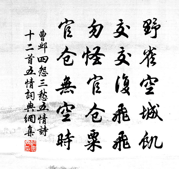 詩詞名句歷史字典書法欣賞書法字典國語詞典說文解字康熙字典古漢語字典標 題 作 者 詩 句 四怨三愁五情詩十二首。五情作者:曹鄴 朝代:唐代原文野雀空城飢,交交復飛飛。勿怪官倉粟,官倉無空時。詩詞問答問:《四怨三愁五情詩十二首。五情》的作者是誰?答:曹鄴問:該詩寫於哪個朝代?答:唐代書法欣賞四怨三愁五情詩十二首。五情書法作品注釋全唐詩詩詞推薦和刁推官蓼花二首蘇頌〔宋代〕蓮疏菊未破,野艷獨敷榮。濯水紅纓細,鋪園步障平。露寒偏發色,風勁不摧莖。采掇聊供餌,丹房助氣清。韓使君分送芍藥索詩因憶舊遊章甫〔宋代〕憶向西津櫂酒船,維揚去結看花緣。杖藜到處花輒好,夭紅艷紫相留連。散盡黃金攜酒友,夜深明月還京口。中流挽史允叟慈母王氏陳著〔宋代〕彼美蘭儀盎粹溫,誰知肅肅范閨門。生榮夢視金花誥,死瞑培成玉樹根。中一袝嚴家稱禮,終三年制子權恩。我來次李提舉桂花韻楊冠卿〔宋代〕人間初未識奇木,子落蟾宮秋政芳。托根底事在幽谷,要伴清都山水郎。秋夜徐瑞〔宋代〕沉沉秋夜靜,輕策步中庭。止酒天真澹,烹茶世夢醒。風枝繞驚鵲,露草度流螢。物化猶如此,浮生可得停。季天敘為人相宅過余求詩戲書二絕鄭剛中〔宋代〕由來南巷獨甘貧,季老徒夸眼有神。未暇相煩展高棟,方圖種德效前人。送趙國宜直筠州戶掾陳文蔚〔宋代〕苦無多路旅程寬,正是江南綠打團。欲濕征衫梅雨細,不成客夢麥秋寒。官閒詩可頻搜句,親近書宜月問安。自笑頌古三首釋淨全〔宋代〕是見受時眼著屑,見如不受事猶乖。賊身已露徒回首,鬼面神頭一處埋。謝劉簿李尉見訪黃庶〔宋代〕詩書臥蓬蓽,柴門晝方開。邑官劉與李,馬蹄破蒼苔。林居厭蛙黽,喜振敝席埃。見此六翮姿,茅荊共徘徊。我欲化成岩二首趙汝鐩〔宋代〕命友化成岩,同尋頃刻閒。半途瞻佛塔,數里入禪關。鬆動影移日,江清波漾山。衛公讀書處,有鷺宿其間。次韻蒲大受書懷十首郭印〔宋代〕物齊人即我,天運古猶今。但得丹田固,寧憂白髮侵。情忘心坦坦,神定息深深。卻笑靈均輩,悲哀澤畔吟。司徒侍中宋宣獻公輓詞五首蔡襄〔宋代〕懷道初名世,乘時遂致君。平分百年算,中據兩台文。行翣連寒樹,凝笳上晚雲。路人那得識,揮涕指幽墳。清心鏡 贈劉小官馬鈺〔元代〕一青牛,二條尾。三雙眼兒,仰觀俯視。四個蹄、雪白如銀,五方中嬉戲。六欲七情俱總廢。八味瓊漿,飲來光明次韻良佐歇心歌三首陶夢桂〔宋代〕隨意栽培花幾窠,梅坡安穩即鑾坡。土尊豈勝茅柴酒,法曲何如欸乃歌。著意事無虛事有,快行時少坐時多。閒身和三司晏尚書西園暇日宋祁〔宋代〕陰陰嘉樹雜花殘,下畹行吟靜更歡。草葉參差聊藉帶,竹皮紛墮即為冠。餘杯更辨浮冰酎,小衽初思御月紈。公有偈頌六十五首釋普濟〔宋代〕眼耳鼻舌身意,八萬四千法門,晝夜放光放動。一翳在眼,空花亂墜。秋日謁清臣宗叔紀洞霄景二首趙汝普〔宋代〕欲揮塵事訪名山,更羨吾宗吏事閒。龍穴藏身空世慮,源泉撫掌傲人寰。花障姚中一〔宋代〕綠外穠黃白外紅,一屏香錦立春風。天真步障豪難敵,借與王家賽石崇。減字木蘭花(有感)劉辰翁〔宋代〕東風似客。醉里落花南又北。客似東風。攜手斜陽一笑中。佳人怨我。不寄江南春一朵。我怨佳人。憔悴江南不似送顧侍郎安撫浙東程珌〔宋代〕通明殿上紫芝仙,乞得閒身下九天。今日都門臨祖處,幾人驚嘆著鞭先。名句推薦以地事秦,譬猶抱薪而救火也,薪不盡,則火不止。劉向《戰國策·魏三·華軍之戰》 風引龍虎旗,歌鐘昔追攀。李白《登邯鄲洪波台置酒觀發兵》 紅顏未老恩先斷,斜倚薰籠坐到明。白居易《後宮詞》 歲寒,然後知松柏之後凋也。孔子弟子《論語·子罕篇》 水何澹澹,山島竦峙曹操《觀滄海》 黃雲隴底白雲飛,未得報恩不能歸。李頎《古意》 取次花叢懶回顧,半緣修道半緣君。元稹《離思五首·其四》 不是花中偏愛菊,此花開盡更無花。元稹《菊花》 君不密則失臣,臣不密則失身,幾事不密則害成。是以君子慎密而不出也。佚名《易傳·繫辭傳上·第八章》 墉集欺貓鼠,林藏逐雀鸇。徐威《中秋詠懷借杜子美秋日述懷一百韻和寄柳州假鳴桑先生》