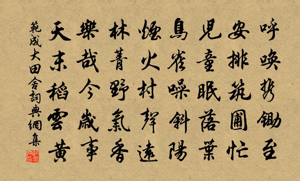 詩以歡快的節奏開始,說農民們互相呼喚著,拿起鋤頭,忙忙碌碌地趕著修築打穀場。秋收是農民一年的寄託所在,從起首兩句,人們馬上可以感受到今年的收成一定不錯。范成大的詩,善於在首聯渲染氣氛,為全詩的主題作好鋪墊,這首詩可作代表。