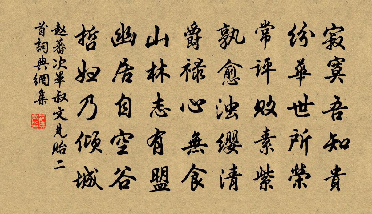 詩詞名句歷史字典書法欣賞書法字典國語詞典說文解字康熙字典古漢語字典標 題 作 者 詩 句 次畢叔文見貽二首作者:趙蕃 朝代:宋代次畢叔文見貽二首原文寂寞吾知貴,紛華世所榮。常評敗素紫,孰愈濁纓清。爵祿心無食,山林志有盟。幽居自空谷,哲婦乃傾城。詩詞問答問:次畢叔文見貽二首的作者是誰?答:趙蕃問:次畢叔文見貽二首寫於哪個朝代?答:宋代趙蕃次畢叔文見貽二首書法欣賞次畢叔文見貽二首書法作品詩詞推薦旅眠元稹〔唐代〕內外都無隔,帷屏不復張。夜眠兼客坐,同在火爐床。鹽池十八韻王禹偁〔宋代〕極望似江沱,漫漫起素波。兩池泉不竭,萬古利還多。場吏輸年額,畦丁奉月課。收時車並載,種處地先磨。碎顆四月十三日立夏呈安這司馬光〔宋代〕留春春不住,昨夜的然歸。歡趣何妨少,閒遊勿怪稀。林鶯欣有吒,叢蝶悵無依。窗下忘懷客,高眠正掩扉。點絳唇陳景沂〔宋代〕今古凡花,詞人尚作詞稱慶。紫薇名盛。似得花之聖。為底時人,一曲稀流詠。花端正。花無郎病。病亦歸之命。和士特栽果十首梅劉子翬〔宋代〕園林漸見綠陰濃,漠漠輕煙細雨中。底事望梅能止渴,惟應萬想先來空。普明院陳延齡〔宋代〕普明禪寺隱岩坰,狂客重來酒未醒。雲氣竟拖龍尾白,山容盡比拂頭青。松林深處誰家屋,村墅斜陽若個亭。莫問流崖州至鬼門關作楊炎〔唐代〕一去一萬里,千知千不還。崖州何處在,生度鬼門關。梅花引 贈老李先生馬鈺〔元代〕怎分曉。迷虛矯。愛戀家緣何日了。著塵囂。著塵囂。鐵做人從,遭他火院銷。猛悟無常非事小。跳出凡籠搜密妙岳州作張說〔唐代〕夜夢雲闕間,從容簪履列。朝游洞庭上,緬望京華絕。潦收江未清,火退山更熱。重欷視欲醉,懵滿氣如噎。器留次韻張守述懷劉子翬〔宋代〕避地漂流更海隅,一身難料豈知余。晚樓獨上非吾里,幾日西來絕羽書。虜未息兵由運數,力難康世昧孤虛。郡侯示客陸游〔宋代〕十年奔走每思歸,剩喜湖邊晝掩扉。社燕免教嘲作客,海鷗曾是信忘機。暉暉晚日收新稻,漠漠新寒試袷衣。留客次程斗山村居韻十首楊公遠〔宋代〕詩骨清臞甚,幾如沈隱侯。自編籬象眼,為護筍貓頭。日有丘園樂,身無世俗愁。憐渠名利客,汩汩幾時休。題童宰盤隱張煒〔宋代〕才了花陰入要塗,暫時歸去友樵漁。遠山數筆意不盡,流水一泓清有餘。我輩愛吟懷退步,誰人得計肯閒居。古梅水調歌頭魏了翁〔宋代〕煙雨斂江色,江水大於杯。蓬窗一枕霄夢,忽忽到無懷。苦被江頭新漲,推起天涯倦客,萬里片帆開。收用到我輩致政楊圖南僉判惠園亭石刻來索惡語寄題四首周必大〔宋代〕一見堂名憶豫州,豈知身在楚江頭。主人久享園中樂,晚歲宜先天下憂。酬君貺和景仁對酒見寄三首上侍中司馬光〔宋代〕何事掛冠客,至今留帝台。紅塵終可厭,青眼不長開。春路半銷雪,寒枝初破梅。南園虛客席,灑掃望公來。送翰林張司馬南海勒碑(相國制文)杜甫〔唐代〕冠冕通南極,文章落上台。詔從三殿去,碑到百蠻開。野館濃花發,春帆細雨來。不知滄海上,天遣幾時回。步出武陵東亭臨江寓望劉禹錫〔唐代〕鷹至感風候,霜餘變林麓。孤帆帶日來,寒江轉沙曲。戍搖旗影動,津晚櫓聲促。月上彩霞收,漁歌遠相續。詩曹丕〔魏晉〕絹綃白如雪。輕華比蟬翼。送高九萬葛紹體〔宋代〕詩名空滿浙江東,身事長嗟似轉蓬。正是梅天又離別,相思還在雨聲中。名句推薦燕子不來花又老,一春瘦的腰兒小。施耐庵《蝶戀花·一別家山音信杳》 青青河畔草,綿綿思遠道。佚名《飲馬長城窟行》 歸裝漸理君知否?笑指廬山古澗藤。陸游《自詠示客》 君子之學進於道,小人之學進於利。王通《中說·卷二·天地篇》 行非恆者,天禁之。爽事,地禁之。佚名《黃帝四經·十大經·三禁》 誠者自成也,而道自道也。子思《中庸·第二十五章》 眾里尋他千百度,驀然回首,那人卻在,燈火闌珊處。辛棄疾《青玉案·元夕》 樹曲木者,惡得直景劉向《說苑·君道》 一枝紅艷露凝香,雲雨巫山枉斷腸。李白《清平調·其二》 白鳥朱荷引畫橈,垂楊影里見紅橋,欲尋往事已魂消。王士禎《浣溪沙·紅橋》