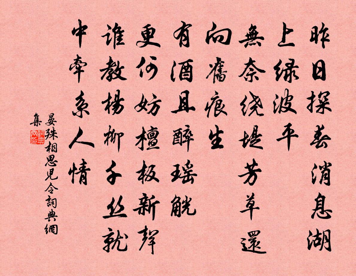 昨日探春訊息,湖上綠波平。無奈繞堤芳草,還向舊痕生。