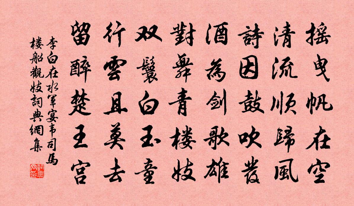 李白在水軍宴韋司馬樓船觀妓書法欣賞
