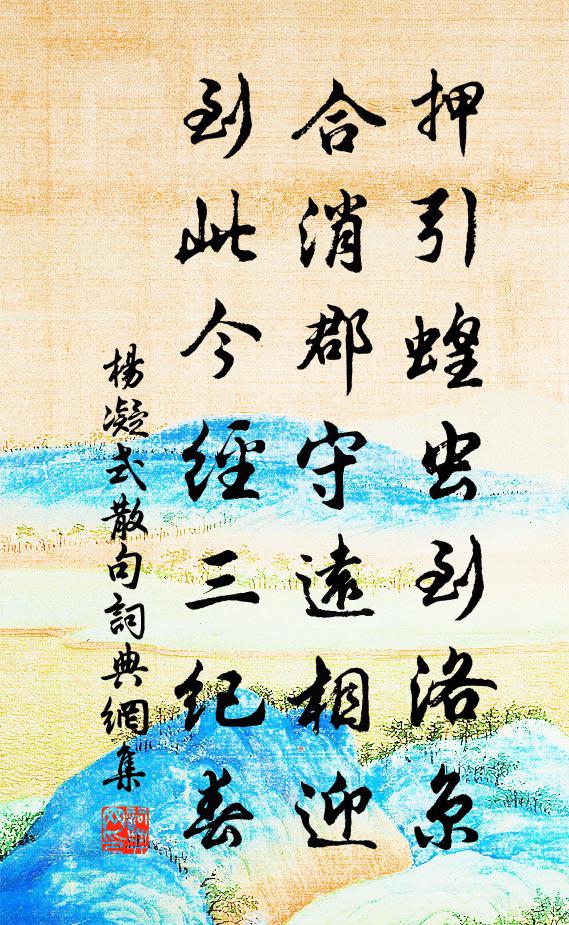 詩詞名句歷史字典書法欣賞書法字典國語詞典說文解字康熙字典古漢語字典標 題 作 者 詩 句 句作者:楊凝式 朝代:唐代句原文押引蝗蟲到洛京,合消郡守遠相迎。到此今經三紀春。詩詞問答問:句的作者是誰?答:楊凝式問:句寫於哪個朝代?答:唐代問:句是什麼體裁?答:句楊凝式句書法欣賞句書法作品注釋全唐詩:卷715-26詩詞推薦寄葛元成王汶〔宋代〕子規啼不歇,君向越山聽。既已疎吟伴,誰當共酒瓶。松花全是粉,柳絮半為萍。自笑無生計,閒箋相鶴經。春遊夏竦〔宋代〕豔豔春風雨半收,少年疏誕稱春遊。將軍雪散橋邊市,騎省花開縣外樓。草嫩玉堤藏墮珥,酒濃金盞滑歌喉。誰能題崖州洗兵亭胡銓〔宋代〕一帶清波六月涼,洗兵安用挽天潢。哥舒血蹴紅凝箭,子美苔欹綠臥槍。玉壘塵清閒擂鼓,玳筵風靜細流觴。澹庵和韋承慶過義陽公主山池五首杜審言〔唐代〕野興城中發,朝英物外求。情懸朱紱望,契動赤泉游。海燕巢書閣,山雞舞畫樓。雨余清晚夏,共坐北岩幽。徑轉泝溪陸游〔宋代〕射的峰前禹廟東,短篷三扇臥衰翁。閒攜清聖濁賢酒,重試朝南暮北風。水落痕留紅蓼節,雨來聲滿綠蒲叢。沖煙殘句一爐香對紫宮起蘇軾〔宋代〕一爐香對紫宮起,萬點雨隨青蓋歸。南奔書懷(一作自丹陽南奔道中作。蕭士贇雲是偽作)李白〔唐代〕遙夜何漫漫,空歌白石爛。甯戚未匡齊,陳平終佐漢。欃槍掃河洛,直割鴻溝半。歷數方未遷,雲雷屢多難。天人勸農二首奉呈同官諸丈陳淳祖〔宋代〕乃一秋一冬,愁聽鴻飛鳴。及茲問春半,土暖已足耕。殷勤勸欠老,尊酒若為情。我有一瓣香,為爾祈西成。晴光暮春江陵送馬大卿公,恩命追赴闕下杜甫〔唐代〕自古求忠孝,名家信有之。吾賢富才術,此道未磷緇。玉府標孤映,霜蹄去不疑。激揚音韻徹,籍甚眾多推。潘陸前海觀蓮花峰石濤〔清代〕海風吹白練,百里涌青蓮。壁立不知頂,崔嵬勢接天。雲開峰墜地,島闊樹相連。坐久忘歸去,蘿衣上紫煙。華之高壽魯齋先生七十金履祥〔宋代〕金華之高,其色蒼蒼。維華降神,生何及王。浪淘沙 競渡姚燧〔元代〕楚俗至今朝。服艾盈腰。喧江鐃鼓節蘭橈。士女踏歌巫覡舞,魚腹魂招。去古既雲遙。讒毀言消。修名立與日昭昭罷新定至錢塘喜見孫觀書記張伯玉〔宋代〕桐江撝袂蚤三年,把臂重來講舊篇。陌上風塵成底事,鬢邊霜雪但悠然。虬蟠我亦思滄海,鶚薦初方上碧天。忍把踏莎行張孝祥〔宋代〕洛下根株,江南栽種。天香國色千金重。花邊三閣建康春,風前十里揚州夢。油壁輕車,青絲短鞚。看花日日催賓金陵懷古唐彥謙〔唐代〕碧樹涼生宿雨收,荷花荷葉滿汀洲。登高有酒渾忘醉,慨古無言獨倚樓。宮殿六朝遺古蹟,衣冠千古漫荒丘。太平題銅陵陳公園雙池詩蘇軾〔宋代〕南北檐楹照綠波,濯纓洗耳不須多。天空月滿宜登眺,看取青銅兩處磨。時雨陸游〔宋代〕時雨及芒種,四野皆插秧。家家麥飯美,處處菱歌長。老我成惰農,永日付竹床。衰發短不櫛,愛此一雨涼。庭木巫山下作唐求〔唐代〕細腰宮盡舊城摧,神女歸山更不來。唯有楚江斜日裡,至今猶自繞陽台。偈頌二百零五首釋正覺〔宋代〕吸盡西江向汝道,馬師不肯落荒草。三千剎海一成秋,明月珊瑚冷相照。沁園春(嘆老)李呂〔宋代〕射虎南山,斷蛟北海,恍如夢中。念少年豪氣,霜寒一劍,清時功業,月滿雕弓。年去年來成底事,已一半消磨成名句推薦得不為喜,去不為恨。司馬遷《史記·日者列傳》 竹葉於人既無分,菊花從此不須開。杜甫《九日五首·其一》 故人不可見,新知萬里外。文天祥《端午即事》 酒伴來相命,開尊共解酲。孟浩然《春中喜王九相尋 / 晚春》 朔風如解意,容易莫摧殘。崔道融《梅花》 寧做太平犬,莫做離亂人!佚名《增廣賢文·下集》 思婦高樓上,當窗應未眠。徐陵《關山月》 濤瀾洶湧,風雲開闔。蘇轍《黃州快哉亭記》 危樓高百尺,手可摘星辰。李白《夜宿山寺》 山上層層桃李花,雲間煙火是人家。劉禹錫《竹枝詞九首·其九》