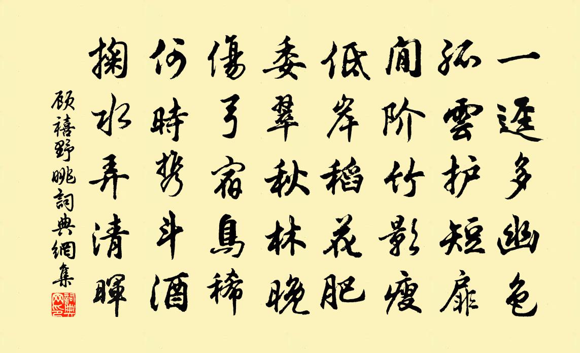 詩詞名句歷史字典書法欣賞書法字典國語詞典說文解字康熙字典古漢語字典標 題 作 者 詩 句 野眺作者:顧禧 朝代:宋代野眺原文一逕多幽色,孤雲護短扉。閒階竹影瘦,低岸稻花肥。委翠秋林晚,傷弓宿鳥稀。何時攜斗酒,掬水弄清暉。詩詞問答問:野眺的作者是誰?答:顧禧問:野眺寫於哪個朝代?答:宋代顧禧野眺書法欣賞野眺書法作品詩詞推薦秋夕竇鞏〔唐代〕護霜雲映月朦朧,烏鵲爭飛井上桐。夜半酒醒人不覺,滿池荷葉動秋風。食糖謠楊維楨〔元代〕朝食糠,暮食糠,食糠不如彘與龎。君王雁鶩令,以粟甘易糧。吁嗟今茫茫,吁嗟何遑遑。滿江紅 贈密庵述三教李道純〔元代〕教有三門,致極處、元來只一。這一字法門,深不可測。老子穀神恆不死,仲尼心易初無畫。問瞿曇教外**心,張德夫園亭八詠玉椽王炎〔宋代〕萬個龍孫長,梢梢上半天。清風長滿屋,蒼玉總如椽。秀色到今日,深根凡幾年。宜封管城子,濡首落雲煙。懷南塘朱省閱衛宗武〔宋代〕我如蟄戶居,跬步不可移。君有遠行役,暑途方驅馳。覘知所如往,謂已杭雙溪。人苟懷忠信,蠻貊其行之。平生張幾仲侍郎輓詞三首楊萬里〔宋代〕烈考同心德,中興異姓王。勳勞貫三極,文獻在諸郎。公也山林味,天乎日月忙。一生非不達,晚達卻堪傷。論語絕句一百首張九成〔宋代〕竊怪陳亢問伯魚,子今亦有異聞乎。喜雲聞一得三理,料得其他未必如。平陵東行曹植〔魏晉〕閶闔開。天衢通。被我羽衣乘飛龍。乘飛龍。與僊期。東上蓬萊采靈芝。靈芝采之可服食。年若王父無終極。滿江紅(高帥席上)劉過〔宋代〕敲面風輕,一兩點、海棠微雨。春總在、英雄元帥,曉來游處。樓閣萬家簾幕卷,江郊十里旌駐。有黃鸝、百舌囀酬李唐臣贈山水短軸晁補之〔宋代〕大山宮,小山霍,欲識山高觀石腳。 * 為瀾,小波為淪,欲知水深觀水津。營丘於此意獨親,杜侯所與復有人。金谷園花發懷古張公乂〔唐代〕今日春風至,花開石氏園。未全紅艷折,半與素光翻。點綴疏林遍,微明古徑繁。窺臨鶯欲語,寂寞李無言。谷變詠鄰人蘭花劉克莊〔宋代〕兩盆去歲共移來,一置雕闌一委苔。我拙事持令葉瘦,君能調護遣花開,隸人挑蠹巡千匝,稚子澆泉走幾回。亦欲續作永昭陵輓詞五首歐陽修〔宋代〕苦霧霏霏著彩旗,猶排吉仗雜凶儀。常時鳳輦行游處,今日龍輴慟哭隨。寄題舒州宿松知縣戴在伯重新紫霄亭二首楊萬里〔宋代〕一代名臣張右丞,玉山頭作紫霄亭。如今再得戴安道,拈出舊時山色青。於彝甫用許右丞別黃岩韻見寄亦用韻答之孫應時〔宋代〕世道從來久,襟期我輩知。躊躇遂初賦,嘆息考槃詩。歌斷尊長破,心存喜未衰。江湖秋葉外,千里更愁思。送鄆州知府宋諫議王安石〔宋代〕盛世千齡合,宗工四海瞻。天心初吁俊,雲翼首離潛。德望完圭角,儀形壯陛廉。徐鳴蒼玉佩,盡校碧牙籤。綸掖喜與韋左丞同入南省因敘舊以贈之白居易〔唐代〕早年同遇陶鈞主,利鈍精粗共在熔。[憲宗朝與韋同入翰林。]金劍淬來長透匣,鉛刀磨盡不成鋒。差肩北省慚非杪歲徐集孫〔宋代〕幾多風月費招邀,傳舍侵尋一載僑。客久夢魂安澹泊,歲殘老態厭喧囂。晴空雪片飄梅瓣,冷地春光上柳條。世事送人歸吳姚鵠〔唐代〕東吳與上國,萬里路迢迢。為別晨昏久,全輕水陸遙。湘陰島上寺,楚色月中潮。到此一長望,知君積恨銷。春晚客中雜吟四絕句程公許〔宋代〕昨夜青皇駕趣旋,星榆散漫晚風顛。一春無著供陶寫,滿硯塵埃費洗前。名句推薦自聞穎師彈,起坐在一旁。韓愈《聽穎師彈琴》 離愁不管人飄泊。年年孤負黃花約。黃機《憶秦娥·秋蕭索》 運往無淹物,年逝覺已催。謝靈運《歲暮》 臘盡愁難盡,春歸人未歸。馮夢龍《喻世明言·卷一》 此情可待成追憶?只是當時已惘然。李商隱《錦瑟》 霜風搗盡千林葉,閒倚筇枝數鸛巢。范成大《冬日田園雜興》 為者敗之,執者失之。是以聖人無為故無敗,無執故無失。老子《老子·德經·第六十四章》 流星透疏木,走月逆行雲。賈島《宿山寺》 官無常貴而民無終賤。有能則舉之,無能則下之。墨子《墨子·08章 尚賢(上)》 粽包分兩髻,艾束著危冠。陸游《乙卯重五詩》