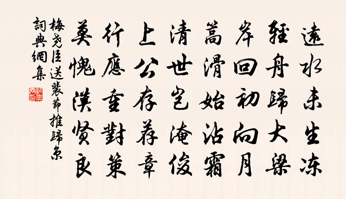 遠水未生凍,輕舟歸大梁。岸回初向月,篙滑始沾霜。