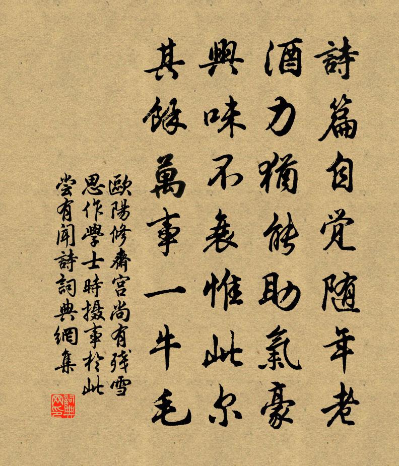 詩篇自覺隨年老,酒力猶能助氣豪。興味不衰惟此爾,其餘萬事一牛毛。