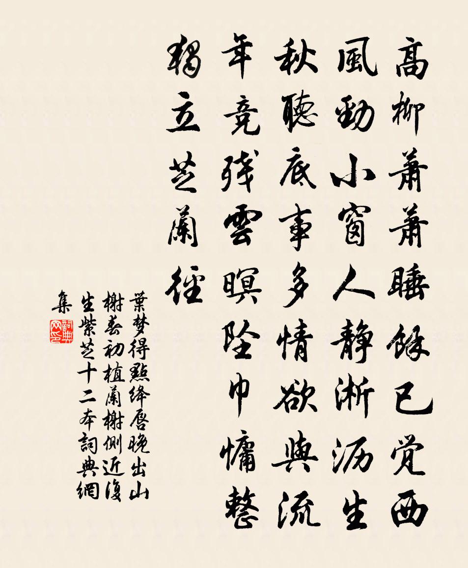 底事多情,欲與流年競。殘雲暝。墜巾慵整。獨立芝蘭徑。