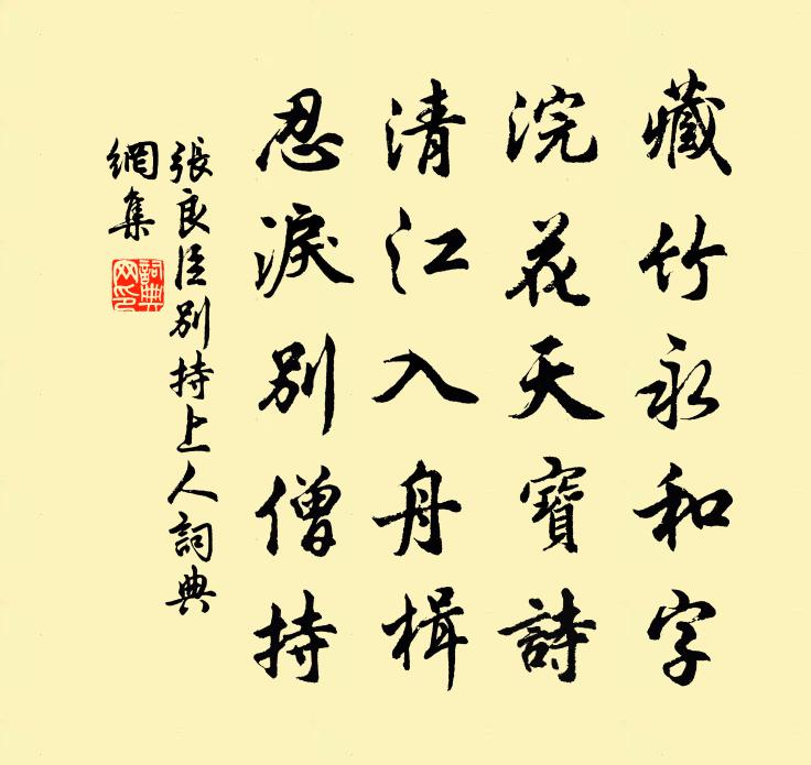 詩詞名句歷史字典書法欣賞書法字典國語詞典說文解字康熙字典古漢語字典標 題 作 者 詩 句 別持上人作者:張良臣 朝代:宋代別持上人原文藏竹永和字,浣花天寶詩。清江入舟楫,忍淚別僧持。詩詞問答問:別持上人的作者是誰?答:張良臣問:別持上人寫於哪個朝代?答:宋代張良臣別持上人書法欣賞別持上人書法作品詩詞推薦冬日書懷徐璣〔宋代〕閒庭黃葉滿,園樹盡玲瓏。寒水終朝碧,霜天向晚紅。蔬餐如野寺,茅舍近溪翁。非是分囂寂,由來趣不同。題畫九首唐寅〔明代〕煙水雲山天地寬,盡容樵斧與漁竿。麒麟閣上丹青筆,要畫須看得見難。洛陽女兒行王維〔唐代〕洛陽女兒對門居,才可容顏十五餘。良人玉勒乘驄馬,侍女金盤膾鯉魚。畫閣朱樓盡相望,紅桃綠柳垂檐向。羅幃上沙范成大〔宋代〕水邊犬吠隔疏林,籬落蕭森日半陰。繁杏鎖紅春意淺,晚梅飄粉暮寒深。和子由除夜元日省宿致齋三首蘇軾〔宋代〕當年踏月走東風,坐看春闈鎖醉翁。白髮門生幾人在,卻將新句調兒童。樂章五曲李復〔宋代〕鼓急兮收舞影,火銷兮膏燼冷。鄉人出門女巫醉,日下西山起陰暝。荇葉光,青幡長。壇前旗影動迴風,飛電忽轉古劍行韋應物〔唐代〕千年土中兩刃鐵,土蝕不入金星滅。沉沉青脊鱗甲滿,蛟龍無足蛇尾斷,忽欲飛動中有靈。豪士得之敵國寶,仇家和叔崇橘花韻二首王柏〔宋代〕清和景氣已非春,午陰濃處延詩人。一杯佳茗沃嘉話,粲然三禮羞蘩苹。洞庭手植清香發,金粟銀須照膚雪。薰風宮中行樂詞其八李白〔唐代〕水綠南薰殿。花紅北闕樓。鶯歌聞太液。鳳吹繞瀛洲。 * 鳴珠佩。天人弄彩球。毬今朝風日好。宜入未央游。小孤山陳從易〔宋代〕山稱孤獨字,廟塑女郎形。過客雖知誤,行人但乞靈。送師相陳大觀文喻良能〔宋代〕將令四海變虞唐,那得夔龍滯一方。寄語邦人休臥轍,道傍行看舍人裝。詠史下柳家婢陳普〔宋代〕過了秦灰漢又唐,衣冠誰不是牙郎。河東柳氏何師法,奴婢猶知蹈大方。送崔郎中往使西川行在韋莊〔唐代〕拜書辭玉帳,萬里劍關長。新馬杏花色,綠袍春草香。一身朝玉陛,幾日過銅梁。莫戀爐邊醉,仙宮待侍郎。紅樓夢十二曲——飛鳥各投林曹雪芹〔清代〕為官的家業凋零,富貴的金銀散盡。有恩的死裡逃生,無情的分明報應。欠命的命已還,欠淚的淚已盡:冤冤相報次韻范參政書懷陸游〔宋代〕宇內寓形財幾時,西山俄已迫斜暉。百年過隙古所嘆,眾口鑠金胡不歸。已是平生行逆境,更堪末路踐危機。夜香偈頌四十一首釋慧暉〔宋代〕風吹松雪月當空,一色功中轉步同。刖路分時無雪月,契約一色落功功。夢邴徵君員興宗〔宋代〕我夢窮躋攀,滑滑泥掩胯。我自摩天嶺,而轉風木榭。有客冠甚峨,見之驚已乍。邴姓原其名,風流蔑曹謝。賓我和陳亮功張次夔二同年唱酬廉字誠字之作孫應時〔宋代〕早韭到晚菘,紫蓼用綠葵。古為聲節士,此昧良自知。銀鞍黃金絡,綺戶芙蓉閨。丈夫各自適,物理那能齊。安撫大資李參政生辰喻良能〔宋代〕仙李盤根幾百秋,我公勳業比伊周。推恩已解宏元化,戢患猶能庇七州。不日定為黃合老,他年應伴赤松游。三江登樓歌王維〔唐代〕聊 * 君兮高樓。飛甍鱗次兮在下。俯十二兮通衢。綠槐參差兮車馬。卻瞻兮龍首。前眺兮宜春。王畿郁兮千里。名句推薦明主思短而益善,暗主護短而永愚。吳兢《貞觀政要·卷二·論求諫》 掃眉才子知多少,管領春風總不如。王建《寄蜀中薛濤校書》 偶參伍之驗,以責陳言之實韓非及後人《韓非子·備內》 賞賜不能喜,誅罰不能威。墨子《墨子·05章 七患》 芳樹無人花自落,春山一路鳥空啼。李華《春行即興》 烏啼鵲噪昏喬木,清明寒食誰家哭。白居易《寒食野望吟》 絕頂茅庵里,老衲正孤吟。納蘭性德《水調歌頭·題西山秋爽圖》 君是南山遺愛守,我為劍外思歸客。蘇軾《滿江紅·江漢西來》 華燈縱博,雕鞍馳射,誰記當年豪舉。陸游《鵲橋仙·華燈縱博》 柳梢聽得黃鸝語,此是春來第一聲。楊載《到京師》