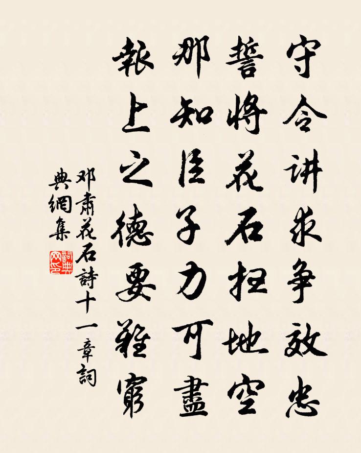 詩詞名句歷史字典書法欣賞書法字典國語詞典說文解字康熙字典古漢語字典標 題 作 者 詩 句 花石詩十一章作者:鄧肅 朝代:宋代花石詩十一章原文守令講求爭效忠,誓將花石掃地空。那知臣子力可盡,報上之德要難窮。詩詞問答問:花石詩十一章的作者是誰?答:鄧肅問:花石詩十一章寫於哪個朝代?答:宋代鄧肅花石詩十一章書法欣賞花石詩十一章書法作品詩詞推薦濟顛書記贊釋普岩〔宋代〕毀不得,贊不得,天台出得個般僧,一似青天轟霹靂。走京城,無處覓。業識忙忙,風流則劇。末後筋斗背翻,煅寄別向運判德獻移閩憲楊萬里〔宋代〕薄枝工奚取,知音一已多。從公日幾許,去我意如何。夢裡閩山月,吟邊楚水波。門闌萬珠履,更試歲寒柯。送蕭鍊師步虛詞十首,卷後以二絕繼之白居易〔唐代〕欲上瀛州臨別時,贈君十首步虛詞。天仙若愛應相問,可道江州司馬詩。花紙瑤緘松墨字,把將天上共誰開。試呈卜運算元(嘲二十八兄)陳著〔宋代〕風急雁聲高,露冷蛩吟切。枕剩衾寒不耐煩,長是傷離別。望得眼兒穿,巴得心頭熱。且喜重陽節又來, * 花先賢者之孝二百四十首公明宣林同〔宋代〕子於親在日,叱吒不聞聲。既曰見而說,應無學未能。長思仙侯善淵〔元代〕既為人。勿因循。百歲光陽有幾能。虛勞染世塵。好修真。養元神。兩耀交光碾玉輪。 * 一點純。偈頌十二首釋道璨〔宋代〕擾擾匆匆,晨雞暮鍾。喚冬作夏,喚夏作冬。一線短長誰管得,雪霜盡處是春風。點絳唇(水飯)曹組〔宋代〕霜落吳江,萬畦香稻來場圃。夜村舂黍。草屋寒燈雨。玉粒長腰,瀋水溫溫注。相留住。共抄雲子。更聽歌聲度。次韻別友方岳〔宋代〕硯香不肯與山留,雨浥寒花斷送秋。後夜酒醒詩更好,淡煙荒草並漁舟。水調歌頭(石知院生辰)葛長庚〔宋代〕兩鬢青絲髮,雙眼黑方瞳。人皆道是,昭慶一個老仙翁。暫別蓬萊弱水,自把星冠月帔,玉佩舞薰風。醉入桃源路寄象田斗山和尚釋雲岫〔宋代〕長翁留得靈苗別,不似禾喚作禾。臘雪喜呈三度白,豐年讖在象田多。溪上露坐陸游〔宋代〕水際風生爽拂裾,比鄰自集不勞呼。昏鴉杳杳飛初定,遠樹離離望欲無。新竹出林時解籜,小荷翻露已成珠。橋東清明郊外鄭獬〔宋代〕桃葉青青杏子肥,清明雨後舊花稀。草翻蝴蝶日將晚,門掩鞦韆人未歸。春艷濃堪燒美酒,湖光綠好染羅衣。柳條湯嶺溫泉柳德驥〔宋代〕化工何事起炎涼,偏使山中泉作湯。地氣燭燭燒石乳,水香鬱郁噴硫磺。暄波常涌無冬夏,勢溜長澌歷雪霜。聞道花舞史浩〔宋代〕是非場,名利海,得喪炎涼徒自苦。至樂陶陶,唯有醉鄉,誰向此間知趣。花下一杯一杯,且莫把、光陰虛度。八哭鄭君瑞長官二首劉克莊〔宋代〕史著陶潛卒,何妨爵秩卑。竟無乞米帖,止有採薇詩。舊友誰為誄,新阡尚欠碑。中年哭同志,孤立可勝悲。再次贈張學錄韻十詩陳造〔宋代〕閱世有順逆,飛埃噎空虛。曠懷略外物,曲士乃拘墟。處士妻十首劉克莊〔宋代〕嫁與張京兆,新眉掃黛濃。不如伯鸞婦,長伴藁砧舂。次韻答王敬助 其一王冕〔元代〕小隱水南村,喧譁不到門。無言及名利,適意在田園。春雨桑麻長,秋風果蔬繁。生涯有如此,何用覓桃源?句王鎬〔宋代〕催租更擾潘邠老,付麥誰憐石蔓卿。名句推薦順風而呼,聲非加疾也,而聞者彰。荀子《勸學》 厭見千門萬戶,經過北里南鄰。王維《田園樂七首·其一》 明日近長安,客心愁未闌。納蘭性德《菩薩蠻·白日驚飈冬已半》 知君仙骨無寒暑。蘇軾《木蘭花令·次馬中玉韻》 落梅庭榭香,芳草池塘綠。晏幾道《生查子·落梅庭榭香》 對酒捲簾邀明月,風露透窗紗。蘇軾《少年游·潤州作》 自奉必須儉約,宴客切勿流連。朱柏廬《朱子家訓·全文》 風也蕭蕭,雨也蕭蕭,瘦盡燈花又一宵。納蘭性德《採桑子·誰翻樂府淒涼曲》 秋來愁更深,黛拂雙蛾淺楊無咎《生查子·秋來愁更深》 小溪清水平如鏡,一葉飛來浪細生。徐璣《秋行》