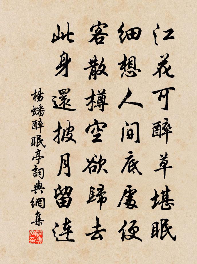 詩詞名句歷史字典書法欣賞書法字典國語詞典說文解字康熙字典古漢語字典標 題 作 者 詩 句 醉眠亭作者:楊蟠 朝代:宋代醉眠亭原文江花可醉草堪眠,細想人間底處便。客散樽空欲歸去,此身還披月留連。詩詞問答問:醉眠亭的作者是誰?答:楊蟠問:醉眠亭寫於哪個朝代?答:宋代楊蟠醉眠亭書法欣賞醉眠亭書法作品詩詞推薦次韻梅山送牡丹二首陳著〔宋代〕姚根魏撥兩京貴,蜀本黟枝南度春。今日東風為誰好,花香不到獨醒人。清江引·棄微名去來心快哉貫雲石〔元代〕棄微名去來心快哉,一笑白雲外。知音三五人,痛飲何妨礙?醉袍袖舞嫌天地窄。 競功名有如車下坡,驚險誰贈人蘇軾〔宋代〕別後休論信息疏,仙凡自古亦殊途。蓬山路遠人難到,霜柏威高道轉孤。舊賞未應亡楚國,新詩聞已滿皇都。誰憐生查子蔡伸〔宋代〕畫堂初見伊,明月當滿窗。今夜月如眉,話別河橋畔。重見約中秋,莫負于飛願。免使月圓時,兩處空腸斷。新亭張栻〔宋代〕風景自今古,斯亭今是非。絕憐江水去,還有故山圍。得失同千慮,成虧共一機。所思惟謝傅,不但勝淮淝。養雞抱犢摩詰語也戲廣其說姜特立〔宋代〕雲里養雞非是達,山頭抱犢未為真。何如老奉閒香火,醉臥林間了此身。柳絮姜特立〔宋代〕隨風弄日碎春雲,撲戶穿帷惱 * 。底事飄揚少拘束,愛將豪縱去酬春。相國寺啟向天節道場行香院觀戲者王安石〔宋代〕侏優戲場中,一貴復一賤。心知本自同,所以無欣怨。送戴書記李曾伯〔宋代〕遠雙夷塗邁牧之,三霜道路飽驅馳。和風俯趁春迎仗,落月回思夜入帷。自愧薦衡無好表,不妨道適有新詩。歲艱陳情上鄭主司顧非熊〔唐代〕登第久無緣,歸情思渺然。藝慚公道日,身賤太平年。未識笙歌樂,虛逢歲月遷。羈懷吟獨苦,愁眼愧花妍。求達題彭城館畫屏王炎〔宋代〕玉質青青竹弟,冰姿皎皎梅兄。上有大夫長鬣,歲寒誰更同盟。南歌子李太古〔宋代〕月下秦淮海,花前晏小山。二仙仙去幾時還。留得月魂花魄、在人間。河漢流旌節,天風裊珮環。滿空香霧濕雲鬟宿營羅溪山趙汝回〔宋代〕鷲嶺東遊霽景微,碧桃花外一鶯飛。樵夫不斫垂潭樹,知有僧人掛搭衣。臨江仙(呈湘川使君丁郎中仲京)姚述堯〔宋代〕佳節喜逢長久日,魏文帝《與鍾繇書》曰:“九月九為陽數,而日月並應。俗嘉其名,以為宜於長久,故以享宴高過梅塢史彌寧〔宋代〕此老胸襟玉雪清,逃禪畫裡著茅亭。個般雅淡須吾輩,俗子何曾有半星。送日本爾侍者釋紹曇〔宋代〕徑山無法與人傳,幾度親遭劈面拳。今日大唐回首去,鼻頭元在口皮邊。送蔡希曾都尉還隴右,因寄高三十五書記杜甫〔唐代〕蔡子勇成癖,彎弓西射胡。健兒寧斗死,壯士恥為儒。官是先鋒得,材緣挑戰須。身輕一鳥過,槍急萬人呼。雲幕奉和虢州劉給事使君三堂新題二十一詠方橋韓愈〔唐代〕非閣復非船,可居兼可過。君欲問方橋,方橋如此作。贈崔公張說〔唐代〕我聞西漢日,四老南山幽。長歌紫芝秀,高臥白雲浮。朝野光塵絕,榛蕪年貌秋。一朝驅駟馬,連轡入龍樓。昔遁送張芝卿陳師道〔宋代〕相逢已偶爾,告別更蒼然。離合驚時換,行藏乃世緣。君無學乾祿,我亦賦歸田。泗水秋山外,長安夕照邊。名句推薦人語西風,瘦馬嘶殘月。王國維《蝶戀花·滿地霜華濃似雪》 對聖賢言語,必要我平時照樣行去,才算讀書。王永彬《圍爐夜話·第二則》 不是暗塵明月,那時元夜。蔣捷《女冠子·元夕》 深秋絕塞誰相憶,木葉蕭蕭。納蘭性德《採桑子·九日》 善附者異旨如肝膽,拙會者同音如胡越。劉勰《文心雕龍·附會》 暗昧處見光明世界,此心即白日青天。王永彬《圍爐夜話·第七八則》 千尋鐵鎖沉江底,一片降幡出石頭。劉禹錫《西塞山懷古》 初報邊烽照石頭,旋聞胡馬集瓜州。陸游《送七兄赴揚州帥幕》 但使情親千里近,須信。無情對面是山河。辛棄疾《定風波·席上送范廓之游建康》 北窗高臥,莫教啼鳥驚著。辛棄疾《念奴嬌·賦雨岩》