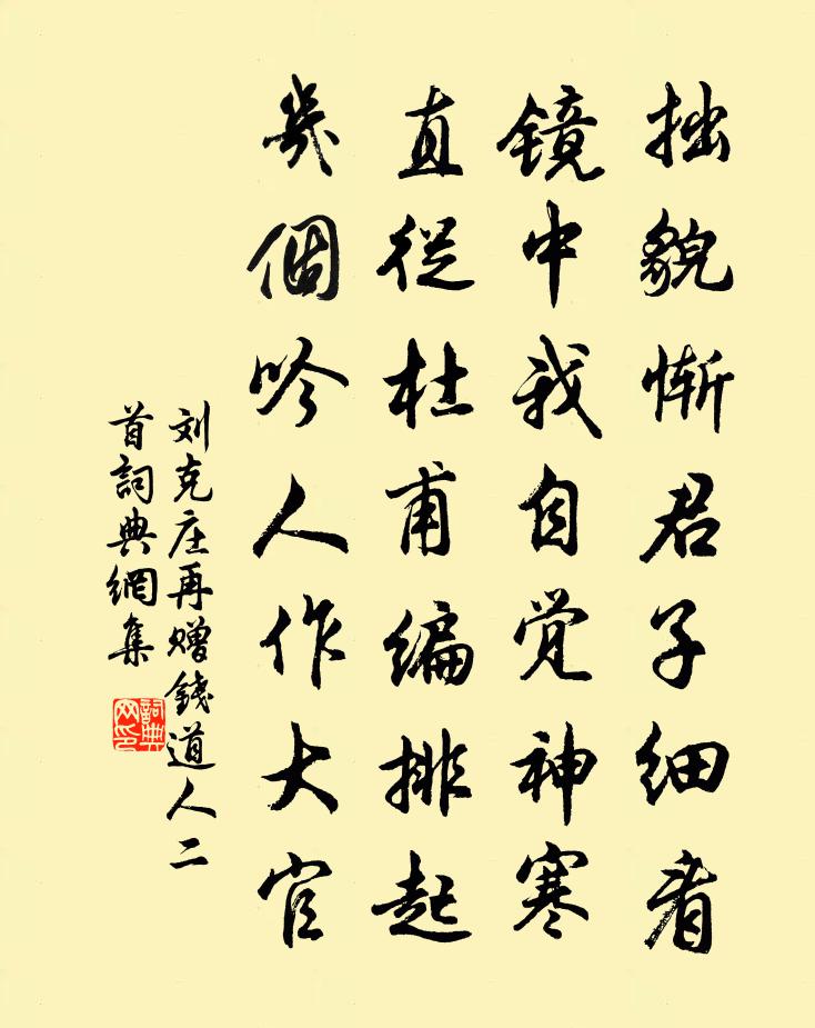 拙貌慚君子細看,鏡中我自覺神寒。直從杜甫編排起,幾個吟人作大官。