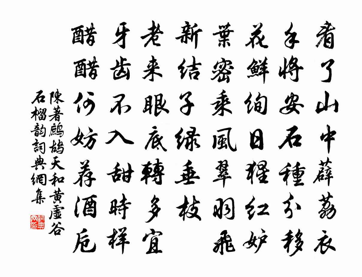 詩詞名句歷史字典書法欣賞書法字典國語詞典說文解字康熙字典古漢語字典標 題 作 者 詩 句 鷓鴣天(和黃虛谷石榴韻)作者:陳著 朝代:宋代鷓鴣天(和黃虛谷石榴韻)原文看了山中薜荔衣。手將安石種分移。花鮮絢日猩紅妒,葉密乘風翠羽飛。新結子,綠垂枝。老來眼底轉多宜。牙齒不入甜時樣,醋醋何妨薦酒卮。詩詞問答問:鷓鴣天(和黃虛谷石榴韻)的作者是誰?答:陳著問:鷓鴣天(和黃虛谷石榴韻)寫於哪個朝代?答:宋代問:鷓鴣天(和黃虛谷石榴韻)是什麼體裁?答:詞陳著鷓鴣天(和黃虛谷石榴韻)書法欣賞鷓鴣天(和黃虛谷石榴韻)書法作品詩詞推薦愚溪詩序柳宗元〔唐代〕灌水之陽有溪焉,東流入於瀟水。或曰:冉氏嘗居也,故姓是溪為冉溪。或曰:可以染也,名之以其能,故謂之染過水南甚早趙蕃〔宋代〕夜雨曉僅止,前山雲未收。陂田飛宿鷺,社木喚晴鳩。雲里浮圖級,灘邊賈客舟。故知山可住,不覺利能謀。秋懷三十六首邵雍〔宋代〕中秋光景好,中州煙水奇。天重初寒候,人便半醉時。榻緣明月掃,襟待好風吹。一點胸中事,人間都不知。外廚遺火示公佐王安石〔宋代〕刀匕初無欲凊人,如何龜鬼尚嫌嗔。翛翛短褐方煬火,冉冉青煙已被辰。邂逅焚巢連鳥雀,倉黃濡幕愧比鄰。王陽蘇州十詠其三洞庭山范仲淹〔宋代〕吳山無此秀,乘暇一游之。萬頃湖光里,千家橘熟時。平看月上早,遠覺鳥歸遲。近古誰真賞,白雲應得知。偶成葉茵〔宋代〕春陰晴復陰,因物悟浮生。杜宇鄉心重,楊花世事輕。知非蘧伯玉,覺是晉淵明。此意誰人會,騎牛訪偶耕。和陸學士夏日見寄釋重顯〔宋代〕良牧歸詩匠,雅風消鬱蒸。官清難滯爵,吏散遠同僧。棠對非煙合,仙槎碧浪乘。因思窮萬化,千古更無能。郊廟歌辭。五郊樂章。送神佚名〔唐代〕炎精式降,蒼生攸仰。羞列豆籩,酒陳犧象。昭祀有應,冥期不爽。送樂張音,惟靈之往。偶成寄致宏張嵲〔宋代〕為問邊城客,經春復若何。孤生寬意少,遊子苦顏多。青壁題詩處,澄潭載酒過。塞垣風色惡,應憶舊雲蘿。南歌子史達祖〔宋代〕采綠隨雙槳,看山藉一筇。關南桃樹幾番紅。昨夜詩情頻在、雨聲中。花徑無雲隔,苔垣只夢通。舊歡一餉可過從贈數學吳桂子方回〔宋代〕先天有數妙蓍龜,詫鬼夸神滿卷詩。獨一許翁可吾意,預占晴色賞酴醾。頌古三十二首釋明辯〔宋代〕左轉右轉,金剛寶劍。全藏半藏,由基發箭。紅心心裡中紅心,驚得須彌頭倒旋。山間大風雨晝夜不止聞松聲撼床戲成拙語謾錄鄭清之〔宋代〕顛風橫雨窮山秋,樵青馳檐車停輈。松聲撼空吼萬牛,轟豗勢欲傾不周。晨雞扼吭喑且愁,百鳥何敢相喧啾。恍疑和祖無擇〔宋代〕萬樹紅芳落漸稀,浮榮能得幾多時。孤根未識陽和力,春去春來兩不知。紹興祀大火十二首佚名〔宋代〕神既貺施,嗜我飲食。申以累獻,以承靈億。神方常羊,鹹畢我觴。於再於三,於誠之將。酬揚州白塔寺永上人顧況〔唐代〕塔上是何緣,香燈續細煙。松枝當麈尾,柳絮替蠶綿。浮草經行遍,空花義趣圓。我來雖為法,暫借一床眠。阮郎歸·舊香殘粉似當初晏幾道〔宋代〕舊香殘粉似當初。人情恨不如。一春猶有數行書。秋來書更疏。衾鳳冷,枕鴛孤。愁腸待酒舒。夢魂縱有也成虛。秋懷李若水〔宋代〕破扇委高壁,病骨蘇微涼。羅階竹千挺,秀質頎而長。呼奴約疏箔,窗幾延翠光。欠伸睡稍足,夕影上東牆。偈頌一百零四首釋紹曇〔宋代〕玉版阿師,錦繃稚子。潁脫叢林,頭角呈露。參透尚未煎石磉盤,飽經鰲煉翻身去。塞斷咽喉,更須吞吐。毗耶未寄題興州晁太守新開古東池蘇軾〔宋代〕百畝新池傍郭斜,居人行樂路人夸。自言官長如靈運,能使江山似永嘉。縱飲坐中遺白帢,幽尋盡處見桃花。不堪名句推薦日邊訊息空沈沈。畫眉樓上愁登臨。鄭文妻《憶秦娥·花深深》 綺席象床寒玉枕,美人何處醉黃花。汪元量《望江南·幽州九日》 燕簾鶯戶,雲窗霧閣,酒醒啼鴉。張炎《朝中措·清明時節》 譬之若水火然,善用之則為福,不能用之則為禍呂不韋《呂氏春秋·紀·孟秋紀》 盈盈一點芳心,占多少春光,問卿知否?紅妝莫斗顧太清《玉燭新·白海棠》 恨入空帷鸞影獨,淚凝雙臉渚蓮光,薄情年少悔思量。顧敻《浣溪沙·荷芰風輕簾幕香》 幼敏悟過人,讀書輒成誦。歐陽修《畫地學書》 以小人尚民而威,以非所取於民而巧,是傷國之大災也。荀子《荀子·王霸》 應酬都不暇,一嶺是梅花。張道洽《嶺梅》 聞道黃龍戍,頻年不解兵。沈佺期《雜詩三首·其三》