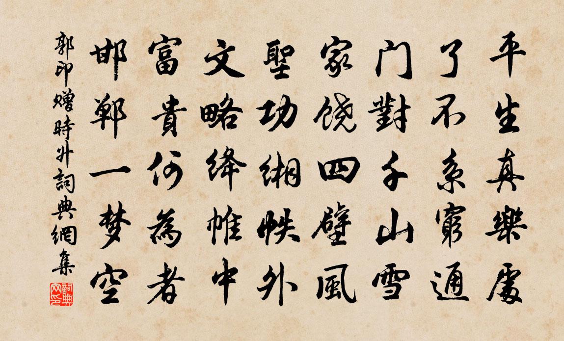 詩詞名句歷史字典書法欣賞書法字典國語詞典說文解字康熙字典古漢語字典標 題 作 者 詩 句 贈時升作者:郭印 朝代:宋代贈時升原文平生真樂處,了不系窮通。門對千山雪,家饒四壁風。聖功緗帙外,文略絳帷中。富貴何為者,邯鄲一夢空。詩詞問答問:贈時升的作者是誰?答:郭印問:贈時升寫於哪個朝代?答:宋代郭印贈時升書法欣賞贈時升書法作品詩詞推薦言懷仇遠〔宋代〕白嶺溪上野田平,黃隴山前竹樹清。已許數椽容小住,余英愛我愛余英。白鶴關趙希邁〔宋代〕危亭石作關,假道一躋攀。白鶴何年去,青松盡日閒。坐時聞遠水,望處小他山。衲子云衣厚,寒猶宿此間。徐制參輓歌王柏〔宋代〕北風高兮歲律將殘,望東隴兮目斷旌丹。有美君子兮擥眾芳而自飾,直哉惟清兮不亢不激。郁十五年之朝望兮,僅寄內兄和州崔員外十二韻杜牧〔唐代〕歷陽崔太守,何日不含情。恩義同鍾李,塤篪實弟兄。光塵能混合,擘畫最分明。台閣仁賢譽,閨門孝友聲。西方送江水曹還遠館謝朓〔南北朝〕高館臨荒途,清川帶長陌。上有流思人,懷舊望歸客。塘邊草雜紅,樹際花猶白。日暮有重城,何由盡離席!廿一兄以手和四清香見餉用心清聞妙香為韻成曾幾〔宋代〕不屬蔚宗傳,又非知見薰。從來香一瓣,只許自聞聞。上鄧憲生辰楊簡〔宋代〕維公誕彌,端月維時,夢維熊羆。何以壽之,南山維基,大椿植之。毋祝毋祈,公自有之。某也作頌,於以敬之。洞仙歌盧祖皋〔宋代〕月痕霜暈,雪染冰裁翦。車馬塵中甚曾見。自揚州吟罷,踏遍西湖,堪愛處,偏是情高韻遠。冷香驚夢破,姑射人興化寺釋紹曇〔宋代〕門照雙池鏡樣明,東西廓喝寂無聲。紫羅帳里機玄密,雖有珍珠撒未成。五相邵雍〔宋代〕北巷通南陌,門連五相家。水分池對岸,牆隔樹交花。和劉後村梅花百詠方蒙仲〔宋代〕含章遺蹟杳難詳,漢苑唐都更可傷。說與詩人莫嘲詠,梅花眼見幾興亡。文孝廟曾極〔宋代〕德隱前星民已和,山隈水曲廟何多。皇孫不得承天統,猶使而翁恨蠟鵝。酬微之梅暑新句王安石〔宋代〕江梅落盡雨昏昏,去馬來牛漫不分。當此沈陰無白日,豈知炎旱有彤雲。琴弦欲緩何妨促,畫蠹微生故可熏。回首頌證道歌證道歌釋印肅〔宋代〕祗知犯重障菩提,彼者堪修我不宜。龍女化身來警世,畜生驢馬我同伊。寄臨海姚中丞杜荀鶴〔唐代〕夏辭旌旆已秋深,永夕思量淚滿襟。風月易斑搜句鬢,星霜難改感恩心。尋花洞裡連春醉,望海樓中徹曉吟。雖有朝中措(和吳子似)韓淲〔宋代〕春濃人靜倦遊嬉。煙雨戰棠梨。翠徑亂紅無數,頻啼枝上黃鸝。小園流水濺濺處,綠遍謝家池。怨月恨花滋味,淚游北岩張嵲〔宋代〕尋山輕近境,偶向此中來。精舍層岩擁,穹林石路開。排雲今歲竹,封徑幾年苔。僧老無餘事,端居傲劫灰。金剛隨機無盡頌離相寂滅分第十四釋印肅〔宋代〕忻悲淚濕巾,憶昔枉精神。今朝聞道矣,夕死也甘心。夏日過萬蓬庵成廷珪〔元代〕愛汝東庵暑氣薄,解衣盤礴坐莓苔。一林綠竹盡可數,五月白蓮猶未開。捉塵談禪知獨往,買魚沽酒待重來。滄江盧氏池上遇雨贈同游者溫庭筠〔唐代〕簟翻涼氣集,溪上潤殘棋。萍皺風來後,荷喧雨到時。寂寥閒望久,飄灑獨歸遲。無限松江恨,煩君解釣絲。名句推薦簾外雨潺潺,春意闌珊。李煜《浪淘沙令·簾外雨潺潺》 王母歡闌瓊宴罷,仙人淚滿金盤側。文天祥《滿江紅·代王夫人作》 信者人之乾也,義者行之節也。劉向《列女傳·貞順傳·陳寡孝婦》 正是天山雪下時,送君走馬歸京師。岑參《天山雪歌送蕭治歸京》 相思似海深,舊事如天遠。樂婉《卜運算元·答施》 謾道愁須殢酒,酒未醒、愁已先回秦觀《滿庭芳·碧水驚秋》 嘆息聊自思,此生豈我情。王績《石竹詠》 良藥苦口利於病,忠言逆耳利於行。宋濂、王褘《元史·列傳·卷五十五》 吳宮花草埋幽徑,晉代衣冠成古丘。李白《登金陵鳳凰台》 青楓颯颯雨淒淒,秋色遙看入楚迷。李攀龍《送明卿之江西》