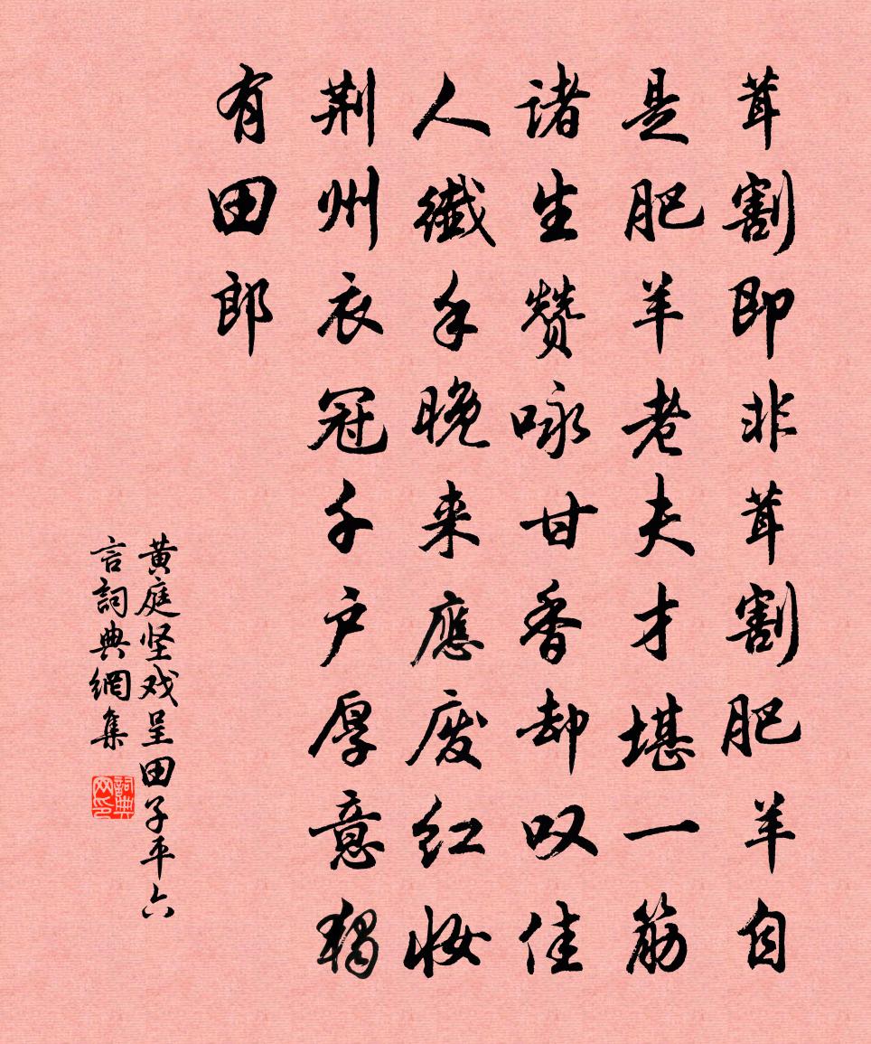 黃庭堅戲呈田子平六言書法欣賞