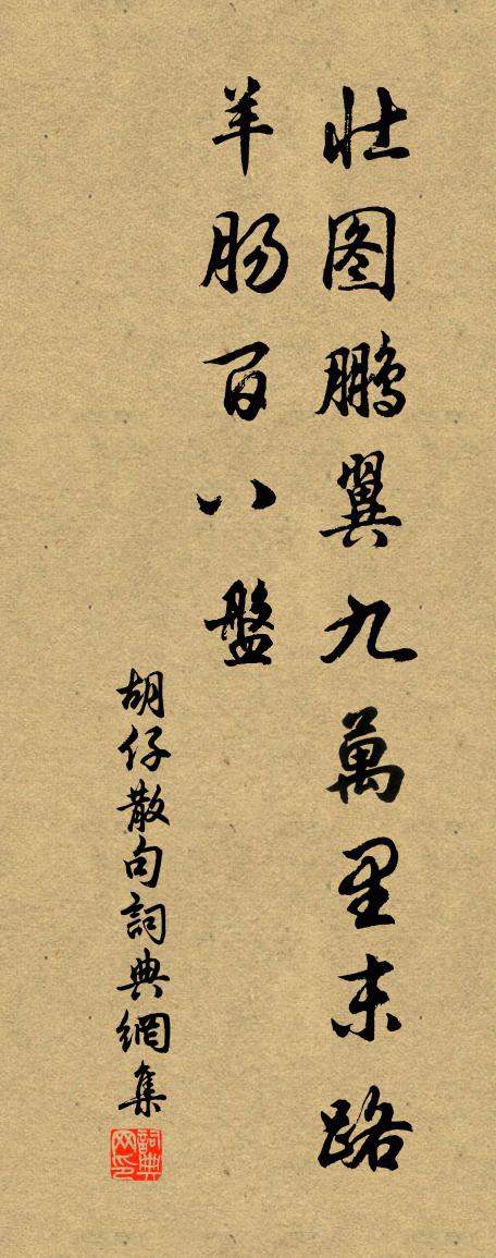 詩詞名句歷史字典書法欣賞書法字典國語詞典說文解字康熙字典古漢語字典標 題 作 者 詩 句 句作者:胡仔 朝代:宋代句原文壯圖鵬翼九萬里,末路羊腸百八盤。詩詞問答問:句的作者是誰?答:胡仔問:句寫於哪個朝代?答:宋代胡仔句書法欣賞句書法作品詩詞推薦題李洗馬歸歟堂宋庠〔宋代〕君有誅茅地,重歸一畝宮。身同岩桂老,心似草堂空。昔嘆魚隨餌,今歡鶴出籠。吾廬嵩潁畔,亦欲狎樵瓮。和陳穎仲題劉鞠祠李彌遜〔宋代〕山繞平湖綠四邊,兩翁遺澤到今傳。苹風引釣魚隨艇,穀雨催耕水拍田。敗壁丹青悲落日,荒庭紳笏想流年。桐鄉次韻文潛館中作晁補之〔宋代〕蓬山前臨九軌路,三日街晴案吹土。直廬鑿牖面宮垣,青壁嶄嶄看垂雨。殿閣風斜碧瓦寒,翅濕蒼鳶不能乳。卻思用一代不數人百年能幾見為韻詩賦十章呈陳君趙蕃〔宋代〕雲物瞻閩嶠,風聲望海濱。如何一年內,頓得見斯人。趙民謠佚名〔先秦〕趙為號。秦為笑。以為不信。視地之生毛。八聲甘州(中秋小集無月)李曾伯〔宋代〕問孀娥、僝僽厭看人,唯復厭人看。正涼宵準擬,招延素魄,慰藉蒼顏。廉纖梧桐細雨,吹徹玉簫寒。仿佛山河影句張宗尹〔宋代〕大書方字隄防老,剩賣田園準務閒。行香子晁端禮〔宋代〕別恨綿綿。屈指三年。再相逢、情分依然。君初霜鬢,我已華顛。況其間有,多少恨,不堪言。小庭幽檻,菊蕊闌感事寄子明中丞宋祁〔宋代〕久玷三雲從,仍叨千石榮。羸軀付多病,怯計會無成。出守非嚴助,何年召郤萌。風摧向陽藿,霜變度江橙。畫閣琵琶張表臣〔宋代〕白鴿潛來入紫槽,朱鸞飛去唳青霄。江邊塞上情何限,瀛府霓裳曲再調。漫道靈妃鼓瑤瑟,虛傳仙子弄雲璈。小憐和顏長官百詠山居朱繼芳〔宋代〕半屋雲霞與鹿分,兩株古木正當門。野花自落東流水,坐對青山酒一樽。好女兒晏幾道〔宋代〕酌酒殷勤。盡更留春。忍無情、便賦餘花落,待花前細把、一春心事,問個人人。莫似花開還謝,願芳意、且長新理宗明堂前朝獻景靈宮二首真宗〔宋代〕慶雲克克,鳴璆琅琅。澹基容興,申薦貳觴。奉承若寡,神其樂康。錫以多祉,源深流長。雨中花/夜行船毛滂〔宋代〕寒浸東傾不定。更奈櫓聲催緊。堤樹朧明孤月上,暗淡移船影。舊事十年愁未醒。漸老可禁離恨。今夜誰知風露里自東都還濠州,奉酬王八諫議見贈獨孤及〔唐代〕關西仕時俱稚容,彪彪之鬢始相逢。天地變化縣城改,獨有故人交態在。不言會合跡未並,猶以歲寒心相待。洛陽歲寒堂三題其一歲寒堂范仲淹〔宋代〕我先本唐相,奕世天衢行。子孫四方誌,有家在江城。雙松儼可愛,高堂因以名。雅知堂上居,宛得山中情。目有滿宮花·花正芳張泌〔唐代〕花正芳,樓似綺,寂寞上陽宮裡。鈿籠金鎖睡鴛鴦,簾冷露華珠翠。嬌艷輕盈香雪膩,細雨黃鶯雙起。東風惆悵欲新秋雜興朱繼芳〔宋代〕晚煙起處是孤村,漠漠郊原白道分。菰葉池塘疎雨過,豆花籬落夕陽曛。遠山寬闊圍天在,鄰杵丁東帶雁聞。獨自園蔬十詠苦益劉子翬〔宋代〕雖無適口味,暖益功稀比。菜苦不登盤,言中多逆耳。讀劉與權壯士歌吳芾〔宋代〕滿眼煙塵未息戈,御戎無策奈愁何。一尊濁酒空庭晚,獨自歌君壯士歌。名句推薦九衢雪小,千門月淡,元宵燈近。晁端禮《水龍吟·詠月》 明月何皎皎,照我羅床幃。佚名《明月何皎皎》 路出寒雲外,人歸暮雪時。盧綸《李端公 / 送李端》 玉帛朝回望帝鄉,烏孫歸去不稱王常建《塞下曲四首·其一》 伏雨朝寒愁不勝,那能還傍杏花行。納蘭性德《浣溪沙·伏雨朝寒愁不勝》 浮雲蔽白日,遊子不顧返。佚名《行行重行行》 魂來楓葉青,魂返關塞蒙杜甫《夢李白二首·其一》 雪似梅花,梅花似雪。呂本中《踏莎行·雪似梅花》 半生已分孤眠過,山枕檀痕涴。納蘭性德《虞美人·曲闌深處重相見》 況故人新擁,漢壇旌節。辛棄疾《滿江紅·漢水東流》