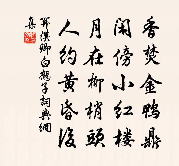 香焚金鴨鼎,閒傍小紅樓。月在柳梢頭,人約黃昏後。