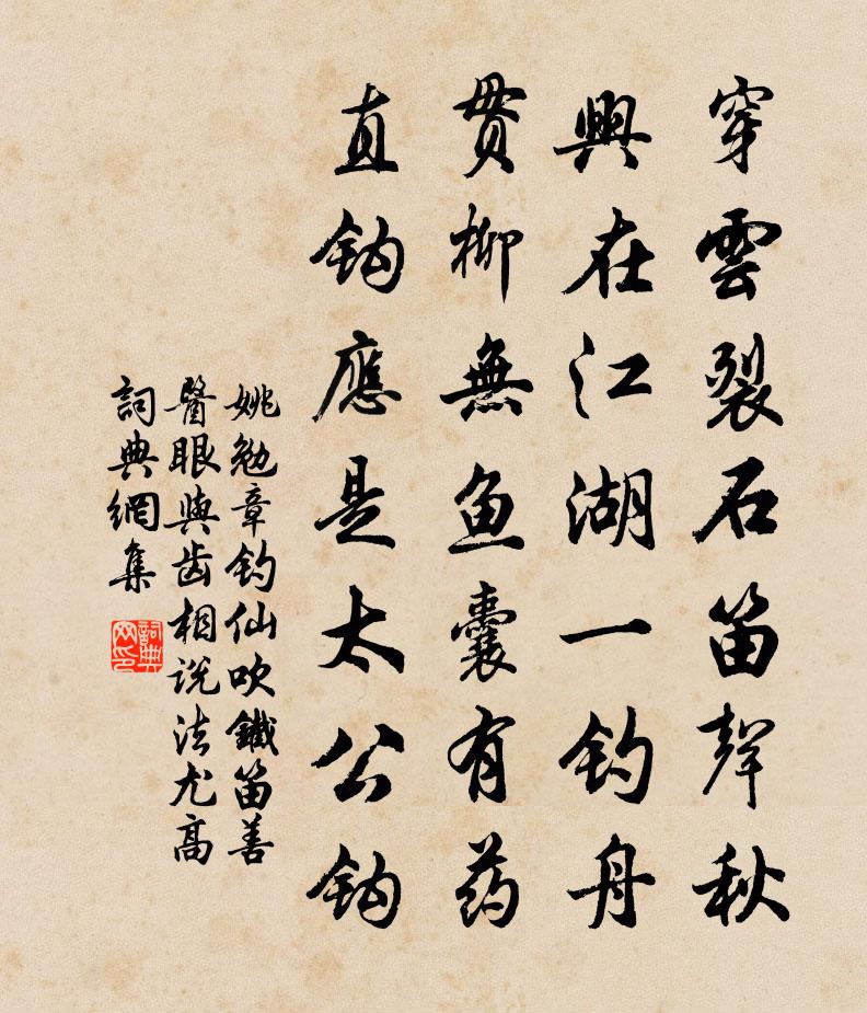 詩詞名句歷史字典書法欣賞書法字典國語詞典說文解字康熙字典古漢語字典標 題 作 者 詩 句 章釣仙吹鐵笛善醫眼與齒相說法尤高作者:姚勉 朝代:宋代原文穿雲裂石笛聲秋,興在江湖一釣舟。貫柳無魚囊有藥,直鉤應是太公鉤。詩詞問答問:《章釣仙吹鐵笛善醫眼與齒相說法尤高》的作者是誰?答:姚勉問:該詩寫於哪個朝代?答:宋代書法欣賞章釣仙吹鐵笛善醫眼與齒相說法尤高書法作品詩詞推薦別費檢正二首李流謙〔宋代〕香案前頭自乞歸,歸心選逐雁西飛。豈關松菊吾身重,偶托蓴鱸此意微。行樂不妨千騎擁,照人何必萬釘圍。兒曹鷓鴣天鄭少微〔宋代〕誰折南枝傍小叢。佳人豐色與梅同。有花無葉真瀟灑,不問胭脂借淡紅。應未許,嫁春風。天教雪月伴玲瓏。池塘謁金門趙淇〔宋代〕吟望直。春在闌乾咫尺。山插玉壺花倒立。雪明天混碧。曉露絲絲瓊滴。虛揭一簾雲濕。猶有殘梅黃半壁。香隨流史文惠王輓詞樓鑰〔宋代〕八行源充遠,三師慶系遙。樞庭先附鳳,相國薦簪貂。感會逢千載,榮華冠四朝。甘盤稱舊學,綺季簉儲寮。歷數南安觀社會陳宓〔宋代〕山蔽晴空望自遙,樹開小道紫騮驕。沿溪飛蓋傳清蔭,四野歡聲擁海潮。霜葉飛方千里〔宋代〕塞雲垂地,堤煙重,燕鴻初度江表。露荷風柳向人疏,台榭還清悄。恨脈脈、離情怨曉。相思魂夢銀屏小。奈倦客晉王郎孫元晏〔唐代〕太尉門庭亦甚高,王郎名重禮相饒。自家妻父猶如此,誰更逢君得折腰。贈太素庵軻律師陳師道〔宋代〕林間細路暗通門,火合深藏雪裡春。自笑世間千計錯,羨他湖上十年人。再用前韻袁甫〔宋代〕修匿之餘德復初,更須辨白舍並趨。善哉三語當年問,直到於今相從雩。奈我晁說之〔宋代〕柰我所安何,無煩問所過。潮聲雲外散,花色醉中多。京國昨宵夢,邊城幾日歌。功名悞男子,必使愧雲蘿。木蘭花慢 揚州壽紀子周王旭〔元代〕皇天憂世難,生俊*,佐時來。有忠孝誠心,文章大手,經濟雄才。他年漢庭三策,要青雲高步出塵埃。兒女徒驚舟中雜紀 其六王冕〔元代〕秋茂喜禾壯,官河帶野橋。水光欺日白,寒氣得風饒。覓火鄰船並,沽醪市店遙。傳聞徵稅急,不忍見漁樵。安國置酒敬簡堂分韻得柳暗六春字張栻〔宋代〕堂下列絲竹,堂上娛佳賓。相看夜未艾,樂此笑語真。風流今屬公,我輩但逡巡。文章千古意,翰墨四時春。山雲曾協〔宋代〕自聳乾霄勢,應憐望歲心。試將膚寸澤,來作濟時霖。思歸陸游〔宋代〕平生無宦情,方外久浪跡。往來梁益間,一笑頗自得。花穠錦城酒,月白瞿唐笛,咿啞下江櫓,跌宕登山屐。巴東奉和元日應制許敬宗〔唐代〕天正開初節,日觀上重輪。百靈滋景祚,萬玉慶惟新。待旦敷玄造,韜旒御紫宸。武帳臨光宅,文衛象鉤陳。廣庭積翠峰釋延壽〔宋代〕翠壓群峰地形直,落日猿聲在空碧。天風吹散斷崖雲,古松長露三秋色。送然侄四歸二首張栻〔宋代〕自子來見我,倏焉十六秋。一聞沂上音,此意便綢繆。中間豈不別,會契約轉頭。今茲舍我去,萬里不復留。豈不呈無示和尚釋了朴〔宋代〕赤腳波斯入大唐,一家有事百事忙。而今四海清如鏡,率土普天歸我王。游罨畫溪曾協〔宋代〕罨畫溪頭事已空,桑條都逐運斤風。東君綠遍當時岸,只欠低垂照水紅。名句推薦一年滴盡蓮花漏。碧井酴酥沈凍酒。毛滂《玉樓春·己卯歲元日》 斷送落花三月雨,摧殘楊柳九秋霜。施耐庵《水滸傳·第十六回》 此馬非凡馬,房星本是星。李賀《馬詩二十三首·其四》 一年最好,偏是重陽。吳文英《惜黃花慢·菊》 不惜千金買寶刀,貂裘換酒也堪豪。秋瑾《對酒·不惜千金買寶刀》 新寒中酒敲窗雨,殘香細裊秋情緒。納蘭性德《菩薩蠻·新寒中酒敲窗雨》 寧可濕衣,不可亂步李汝珍《鏡花緣·第二十回》 蜀天常夜雨,江檻已朝晴。杜甫《水檻遣心二首》 客自長安來,還歸長安去。李白《金鄉送韋八之西京》 靖安宅里當窗柳,望驛台前撲地花。白居易《望驛台》