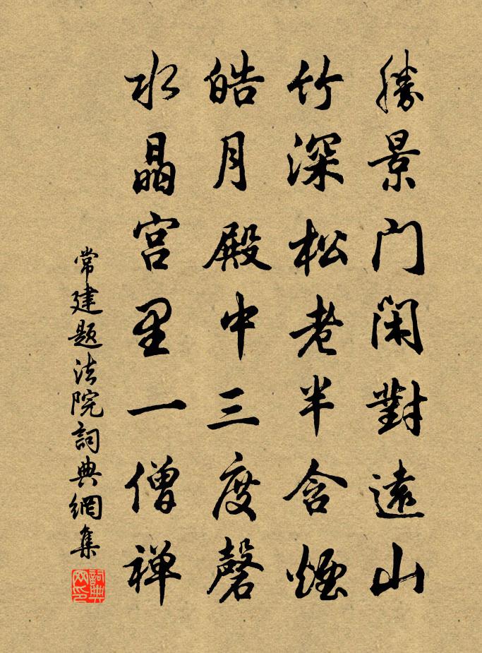 勝景門閒對遠山,竹深松老半含煙。皓月殿中三度磬,水晶宮裡一僧禪。