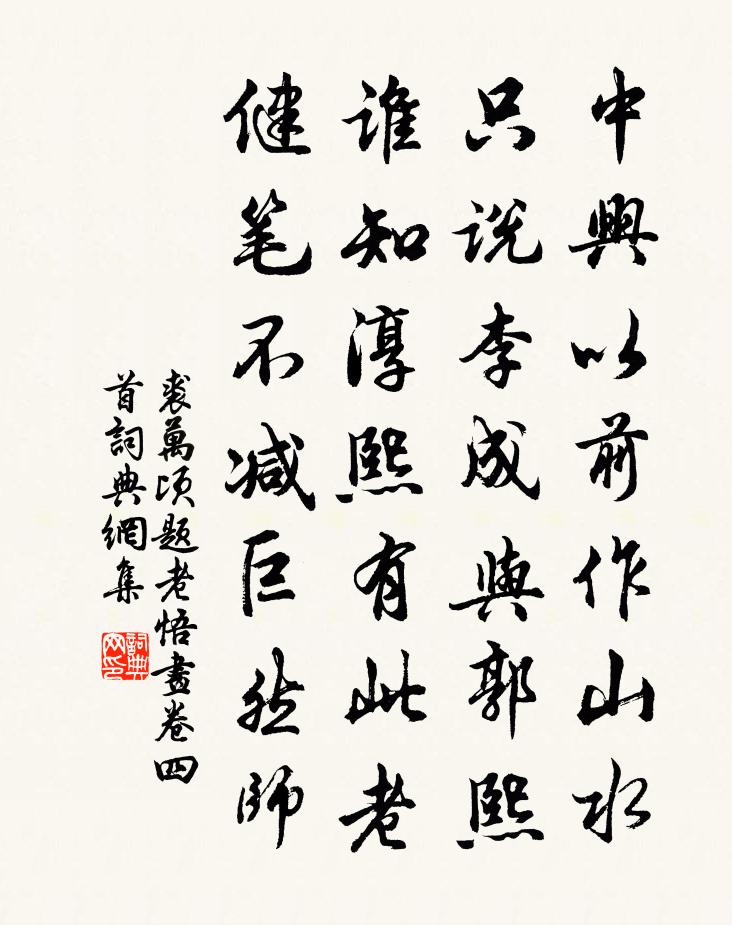 詩詞名句歷史字典書法欣賞書法字典國語詞典說文解字康熙字典古漢語字典標 題 作 者 詩 句 題老悟畫卷四首作者:裘萬頃 朝代:宋代題老悟畫卷四首原文中興以前作山水,只說李成與郭熙。誰知淳熙有此老,健筆不減巨然師。詩詞問答問:題老悟畫卷四首的作者是誰?答:裘萬頃問:題老悟畫卷四首寫於哪個朝代?答:宋代裘萬頃題老悟畫卷四首書法欣賞題老悟畫卷四首書法作品詩詞推薦春鳩元稹〔唐代〕春鳩與百舌,音響詎同年。如何一時語,俱得春風憐。猶知化工意,當春不生蟬。免教爭叫噪,沸渭桃花前。傅道人歌楊維楨〔元代〕祁連山人天骨奇,十五能運朱屠椎。二十報仇許人死, * 不數舞陽兒。鄉里不見容,官府不見治。猛氣奚所託,衛卿叔自青暘寄詩一卷以飲酒果核殽味烹茶齋葛立方〔宋代〕玉軑華芝今省方,西風索索吹繖黃。汴京宮闕秋草長,望風屑涕心淒涼。襲粲用命嗟何嘗,義軍誰是竹園娘。黠羌梁仲蒼輓詞樓鑰〔宋代〕人物如君少,相期上石渠。博文該四部,篤學富三餘。淚盡知無及,交深未覺疏。何時酹墳草,細讀茂陵書。禱雨福溪岩陳造〔宋代〕我訪福溪岩,行行黍稌中。人家打麥罷,鄰里笑語同。迎官問來意,不信有蘊隆。淙激田間泉,詰曲走青虹。引泉禪人並化主寫真求贊釋正覺〔宋代〕疏豁性情,谷虛而不盈;舒散胸膚,冰渙而不凝。恁麽來也,觸處相應。晚菊韓愈〔唐代〕少年飲酒時,踴躍見菊花。今來不復飲,每見恆咨嗟。佇立摘滿手,行行把歸家。此時無與語,棄置奈悲何。醜奴兒/採桑子宋先生〔宋代〕真人本是凡人做,悟者何難。名利如山。隔斷神仙路往還。謝師指教生死限,長在心間。長在心間。十二時中不暫送下博陳員外徐鉉〔唐代〕曠望叢台路,飄颻楚塞人。琴堂無故舊,何計免沾巾。送僧歸越楊億〔宋代〕中林宴坐赤髭繁,水月禪心出世間。說法音同海潮震,隨緣身比岳雲閒。曹溪嫡嗣多參見,碧落仙鄉遍往還。歸去奉使契丹二十八首其二十二學士院端午帖子二蘇轍〔宋代〕新煮青筠稻米香,旋抽獨繭薄羅光。利堆雕俎添崖蜜,爭作輕衫薦壽觴。秋夜陸游〔宋代〕侷促人間每鮮歡,秋來病骨愈酸寒。袷衣尚典雁聲過,斷簡未收雞唱殘。退士鬢毛紛似雪,老臣心事炳如丹。燈前田司空入朝張籍〔唐代〕西來將相位兼雄,不與諸君覲禮同。早變山東知順命,新收濟上立殊功。朝官敘謁趨門外,恩使喧迎滿路中。閶闔偈頌一百四十一首釋師範〔宋代〕夜暗晝明,天平地平。三日一雨,五日一晴。達磨大師不安本分,被人打落當門板齒,廬山歸宗和尚無端拭壞一雙鹿門寺裴說〔唐代〕鹿門山上寺,突兀盡無塵。到此修行者,應非取次人。鳥過驚石磬,日出礙金身。何計生煩惱,虛空是四鄰。奉和御製春台望賀知章〔唐代〕青陽布王道,玄覽陶真性。欣若天下春,高逾域中聖。神皋類觀賞,帝里如懸鏡。繚繞八川浮,岧嶢雙闕映。曉色西湖素公愛余泊黍小詩畫為扇子姜特立〔宋代〕老子詩中那有畫,阿師畫裡自兼詩。我非今世王摩詰,子豈前身李伯詩。煙月正臨青嶂落,灘聲惟許白鷗知。可憐偶得數琉璃瓶置窗幾間因取小魚漾其中乃見其吳芾〔宋代〕方安林下樂樵漁,底事牽來剖竹符。道院固知人少訟,豐年何幸俗多娛。頭隨野鶴穿花徑,靜看游魚戲玉壺。卻愧嵩山十志十首金碧潭盧鴻一〔唐代〕水碧色兮石金光,灩熠熠兮濙湟湟。泉葩映兮煙蔦臨,紅灼灼,翠陰陰。翠相鮮兮金碧潭,霜天洞兮煙景涵。有幽送信南歸雁盪山釋希晝〔宋代〕千峰鄰積水,秋勢遠相依。路在深雲里,人思絕頂歸。長天來月正,危木度猿稀。誰得同無念,寥寥此掩扉。名句推薦終日昏昏醉夢間,忽聞春盡強登山。李涉《題鶴林寺僧舍》 治生乎君子,亂生乎小人。荀子《荀子·王制》 猶有桃花流水上,無辭竹葉醉尊前。劉禹錫《憶江南·春去也》 俯飲一杯酒,仰聆金玉章。韋應物《郡齋雨中與諸文士燕集》 挽弓當挽強,用箭當用長。杜甫《前出塞九首》 報答春光知有處,應須美酒送生涯。杜甫《江畔獨步尋花七絕句》 見善思齊,足以揚名不朽;聞惡能改,庶得免乎大過。吳兢《貞觀政要·卷四·教戒太子諸王》 綠葉青跗映丹萼,與君裴回上金閣。王勃《落花落》 苦雨思白日,浮云何由卷。李白《玉真公主別館苦雨贈衛尉張卿二首》 凡斗者,必自以為是而以人為非也。荀子《荀子·榮辱》