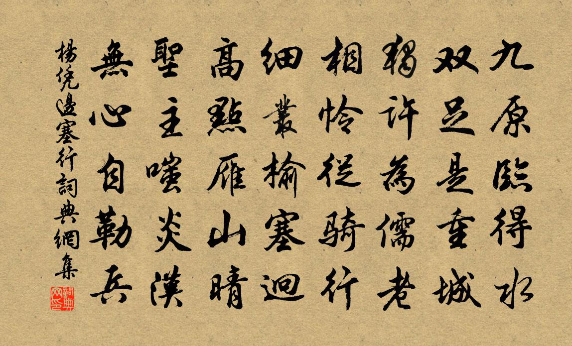 詩詞名句歷史字典書法欣賞書法字典國語詞典說文解字康熙字典古漢語字典標 題 作 者 詩 句 邊塞行作者:楊憑 朝代:唐代邊塞行原文九原臨得水,雙足是重城。獨許為儒老,相憐從騎行。細叢榆塞迥,高點雁山晴。聖主嗤炎漢,無心自勒兵。詩詞問答問:邊塞行的作者是誰?答:楊憑問:邊塞行寫於哪個朝代?答:唐代問:邊塞行是什麼體裁?答:五律楊憑邊塞行書法欣賞邊塞行書法作品注釋全唐詩:卷289_4詩詞推薦蘭陵王 昨日奉候,知玉體已不恙,軒從姚燧〔元代〕之,上雪崖使君雪崖雪。玉壘浮雲變滅。蓬婆外、晴白界天,西嶺窗涵古今絕。秦山置下列。類媵姬姜娣侄。望太恭州報恩長老宣公以四偈見別用韻為謝晁公溯〔宋代〕甑中炊火釜烹鮮,莫道巴兒不解禪。日日扣門來乞火。箇中已有一燈傳。明發祈門悟法寺,溪行險絕六首楊萬里〔宋代〕已是山寒更水寒,酸風苦雨並無端。詩人瘦骨無半把,一任殘春料理看。偈二十七首釋守淨〔宋代〕常州有,福州無,江風作惡浪花粗。不用刻舟徒記劍,片帆已過洞庭湖。鷓鴣天(和孫子紹菊花詞)周紫芝〔宋代〕晴日烘簾暖似春。菊回霜暈淺仍深。誰知此地栽花手,便是當時嗅蕊人。秋渺渺,夜沈沈。一聲清唱裊殘音。嬌痴寄題石湖海棠范成大〔宋代〕手開芳徑越城頭,紅錦屠蘇結綺樓。不把萬枝銀燭照,淡雲微月替人愁。自仙潭治歸舟呈王鷗盟楊冠卿〔宋代〕江村煙雨暗霏微,正是鷗盟得句時。雨後屏山展新綠,更煩摹寫送新詩。水調歌頭(隱靜山觀雨)張孝祥〔宋代〕青嶂度雲氣,幽壑舞迴風。山神助我奇觀,喚起碧宵龍。電掣金蛇千丈,雷震靈鼉萬壘,洶洶欲崩空。盡瀉銀潢水氐州第一(次韻送春)趙功可〔宋代〕楊柳樓深,推夢乍起,前山一片愁雨。嫩綠成雲,飛紅欲雪,天亦留春不住。借問東風,甚飄泊、天涯何許。可惜擬古二章程公許〔宋代〕霜英濾雲母,月華吐幽魄。浚房銷葳蕤,弄杼夜咿軋。天寒日苦短,篋不貯寸帛。嬋娟自妍,襟袖無乃窄。停機掩十二時歌釋印肅〔宋代〕黃昏戌,更點分明黑如漆。一道常光絕世倫,來往不通金密積。知不知,識不識,自古至今非外覓。木女清宵何所清平樂李萊老〔宋代〕綠窗初曉。枕上聞啼鳥。不恨王孫歸不早。只恨天涯芳草。錦書紅淚千行。一春無限思量。折得垂楊寄與,絲絲都白蓮楊公遠〔宋代〕橫塘清淺藕花開,綽約冰姿絕點埃。雨過渾疑湯餅試,風生卻訝玉山頹。未經太液承恩去,先向東林結社來。銓次二疊劉克莊〔宋代〕晚作園翁自荷鋤,春風那肯到吾廬。且須憐意著芳潔,才說和羹俗了渠。趙玿赴成都府廣都縣尉以送君南浦傷如之何為李廌〔宋代〕山河接巴徼,關塞斷秦雲。誰為萬里侯,節制錦江濆。強項毋狥指,曲鉤難致君。勿因朝廷遠,俯首俗吏群。紹興以後祀五方帝六十首佚名〔宋代〕羽觴更陳,厥味清涼。飲之不煩,又有庶漿。夜未艾止,明星浮浮。顧言妥靈,靈兮淹留。挽鈍齋先生許象州三首李昴英〔宋代〕家學存齋授,淵源自晦庵。魁文行海內,師道重天南。銜未冰條一,州才刀夢三。芳名卻千載,俎豆拜祠龕。答趙景猷曹攄〔魏晉〕修夜悠悠。寂寂閒處。情在心想。中宵寤語。有鳥自南。寄聲謝汝。飛鳥難期。徒獨延佇。酬鄭二司錄與李六郎中寒食日相過,同宴見贈白居易〔唐代〕偶因冷節會嘉賓,況是平生心所親。迎接須矜疏傅老,只供莫笑阮家貧。杯盤狼藉宜侵夜,風景闌珊欲過春。相對喜樂功成招范至能入詩社馬先覺〔宋代〕燕國將軍善主盟,新封詩將一軍驚。范家老子登壇後,鼓出胸中十萬兵。名句推薦斜陽草樹,尋常巷陌,人道寄奴曾住。辛棄疾《永遇樂·京口北固亭懷古》 陽月南飛雁,傳聞至此回。宋之問《題大庾嶺北驛》 笑綠鬟鄰女,倚窗猶唱,夕陽西下。蔣捷《女冠子·元夕》 驪宮高處入青雲,仙樂風飄處處聞。白居易《長恨歌》 內不失真,而外不殊俗王通《中說·卷六·禮樂篇》 春來遍是桃花水,不辨仙源何處尋。王維《桃源行》 承恩不在貌,教妾若為容。杜荀鶴《 * 怨》 窗白一聲雞,枕函聞馬嘶。顧貞觀《菩薩蠻·山城夜半催金柝》 孤舟向廣武,一鳥歸成皋。岑參《鞏北秋興寄崔明允》 似醉煙景凝,如愁月露泫。崔護《五月水邊柳》