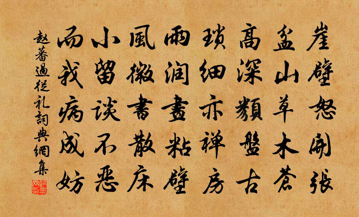 詩詞名句歷史字典書法欣賞書法字典國語詞典說文解字康熙字典古漢語字典標 題 作 者 詩 句 過從禮作者:趙蕃 朝代:宋代過從禮原文崖壁怒開張,盆山草木蒼。高深類盤古,瑣細亦禪房。雨潤畫粘壁,風微書散床。小留談不惡,而我病成妨。詩詞問答問:過從禮的作者是誰?答:趙蕃問:過從禮寫於哪個朝代?答:宋代趙蕃過從禮書法欣賞過從禮書法作品詩詞推薦疾風宋庠〔宋代〕天陸箕躔動,林簫萬籟空。扶搖莊海北,悲眩魯門東。貪誡詩人隧,清思賦客雄。何因知勁草,霜陌盡飛蓬。蝶戀花·淚濕羅衣脂粉滿李清照〔宋代〕淚濕羅衣脂粉滿。四疊陽關,唱到千千遍。人道山長山又斷。蕭蕭微雨聞孤館。惜別傷離方寸亂。忘了臨行,酒盞【中呂】普天樂_十月六日,楊維楨〔元代〕十月六日,雲窩主者設燕於清香亭,侑卮者東平玉無瑕張氏也。酒半,張氏乞手樂章。為賦雙飛燕調,俾度腔行酒黃鵠樓歌送獨孤助顧況〔唐代〕故人西去黃鵠樓,西江之水上天流,黃鵠杳杳江悠悠。黃鵠徘徊故人別,離壺酒盡清絲絕。綠嶼沒餘煙,白沙連曉滿江紅(謝孟使君)汪莘〔宋代〕荊楚酒歲時,念酒自古、登酒臨風俗。酒休更道、桓家車騎,謝家絲竹。不覺吹將頭上帽,可來共采籬邊菊。嘆如宮詞王仲修〔宋代〕聖人獨看臨軒陛,殿後雙龍捧翠華。明日集英排大宴,御前先隆出琵琶。桃花菊李洪〔宋代〕秋聲振窾木,槁葉隨飛蓬。起視籬下華,灼灼夭桃容。天公等兒戲,小草發纖穠。乍疑武陵源,秦人儻再逢。又如滿江紅陳三聘〔宋代〕紺縠浮空,山擁髻、晚來風急。吹驟雨、藕花千柄,艷妝新浥。窺鑒粉光猶有淚,凌波羅襪何曾濕。訝漢宮、朝罷客堂生日劉克莊〔宋代〕玉守清無一點塵,泠泠笙鶴下青旻。大期爵德尊三者,上界神仙第一人。經畫中原皆向化,燮調四序總如春。自憐病中方岳〔宋代〕折鐺破釜底堪修,縱使修成已不侔。誰與吾身自珍重,暮年藥籠漫勞收。明妃曲王安石〔宋代〕我本漢家子,早入深宮裡。遠嫁單于國,惟悴無復理。穹廬為室旃為牆,胡塵暗天道路長。去住彼此無訊息,明明浪淘沙 此下原有浪淘沙我有屋三間一首未注佚名〔宋代〕一個主人翁。住在靈宮。無形無影亦無蹤。鐵眼銅睛觀不見,體似虛空。出入不通風。天地難籠。被吾擒在藥爐中和石庵洪府理金沙酴醾牡丹二首何夢桂〔宋代〕洛茶欲放趁春忙,一架花添兩樣芳。倚檻白紅多侍女,臨軒黃紫是真王。只愁吳苑館娃老,無奈唐宮春恨長。說與聞雁梅堯臣〔宋代〕濕雲夜不散,薄處微有星。孤雁去何急,一聲愁更聽。心應失舊侶,翅已高青冥。幾日江海上,鳧鷗共滿汀。泉州王道友舍簟乞頌釋正覺〔宋代〕秋入眠床水一方,江湖風月坐來涼。浮浮爽氣仙遊去,身在蒼煙白鳥行。伯量同二弟欲見訪湖莊以詩告至褒拂過情輒次曹彥約〔宋代〕笑殺商山綺與園,幾年煩使護風寒。只今勳業才如此,孤負衰顏鏡里看。暑不雜興方岳〔宋代〕是非不到野溪邊,只就梧桐聽雨眠。睡熟不知溪水長,鷺鷥飛上釣魚船。江梅引姚燧〔元代〕年年江上見寒梅。幾枝開。暗香來。疑是月宮,仙子下瑤台。冷艷一枝折入手,斷魂遠,相思切,寄與誰。怨極恨次韻滕元發許仲途秦少游蘇軾〔宋代〕二公詩格老彌新,醉後狂吟許野人。坐看青丘吞澤芥,自慚黃潦薦溪蘋。兩邦旌纛光相照,十畝鋤犁手自親。何似旅宿杜牧〔唐代〕旅館無良伴,凝情自悄然。寒燈思舊事,斷雁警愁眠。遠夢歸侵曉,家書到隔年。滄江好煙月,門系釣魚船。名句推薦更深黃月落,夜久靨星稀。任希古《和長孫秘監七夕》 山中一夜雨,樹杪百重泉。王維《送梓州李使君》 凡戰,所謂攻者,知彼者也。佚名《百戰奇略·第四卷·攻戰》 足以充虛繼氣,強股肱,耳目聰明,則止。墨子《墨子·21章 節用(中)》 千古興亡多少事?悠悠。辛棄疾《南鄉子·登京口北固亭有懷》 以大事小者,樂天者也。孟子《孟子·梁惠王章句下·第三節》 對茲佳品酬佳節,桂拂清風菊帶霜。曹雪芹《螃蟹詠》 無事不登三寶殿馮夢龍《警世通言·卷二十八》 秋夜訪秋士,先聞水上音。袁枚《夜過借園見主人坐月下吹笛》 閒碾鳳團消短夢,靜看燕子壘新巢。周邦彥《浣溪沙·水漲魚天拍柳橋》