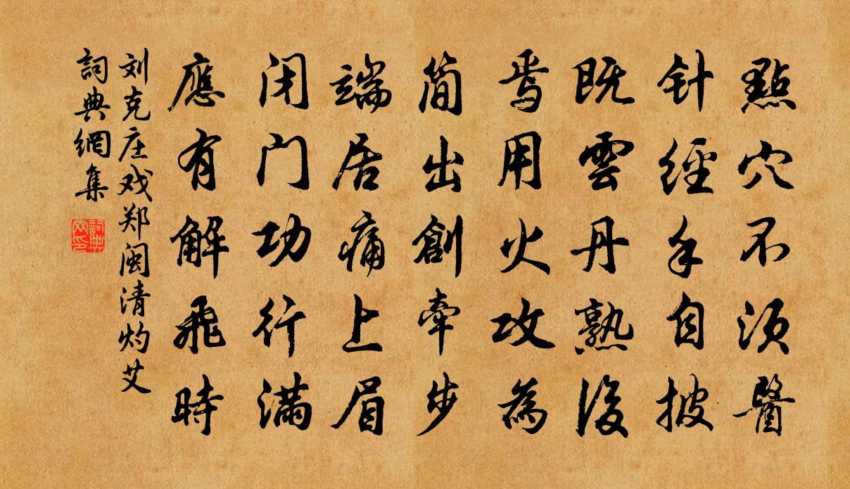 詩詞名句歷史字典書法欣賞書法字典國語詞典說文解字康熙字典古漢語字典標 題 作 者 詩 句 戲鄭閩清灼艾作者:劉克莊 朝代:宋代戲鄭閩清灼艾原文點穴不須醫,針經手自披。既雲丹熟後,焉用火攻為。簡出創牽步,端居痛上眉。閉門功行滿,應有解飛時。詩詞問答問:戲鄭閩清灼艾的作者是誰?答:劉克莊問:戲鄭閩清灼艾寫於哪個朝代?答:宋代問:劉克莊的名句有哪些?答:劉克莊名句大全劉克莊戲鄭閩清灼艾書法欣賞戲鄭閩清灼艾書法作品詩詞推薦天竺觀音董嗣杲〔宋代〕木異難儕眾木淹,刻成慈相孔仁謙。真珠瓔珞鴛鴦殿,白玉屏風悲翠簾。晴雨禱祈隨感召,香燈熾盛極莊嚴。鎮山送人之桐柏周文璞〔宋代〕半溪松黃堆碧波,狂夫於此欲如何。洞天春晚歸不得,司馬悔橋芳草多。聞李十一出牧澧州,崔二十二出牧果州,因寄絕句白居易〔唐代〕平生相見即眉開,靜念無如李與崔。各是天涯為刺史,緣何不覓九江來?謁金門鄭覺齋〔宋代〕秋夜永。葉葉梧桐霜冷。皓月窺人深院靜。孤鴻窗外影。情是相思深井。恩是相思修綆。別後信音渾不定。銀瓶何琴潘牥〔宋代〕道人清夜理瑤琴,愛學啼烏囀羽音。莫把世人工拙論,世 * 耳不彈心。題王立章雲山卷陳深〔宋代〕岌岌兩峰峙,嵐光照寺門。青山無今古,白雲自朝昏。答李從著作宋祁〔宋代〕身是雞翹侍從流,腳踏車淮上老為州。全生正似婆娑樹,不死翻成觳觫牛。今日空名同地餅,晚年歸計有瓜疇。慚君送竇叔向皇甫冉〔唐代〕楚客怨逢秋,閒吟興非一。棄官守貧病,作賦推文律。樵徑未經霜,茅檐初負日。今看泛月去,偶見乘潮出。卜地第一百七十九文天祥〔宋代〕威鳳高其翔,老鶴萬里心。脫略誰能馴,兀兀遂至今。送刁景純學士使北梅堯臣〔宋代〕嘗聞朔北寒尤甚,已見黃河可過車。驛騎駸駸持漢節,邊風慘慘聽胡笳。朝供酪粥冰生碗,夜臥氊廬月照沙。侍女游洞霄登蓬山隱居魏克愚〔宋代〕仙境孰為真,蓬山隱獨清。樹林陰上下,樓觀影崢嶸。雨送流泉響,禽供搗藥聲。何須天柱頂,身已在空明。王通判輓詞樓鑰〔宋代〕才具盍時用,拂衣俄去之。善藏經世手,回施稱家兒。嬴博延陵恨,人琴子敬悲。連年事如許,天道杳難知。早發白帝城 / 白帝下江陵李白〔唐代〕朝辭白帝彩雲間,千里江陵一日還。兩岸猿聲啼不盡,輕舟已過萬重山。秋雨兀坐王原慶攜孫吉父菊花倡和見過有分遺樓鑰〔宋代〕五載杜門居海角,無復翻階賦紅藥。自憐荒徑菊猶存,夕餐空待秋英落。眼明喜見綠叢叢,始也抽苗今滿握。扶筇聽廬山胡道士彈離騷樂雷發〔宋代〕吊湘誰解薦江蘺,忠憤泠泠寫七絲。愁絕九疑山下聽,重華應許就陳詞。紹興以後祀五方帝六十首佚名〔宋代〕萬彙揫斂,時惟冬序。蠢爾黎氓,入此室處。酌獻告神,禮以時舉。賴此陰下,民有所怙。飲馬長城窟行佚名〔兩漢〕青青河畔草,綿綿思遠道。遠道不可思,宿昔夢見之。夢見在我傍,忽覺在他鄉。他鄉各異縣,輾轉不相見。枯桑君莫夸少年一首贈餘光遠戴表元〔宋代〕君莫夸少年,與我憊者疏。我亦嘗少年,少年君不如。談諧今已忘,猶有少年余。東南山水國,早得飛長裾。春園鶯梭劉克莊〔宋代〕擲柳遷喬太有情,交交時作弄機聲。洛陽三月花如錦,多少工夫織得成。有所思二首曹勛〔宋代〕有所思,藐何許,乃在洞庭之陽,瀟湘之浦。我欲訪之限重陰。水有吞舟之巨魚兮,山有食人之猛虎。有所思,藐名句推薦風急桃花也似愁,點點飛紅雨。如晦《楚天遙過清江引·有意送春歸》 人情已厭南中苦,鴻雁那從北地來。王勃《蜀中九日 / 九日登高》 青山一道同雲雨,明月何曾是兩鄉。王昌齡《送柴侍御》 干將為利,名聞天下,匠以治木,不如斤斧。劉向《說苑·雜言》 長使英雄淚滿襟,天意高難問。楊冠卿《卜運算元·秋晚集杜句吊賈傅》 北郭清溪一帶流,紅橋風物眼中秋,綠楊城郭是揚州。王士禎《浣溪沙·紅橋》 志忍私,然後能公;行忍情性,然後能修荀子《荀子·儒效》 懷君屬秋夜,散步詠涼天。韋應物《秋夜寄邱員外 / 秋夜寄丘二十二員外》 夕陽西下,斷腸人在天涯。馬致遠《天淨沙·秋思》 秋風蕭瑟,洪波湧起。曹操《觀滄海 / 碣石篇》