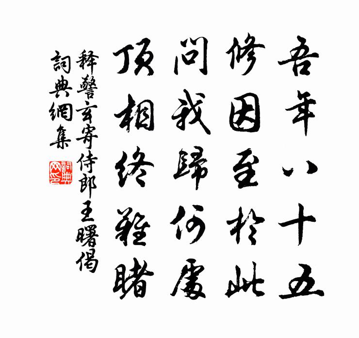 詩詞名句歷史字典書法欣賞書法字典國語詞典說文解字康熙字典古漢語字典標 題 作 者 詩 句 寄侍郎王曙偈作者:釋警玄 朝代:宋代寄侍郎王曙偈原文吾年八十五,修因至於此。問我歸何處,頂相終難睹。詩詞問答問:寄侍郎王曙偈的作者是誰?答:釋警玄問:寄侍郎王曙偈寫於哪個朝代?答:宋代釋警玄寄侍郎王曙偈書法欣賞寄侍郎王曙偈書法作品詩詞推薦次韻和謝江陵楊縣丞投贈四首項安世〔宋代〕徑苔鋪翠葉堆黃,生怕人來便踏傷。病久養成心性懶,閒多衍得歲年長。已拚故我忘俱盡,忽話當年喜欲狂。蓮盪霅溪夜宴詩(松江神歌)水神〔唐代〕君不見夜來渡口擁千艘,中載萬姓之脂膏。當樓船泛泛於疊浪,恨珠貝又輕於鴻毛。又不見朝來津亭維一舠,中有柯橋客亭陸游〔宋代〕小市初晴已過春,朱櫻青杏一番新。灞陵老子無人識,暫借郵亭整角巾。江城梅花引佚名〔宋代〕單衾寒引畫龍聲。雨初晴。月微明。竹外溪邊,低見一枝橫。澹月疏花三四點,尚春淺,早相看、似有情。夜來袖驀山溪(遣懷)趙長卿〔宋代〕無非無是。好個閒居士。衣食不求人,又識得、三文兩字。不貪不偽,一味樂天真,三徑里。四時花,隨分堪遊戲薛舍人使君觀察韓判官侍御許雨晴到所居既霽先呈即事歐陽詹〔唐代〕江皋昨夜雨收梅,寂寂衡門與釣台。西島落花隨水至,前山飛鳥出雲來。觀風駟馬能言駐,行縣雙旌許暫回。豈不送崔全被放歸都覲省岑參〔唐代〕夫子不自衍,世人知者稀,來傾阮氏酒,去著老萊衣。渭北草新出,關東花欲飛,楚王猶自惑,片玉且將歸。牡丹佛手畫幛七絕譚嗣同〔清代〕妙手空空感歲華,天風吹落赤城霞。不應既識西來意,一笑惟拈富貴花。送許員外江外置常平倉岑參〔唐代〕詔置海陵倉,朝推畫省郎。還家錦服貴,出使繡衣香。水驛風催舫,江樓月透床。仍懷陸氏橘,歸獻老親嘗。句齊唐〔宋代〕飛棟新成蘸碧軒,會稽山腳照湖邊。一斛珠(有寄)王質〔宋代〕平塘玉立。薄羅飛起層層碧。人心不似花心密。待要相逢,未必相逢得。襪塵不動何曾濕。芙蓉橋上曾相識。櫓聲寄新冶城釋行海〔宋代〕客中情況果何如,訊息傳來恐是虛。今歲又居何處寺,多時不得故人書。自憐南北身無定,相隔江山夢亦疎。若有句王琪〔宋代〕蠶寒冰趼瘦,蜂老露房欹。江城子劉秉忠〔元代〕平生行止懶編排。住蒿萊。走塵埃。社燕秋鴻,年去復年來。看盡好花春睡穩,紅興紫,任他開。紫微天上列三台初及第歸酬孟元翊見贈章孝標〔唐代〕六年衣破帝城塵,一日天池水脫鱗。未有片言驚後輩,不無慚色見同人。每登公宴思來日,漸聽鄉音認本身。何幸送趙鳳台知府釋心月〔宋代〕五月寒雲濕不飛,臨辭無語思依依。此心不許江山隔,時聽除音來竹扉。鷓鴣天 壽潘君美劉敏中〔元代〕萱草堂前錦棣花。靈椿樹下玉蘭芽。二毛鬢莫驚青鑒,五朵雲鬚上白麻。攜斗酒,醉君家。春風吹我帽簾斜。座中定花阻風五首李曾伯〔宋代〕邊湖六六片時程,況可籃輿度岸行。西舫東船從此辦,任他風浪與陰晴。自湖上歸游朱園和李相之韻二首吳芾〔宋代〕萬頃湖光一鏡開,幾人湖上散輪蹄。水明盡倒千岩影,沙軟新成百里堤。草際已橫煙雨艇,眼前無復稻粱畦。馬侯次韻劉生秋夜郊行陳著〔宋代〕護索郊行秋夜秒,無心萬籟自悲鳴。月林散葉風前下,村舍孤鐙夜半明。暗裡家山應在望,醉中砧杵不關情。歸來名句推薦聖人之為國也,觀俗立法則治,察國事本則宜。商鞅《商君書·算地》 枉直隨形而不在影,屈申任物而不在我列子及其弟子《列子·說符》 雨歇梧桐淚乍收,遣懷翻自憶從頭。納蘭性德《浣溪沙·雨歇梧桐淚乍收》 獨有宦遊人,偏驚物候新。杜審言《和晉陵陸丞早春遊望》 力貴突,智貴卒。得之同則速為上,勝之同則濕為下。呂不韋《呂氏春秋·論·開春論》 已是黃昏獨自愁,更著風和雨。陸游《卜運算元·詠梅》 想文君望久,倚竹愁生步羅襪。姜夔《八歸·湘中送胡德華》 今夜鄜州月,閨中只獨看。杜甫《月夜》 人學始知道,不學非自然。孟郊《勸學》 詩家清景在新春,綠柳才黃半未勻。楊巨源《城東早春》