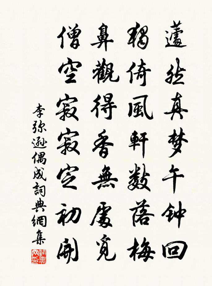 詩詞名句歷史字典書法欣賞書法字典國語詞典說文解字康熙字典古漢語字典標 題 作 者 詩 句 偶成作者:李彌遜 朝代:宋代偶成原文蘧然真夢午鍾回,獨倚風軒數落梅。鼻觀得香無處覓,僧空寂寂定初開。詩詞問答問:偶成的作者是誰?答:李彌遜問:偶成寫於哪個朝代?答:宋代李彌遜偶成書法欣賞偶成書法作品詩詞推薦望遠行·碧砌花光照眼明李煜〔唐代〕碧砌花光照眼明,朱扉長日鎮長扃。余寒欲去夢難成,爐香菸冷自亭亭。遼陽月,秣陵砧,不傳訊息但傳情。黃金四怨三愁五情詩十二首。三情曹鄴〔唐代〕蛺蝶空中飛,夭桃庭中春。見他夫婦好,有女初嫁人。立夏奉祀太一宮五言十韻劉筠〔宋代〕朱駕開炎序,瓊科舉舊儀。恭承宣室詔,肅奉列真祠。地接蘢蔥氣,人多綽約姿。珍叢羅寶槭,嘉樹蔭文榱。仙饌武陵春(上馬宰)趙長卿〔宋代〕又是新逢三五夜,瑞氣靄氤氳。萬點燈和月色新。桃李倍添春。花縣主人情思好,行樂逐良辰。滿引千鍾酒又醇。燕堂春夜陸游〔宋代〕南樓紞紞下疏更,一點紗籠滿院明。映月疏梅入簾影,讀書樨子隔窗聲。呻吟藥裹身寧久?汛掃胡塵意未平。草檄禪人並化主寫真求贊釋正覺〔宋代〕氣清山秋,用光月浮。一無所寄,六不得收。任勝勝而異類,活鱍鱍而隨流。天上天下,雲水自由。晨起眺望張耒〔宋代〕眾木交陰園徑荒,獨尋細徑上東岡。山頭秀插垂雲處,江面平分浴日光。沙際離離橫水鳥,林端歷歷過風檣。登臨句宋真宗〔宋代〕臣守但當守公法,馳騖苟進何可取。當可有詩索和章次韻答之郭印〔宋代〕日斜弄孤桐,妙趣寄無弦。暮天四垂幕,溪山當華筵。碧玉湛新醪,招集飲中仙。雲車夜未散,短燭蟠青煙。合坐永遇樂·春情解昉〔宋代〕風暖鶯嬌,露濃花重,天氣和煦。院落煙收,垂楊舞困,無奈堆金縷。誰家巧縱,青樓弦管,惹起夢雲情緒。憶當永邑楊君鑒子明譬齋讀書將從事於古人為己之陳文蔚〔宋代〕人性靡不性善,因物性始有遷性。本體性遭剝蝕,如鑒塵所昏。疇昔均秉彝,善端本綿綿。既茂閑邪功,誠心所由和陸判院懷祖蘇泂〔宋代〕柴門臨水對山開,日日思君君不來。與世相忘書萬卷,於人無忤酒三杯。參乎畢竟曾師孔,賜也如何敢望回。況是法華寺石門精舍三十韻柳宗元〔唐代〕拘情病幽郁,曠志寄高爽。願言懷名緇,東峰旦夕仰。始欣雲雨霽,尤悅草木長。道同有愛弟,披拂恣心賞。松谿和太尉戲贈高陽公上官儀〔唐代〕薰爐御史出神仙,雲鞍羽蓋下芝田。紅塵正起浮橋路,青樓遙敞御溝前。傾城比態芳菲節,絕世相嬌是六年。慣是送李五王昌齡〔唐代〕玉碗金罍傾送君,江西日入起黃雲。扁舟乘月暫來去,誰道滄浪吳楚分。扈從出長安應制杜審言〔唐代〕分野都畿列,時乘六御均。京師舊西幸,洛道此東巡。文物驅三統,聲名走百神。龍旗縈漏夕,鳳輦拂鉤陳。撫跡谹父出示倅木犀詩次韻王洋〔宋代〕黃姑斸月種文犀,落向三秋月滿時。岩邑疏封兄弟國,銅瓶分派子孫枝。漢宮明艷塗嬌額,仙鼎珍丹散漉籬。好趁詠蝶佚名〔宋代〕口口口口口口口,一業浮動戲蘭芽。裁成碧玉搔頭樣,畫作黃金便面花。閒過樓台飛盡日,又因風雨宿誰家。兒童尋白鶴岩張子容隱居孟浩然〔唐代〕白鶴青岩半,幽人有隱居。階庭空水石,林壑罷樵漁。歲月青松老,風霜苦竹疏。睹茲懷舊業,回策返吾廬。宮詞一百首岳珂〔宋代〕萬里燕雲慮正深,赭袍衿甲被黃金。思文聖主師文母,歸徠州下拆泥封。名句推薦經一失長一智馮夢龍《警世通言·卷三》 飢不擇食,寒不擇衣,慌不擇路,貧不擇妻。施耐庵《水滸傳·第三回》 悅其名而喪其實。尹文《尹文子·大道上》 雲山行處合,風雨興中秋。高適《送魏八》 責人勿厲,小惠或有大得。來俊臣《羅織經·保身卷第七》 戎衣不脫隨霜雪,汗馬驂單長被鐵。李昂《從軍行》 天有陰陽風雨晦明之氣,人有喜怒哀 樂好惡之情。魏徵《隋書·志·卷二十九》 他人有心,予忖度之。佚名《巧言》 錦江春色來天地,玉壘浮雲變古今。杜甫《登樓》 月華今夜黑,全見梨花白。楊基《菩薩蠻·水晶簾外娟娟月》