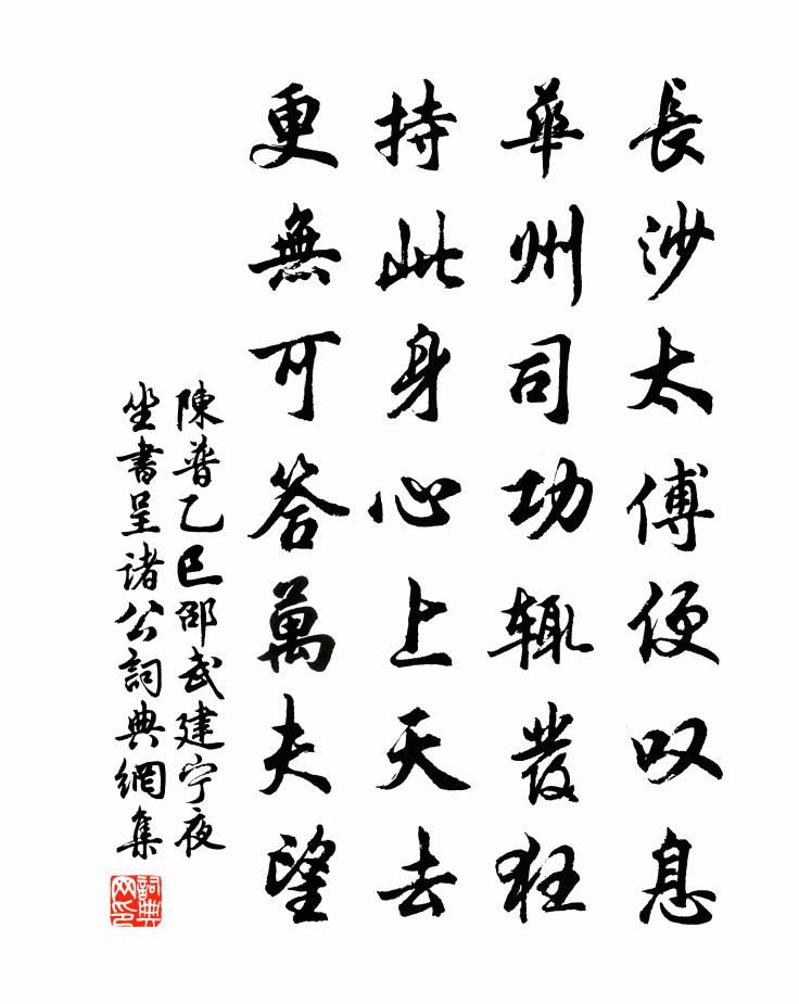 詩詞名句歷史字典書法欣賞書法字典國語詞典說文解字康熙字典古漢語字典標 題 作 者 詩 句 乙巳邵武建寧夜坐書呈諸公作者:陳普 朝代:宋代乙巳邵武建寧夜坐書呈諸公原文長沙太傅便嘆息,華州司功輒發狂。持此身心上天去,更無可答萬夫望。詩詞問答問:乙巳邵武建寧夜坐書呈諸公的作者是誰?答:陳普問:乙巳邵武建寧夜坐書呈諸公寫於哪個朝代?答:宋代陳普乙巳邵武建寧夜坐書呈諸公書法欣賞乙巳邵武建寧夜坐書呈諸公書法作品詩詞推薦木槿花金朋說〔宋代〕夜合朝開秋露新,幽庭雅稱畫屏清。果然蠲得人間忿,何必當年寵太真。午憩萬虛坐睡楊萬里〔宋代〕午暑殘偏力,長亭歇未行。睡鄉蠅俶擾,詩陣筆專征。今夕南吾枕,何時北我旌。不應菊花酒,兒女不同傾。柳絮李中〔唐代〕年年二月暮,散亂雜飛花。雨過微風起,狂飄千萬家。寄題梵天聖果二寺兼簡昭梧二上人釋智圓〔宋代〕靜躁各所好,是非安能辨。聲利如我仇,雲泉若相勉。寂寂深林中,芳蘭自堪搴。感皇恩(生日示妹)程大昌〔宋代〕身壽又康強,謝天將並。耳目聰明行步壯。登高揮翰,不用瞠眉扶杖。華堂偕老處,兒孫王。只恨萍蓬,他鄉浮蕩再次韻審知索彥博送行之交趙蕃〔宋代〕江清可釣思持竹,地廣可耕思種粟。胡為作計久低回,而乃覓官親賤辱。南州徐孺晚與游,江東文度昔所熟。堂堂和魯人孔周翰題詩二首蘇軾〔宋代〕壞壁題詩已五年,故人風物兩依然。定知來歲中秋月,又照先生枕麴眠。宮詞宋白〔宋代〕秋天如水月如霜,玉笛風清曲破長。眾樂任高聲迥別,六宮齊道是君王。句楊徽之〔唐代〕少孤主易感。攬鏡宋祁〔宋代〕晚匣寫菱影,試觀憔悴顏。支離骨不媚,蕭颯鬢垂斑。安得長康畫,致之岩壑間。上亭驛楊子方〔宋代〕時平總忽忠臣語,世亂仍遭弄臣侮。至今說到忒郎當,行路猶能痛千古。送孔徵士皇甫曾〔唐代〕谷口山多處,君歸不可尋。家貧青史在,身老白雲深。掃雪開松徑,疏泉過竹林。餘生負丘壑,相送亦何心。巳未春日山居雜興十二解楊萬里〔宋代〕半月春晴探物華,山園走得腳酸麻。從教三日風和雨,閉戶燒香不看花。昆湖夜歸趙希邁〔宋代〕渡湖歸古縣,一望水程賒。月正帆無影,風橫浪有花。寒更知戍屋,野火是漁家。擬待春洲暖,重來採荻芽。八翁十首張載〔宋代〕青牛西去伯陽翁,當年夫子嘆猶龍。立言為恐真風喪,豈知言立喪真風。見梁檢法書懷八絕句於廣文尉曹處次韻趙蕃〔宋代〕修眉畫就莫求工,自昔常聞妒入宮。不為無人芳自吐,也勝能白又能紅。句宋高宗〔宋代〕池上疏煙籠翡翠,水邊遲日戲蜻蜓。微之鎮武昌中路見寄藍橋懷舊之作悽然繼和兼寄安平劉禹錫〔唐代〕今日油幢引,他年黃紙追。同為三楚客,獨有九霄期。宿草恨長在,傷禽飛尚遲。武昌應已到,新柳映紅旗。題趙團練畫江乾晚景四絕秦觀〔宋代〕公子歌鍾里,何從識渺茫。惟應斗帳夢,曾到水雲鄉。題旌忠亭佚名〔宋代〕轉戰譙門日再晡,空拳猶自把戈鈇。身垂虎口方安坐,命棄鴻毛更疾呼。柱下杲卿存斷節,袴間杵臼得遺孤。可憐名句推薦潯陽江頭夜送客,楓葉荻花秋瑟瑟。白居易《琵琶行 / 琵琶引》 颯颯東風細雨來,芙蓉塘外有輕雷。李商隱《無題·颯颯東風細雨來》 舉頭紅日近,回首白雲低。寇準《詠華山》 眼痛滅燈猶暗坐, 逆風吹浪打船聲。白居易《舟中讀元九詩》 喪禮者,以生者飾死者也,大象其生以送其死也。故事死如生,事亡如存,終始一也。荀子《荀子·禮論》 獨夜憶秦關,聽鍾未眠客。韋應物《夕次盱眙縣》 嫩寒鎖夢因春冷,芳氣籠人是酒香。曹雪芹《紅樓夢·第五回》 晨起開門雪滿山,雪晴雲淡日光寒。鄭燮《山中雪後》 怎不思量,除夢裡、有時曾去趙佶《宴山亭·北行見杏花》 幸遇三杯酒好,況逢一朵花新。朱敦儒《西江月·世事短如春夢》