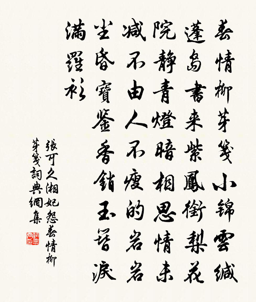 柳芽箋小錦雲緘,蓬島書來紫鳳銜。梨花院靜青燈暗,相思情未減,不由人不瘦的岩岩。塵昏寶鑑,香銷玉簪,淚滿羅衫。