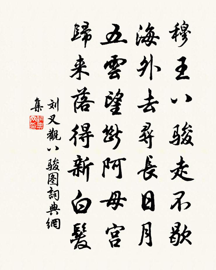 詩詞名句歷史字典書法欣賞書法字典國語詞典說文解字康熙字典古漢語字典標 題 作 者 詩 句 觀八駿圖作者:劉叉 朝代:唐代觀八駿圖原文穆王八駿走不歇,海外去尋長日月。五雲望斷阿母宮,歸來落得新白髮。詩詞問答問:觀八駿圖的作者是誰?答:劉叉問:觀八駿圖寫於哪個朝代?答:唐代問:觀八駿圖是什麼體裁?答:七古劉叉觀八駿圖書法欣賞觀八駿圖書法作品注釋全唐詩:卷395-13詩詞推薦離括日子安湯卿子貫同宿天寧方岳〔宋代〕數月蒼州住,山猶有故情,雨如知去日,詩亦了行程。官柳因寒損,僧茶帶雪清。怕無書信便,一夜語連明。題扇張鎡〔宋代〕梧竹風來玉枕涼,月高偏愛占華堂。休言境界親曾有,畫出如聞夜氣香。六月方文〔清代〕六月重衾更著綿,陰寒渾似暮秋天。我生半百何曾見?記是康熙丙午年。送隱上人還玉峰二首釋寶曇〔宋代〕西風已掛沐猴冠,人語溪聲亦少寬。家有如山牛糞火,為君煨栗勸加餐。洋州蔡交〔宋代〕武定新雄閫,豐寧舊奧墟。地兼秦蜀美,川會漢洋紆。翠壘環封嶺,清流躍野渠。安知下斜谷,別得上華胥。乾酒春夜聞笛李益〔唐代〕寒山吹笛喚春歸,遷客相看淚滿衣。洞庭一夜無窮雁,不待天明盡北飛。送孟八浩然歸襄陽二首(下篇一作王維詩)張子容〔唐代〕東越相逢地,西亭送別津。風潮看解纜,雲海去愁人。鄉在桃林岸,山連楓樹春。因懷故園意,歸與孟家鄰。杜門金縷曲(用稼軒韻作)劉將孫〔宋代〕我老無能矣。嘆人生、得開笑口,一年閒幾。去景悠悠如有待,白髮已非春事。便一笑、何曾是喜。我本漁樵孟諸偈傾一百三十三首釋法薰〔宋代〕古今日月,依舊山河。新年佛法,特地干戈。水到滄溟不是波。紅芍藥元稹〔唐代〕芍藥綻紅綃,巴籬織青瑣。繁絲蹙金蕊,高焰當爐火。翦刻彤雲片,開張赤霞裹。煙輕琉璃葉,風亞珊瑚朵。受露陰雨白居易〔唐代〕嵐霧今朝重,江山此地深。灘聲秋更急,峽氣曉多陰。 望闕雲遮眼,思鄉雨滴心。將何慰幽獨,賴此北窗琴。長思仙譚處端〔元代〕好顏容。似花紅。莫待馨香逐晚風。臨頭始悟空。妙搜窮。脫凡籠。猛烈灰心出世雄。功成三島峰。相和歌辭。怨歌行吳少微〔唐代〕城南有怨婦,含怨倚蘭叢。自謂二八時,歌舞入漢宮,皇恩弄幸玉堂中。綠陌黃花催夜酒,錦衣羅袂逐春風。建章送梵才辰吉還天台宋祁〔宋代〕歸祴卷蘭芽,城標拂曙霞。溪行鷗避錫,冉供馬銜花。翠柰經園密,蒼莓渡彴斜。暮雲他日合,相望在天涯。和蔣潁叔涇溪余良肱〔宋代〕畫舸夷猶紫翠間,暮雲如掃月如環。三山六刺須臾過,恰似嚴陵七里灘。寄鶴山魏侍郎陳宓〔宋代〕朝辭岩禁暮荒城,底是人間辱與榮。料得胸中無點累,每於夜半省鐘聲。題楊敬之贈項斯詩後曾由基〔宋代〕今古銷沉幾項斯,由來作者不祈知。看渠一片憐才意,合把黃金鑄敬之。寄題正倫侄舫齋詩二首陳瓘〔宋代〕畫舫名齋閣,端居事若何。燕知真酖毒,言即是風波。未便乘桴去,惟同載酒過。濟川如有意,南去問施羅。送胡平一赴召六絕曾豐〔宋代〕匪旦參兮伊夕樞,收藏名跡不容書。史官強立功臣傳,房本無功功有餘。禪人並化主寫真求贊釋正覺〔宋代〕髑髏歷乾,鼻孔覺寬。廓空三際,不立毫端。面目風霜殺,身心水月寒。情塵淨盡兮,萬像齊觀。名句推薦愁一箭風快,半篙波暖,回頭迢遞便數驛周邦彥《蘭陵王·柳》 出入君懷袖,動搖微風發。班婕妤《怨歌行》 勢有不可得,事有不可成。韓非及後人《韓非子·觀行》 春風只在園西畔。薺菜花繁胡蝶亂。嚴仁《玉樓春·春思》 桃花仙人種桃樹,又摘桃花換酒錢。唐寅《桃花庵歌》 枉直隨形而不在影,屈申任物而不在我列子及其弟子《列子·說符》 昔別君未婚,兒女忽成行杜甫《贈衛八處士》 請君試問東流水,別意與之誰短長。李白《金陵酒肆留別》 春風依舊。著意隨堤柳。趙令畤《清平樂·春風依舊》 三日入廚下,洗手作羹湯。王建《新嫁娘詞三首》