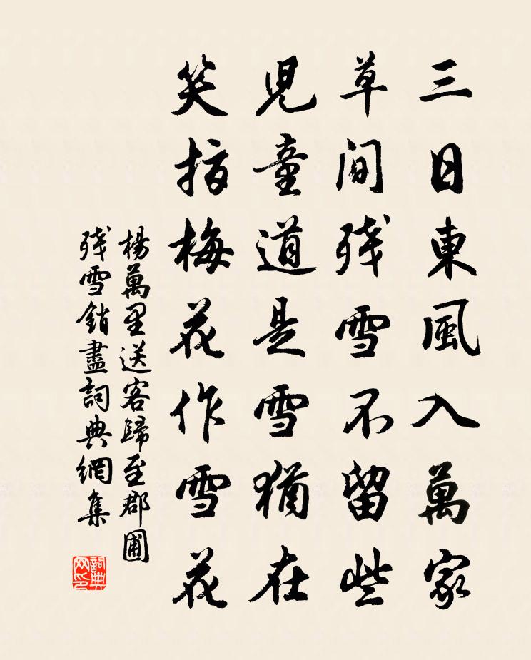 三日東風入萬家,草間殘雪不留些。兒童道是雪猶在,笑指梅花作雪花。