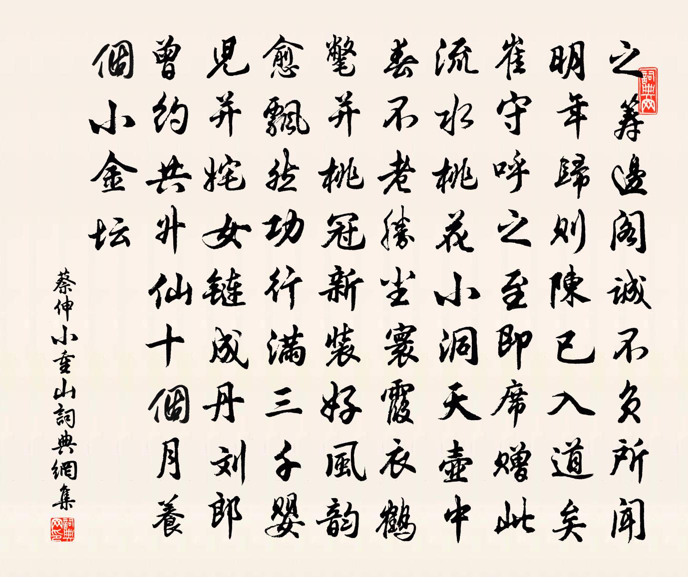 詩詞名句歷史字典書法欣賞書法字典國語詞典說文解字康熙字典古漢語字典標 題 作 者 詩 句 小重山作者:蔡伸 朝代:宋代小重山原文之籌邊閣,誠不負所聞。明年歸,則陳已入道矣。崔守呼之至,即席贈此流水桃花小洞天。壺中春不老,勝塵寰。霞衣鶴氅並桃冠。新裝好,風韻愈飄然。功行滿三千。嬰兒並奼女,鏈成丹。劉郎曾約共升仙。十個月,養個小金壇。詩詞問答問:小重山的作者是誰?答:蔡伸問:小重山寫於哪個朝代?答:宋代蔡伸小重山書法欣賞小重山書法作品詩詞推薦董公詩張籍〔唐代〕誰主東諸侯,元臣隴西公。旌節居汴水,四方皆承風。在朝四十年,天下誦其功。相我明天子,政成如太宗。東方柯敬仲墨竹李東陽〔明代〕莫將畫竹論難易,剛道繁難簡更難。君看蕭蕭只數葉,滿堂風雨不勝寒。元符戊寅與無斁弟卜居緡城東述情晁補之〔宋代〕四海一居何處卜,北窗祗取見家山。要無名利來心曲,便有園林世出間。拙宦莫興三黜嘆,老歸未厭百年閒。先君立春內中帖子詞皇后閣王珪〔唐代〕迎得韶光入壽杯,披香華殿倚雲開。只應王母瑤池宴,又送新春寶勝來。賀黎耐交建經史閣趙必象〔宋代〕芹宮地屬淳熙祖,芸閣功成四世孫。千載詩書元氣在,百年文獻故家存。卷還贈券珍公帑,留取芳名榜聖門。當道復雪方岳〔宋代〕老夫茅屋住冰壺,山市人家亦畫圖。世界空花春勢力,神仙乾汞水工夫。詩情浩浩迷高厚,元氣茫茫混有無。一夜再用才子富文華校讎天祿閣韻贈周教授陳造〔宋代〕窮途有快意,辟席得異聞。青天千萬里,翳日帶煙雲。今者君子後,滿窺崔蔡文。當此陣堂堂,嘆我提孤軍。又判爭貓兒狀裴諝〔唐代〕貓兒不識主,傍家搦老鼠。兩家不須爭,將來與裴諝。次韻徐仲車喜董元達訪之作南郭篇四韻黃庭堅〔宋代〕董侯從軍來,意望名不朽。款門拜徐公,在德不在酒。徐公雖避俗,對客輒粲然。耳不聞世事,時誦陶令篇。東坡在惠州窘於衣食以重九近有樽俎蕭然之嘆趙蕃〔宋代〕閒居起常早,倦巾首如蓬。偶繙西都書,意外文字工。清名誰為高,凜凜惟楚龔。當時豈無人,罕與二子同。乃知種瓜韋應物〔唐代〕率性方鹵莽,理生尤自疏。今年學種瓜,園圃多荒蕪。眾草同雨露,新苗獨翳如。直以春窘迫,過時不得鋤。田家竹枝歌十首汪元量〔宋代〕白頭漁父白頭妻,網得魚多夜不歸。生怕渡官搜著稅,巴東轉柁向巴西。四威儀釋師範〔宋代〕山中住,落葉不如數,地人掃,翳卻松門路。新歲書懷四首戴復古〔宋代〕老病從人笑,兒童識我誰。窮愁無地著,心事有天知。鵲噪緣何喜,蛙鳴豈為私。如何得懷抱,長似醉眠時。長相思·南高峰袁正真〔宋代〕南高峰。北高峰。南北高峰雲淡濃。湖山圖畫中。采芙容。小小紅船西復東。相思無路通。寓富池雙泉寺三首董嗣杲〔宋代〕丹楓葉葉委江塘,旅況空餘古錦囊。闕下有家勞夢寐,燈前無酒遣荒涼。陳蹤浮泛棲僧舍,往事消磨落客床。世態句袁樞〔宋代〕溫黃前後並,殿下不須行。賦未見君子憂心靡樂八韻寄李載黃庭堅〔宋代〕會合良艱期,系匏各異縣。千里共明月,如披故人面。浮雲蔽高秋,此豈心中願。霧重豹成文,水清魚自見。鳳凰台戴復古〔宋代〕登臨舍老眼,弔古得淒涼。故國自龍虎,高台無鳳凰。浮雲多改變,喬木見興亡。往事渾休問,鐘山又夕陽。百年舒岳祥〔宋代〕流水故人盡,荒村落葉多。空餘老矍鑠,全是病維摩。齒落不知味,眼花應有魔。百年聊爾爾,千載欲如何。名句推薦人生得意須盡歡,莫使金樽空對月。李白《將進酒》 白馬金鞍從武皇,旌旗十萬宿長楊。王昌齡《青樓曲二首》 常人突遭禍患,可決其再興,心動於警勵也。王永彬《圍爐夜話·第三七則》 錦瑟無端五十弦,一弦一柱思華年。李商隱《錦瑟》 愁因薄暮起,興是清秋發。孟浩然《秋登蘭山寄張五》 槐陰別院宜清晝,入座春風秀。美人圖子阿誰留。元好問《虞美人·槐陰別院宜清晝》 鷙鳥將擊,卑飛斂翼;猛獸將搏,弭耳俯伏;聖人將動,必有愚色。姜子牙《六韜·武韜·發啟》 舊相思、偏供閒晝。吳文英《夜遊宮·春語鶯迷翠柳》 卻道“天涼好個秋”!辛棄疾《醜奴兒·書博山道中壁》 春無蹤跡誰知。除非問取黃鸝。黃庭堅《清平樂·春歸何處》