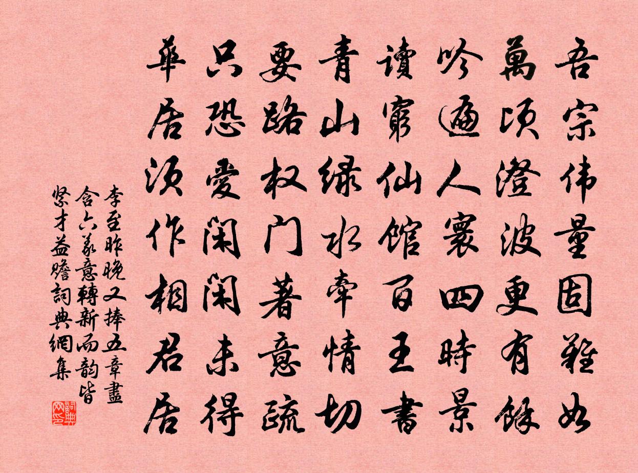 詩詞名句歷史字典書法欣賞書法字典國語詞典說文解字康熙字典古漢語字典標 題 作 者 詩 句 昨晚又捧五章盡含六義意轉新而韻皆緊才益贍作者:李至 朝代:宋代原文吾宗偉量固難如,萬頃澄波更有餘。吟遍人寰四時景,讀窮仙館百王書。青山綠水牽情切,要路權門著意疏。只恐愛閒閒未得,華居須作相君居。詩詞問答問:《昨晚又捧五章盡含六義意轉新而韻皆緊才益贍》的作者是誰?答:李至問:該詩寫於哪個朝代?答:宋代書法欣賞昨晚又捧五章盡含六義意轉新而韻皆緊才益贍書法作品詩文賞析【原題】:昨晚又捧五章盡含六義意轉新而韻皆緊才益贍而調彌高始知元白之前賢虛擅車斜之美譽夜來繞遍林樹搜窮肺肝雖巧拙以不侔亦謳吟而自得又依前韻各罄乃懷所貴夫伏老之身心亦罔避不量力之譏誚自茲解甲且議休兵向非起予何以為樂大雅君子無或見咍:二歌盛美也詩詞推薦遇羅員外袞黃滔〔唐代〕灞陵橋外駐征轅,此一分飛十六年。豸角戴時垂素髮,雞香含處隔青天。綺園難貯林棲意,班馬須持筆削權。可忘游彰法寺打擢秀閣詩以行趙蕃〔宋代〕四海擢秀閣,茲晨彰法游。名隨寺俱徙,地入道家流。尚喜黃詩在,仍容墨本求。從今茅屋底,自有皖山幽。彭尉焚巢二首陳造〔宋代〕彭家柳邊堂,江色潤書畫。乃公根柢學,衣傳自心會。唾手勳業余,探妙文字外。區區青紫計,韋子豈君配。神物贈前蔚州崔使君馬戴〔唐代〕戰回脫劍綰銅魚,塞雁迎風避隼旟。欲識前時為郡政,校成上下考新書。甘露寺火後羅隱〔唐代〕六朝勝事已塵埃,猶有閒人悵望來。只道鬼神能護物,不知龍象自成灰。犀慚水府渾非怪,燕說吳宮未是災。還識句陸扆〔唐代〕今秋已約天台月。題共閒亭五首姜特立〔宋代〕楊葉屢穿非是妙,庖刀未缺更須藏。何人識得閒三昧,袖手急流滋味長。牛觸馬方回〔宋代〕誰家一大樹,系者水牯牛。我馬過其側,道狹還無由。牛輒奮雙角,直前舂馬喉。傷馬已不可,傷人吾何仇。鼻繩瑞鷓鴣(和通判送別)葛勝仲〔宋代〕兩年人住豈無情。別乘辭華四水清。何事千鍾勤飲餞,故知一別未能輕。解龜雖幸樊籠出,掛席還愁海汐平。江草蝶戀花佚名〔宋代〕急鼓疏鐘聲報曉。樓上今朝,捲起重簾早。環佩珊珊香裊裊。塵埃不到如蓬島。何用珠璣相映照。韻勝形清,自有飛雪滿群山蔡伸〔宋代〕冰結金壺,寒生羅幕,夜闌霜月侵門。翠筠敲竹,疏梅弄影,數聲雁過南雲。酒醒敧粲枕,愴猶有、殘妝淚痕。繡草詞畢遇芍藥初開,因詠小謝紅藥當階翻詩,白居易〔唐代〕罷草紫泥詔,起吟紅藥詩。詞頭封送後,花口拆開時。坐對鉤簾久,行觀步履遲。兩三叢爛熳,十二葉參差。背日詠叔孫通宋祁〔宋代〕馬上成功不喜文,叔孫綿蕞擅經綸。諸生可笑貪君賜,便許當時作聖人。贈史文通奉議二首蘇轍〔宋代〕有叟住東野,畏人希入城。君時共還往,我欲問修行。早歲識岩客,近時逢絳生。真能訪茅屋,屣履試將迎。送李司直使吳(得家花斜沙字,依次用)張眾甫〔唐代〕使臣方擁傳,王事遠辭家。震澤逢殘雨,新豐過落花。水萍千葉散,風柳萬條斜。何處看離恨,春江無限沙。雜言迎神詞二首送神皇甫冉〔唐代〕露沾衣,月隱壁;氣淒淒,人寂寂,風回雨度虛瑤席。來無聲,去無跡,神心降和福遠客。大滌洞天留題閻良臣〔宋代〕慈泉地辟與天開,屈曲飛鳴聲隱雷。若使翠華臨此地,飛來未必羨佳哉。玉台體利登〔宋代〕兩彎弓月眉端照,一朵忪雲鬢畔歸。欲默不能言不可,嬌心無著憑青衣。次韻張君病起二首蘇轍〔宋代〕壯年得疾勢能支,不廢霜螯左手持。漸喜一杯好留客,未應五斗似當時。口中舌在時聞句,雪裡心安不問師。去臥寄餘干徐隱甫黃庭堅〔宋代〕江行長邅回,風水憂索米。相逢解人頤,高士徐孺子。鸕鶿葭葦間,煮茗當酌醴。夜船餉蒸鵝,白髮厭甘旨。東江名句推薦尚憶先朝多樂事,孝皇曾為兩宮開。王守仁《元夕二首》 人生自是有情痴,此恨不關風與月。歐陽修《玉樓春·尊前擬把歸期說》 喜遇重陽,更佳釀今朝新熟。宋江《滿江紅·喜遇重陽》 聞道長安燈夜好,雕輪寶馬如雲。毛滂《臨江仙·都城元夕》 閏余成歲,律呂調陽。周興嗣《千字文·全文》 仙佛茫茫兩未成,只知獨夜不平鳴。黃景仁《雜感》 東山老,可堪歲晚,獨聽桓箏。葉夢得《八聲甘州·壽陽樓八公山作》 蕭蕭江上荻花秋,做弄許多愁。賀鑄《眼兒媚·蕭蕭江上荻花秋》 砧杵敲殘深巷月,井梧搖落故園秋。陸游《秋思》 天不老,情難絕。張先《千秋歲·數聲鶗鴂》