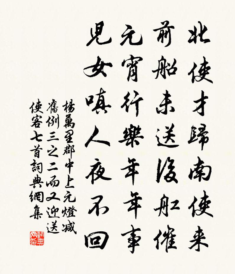 北使才歸南使來,前船未送後舡催。元宵行樂年年事,兒女嗔人夜不回。