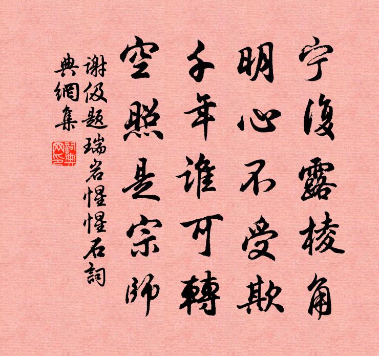 詩詞名句歷史字典書法欣賞書法字典國語詞典說文解字康熙字典古漢語字典標 題 作 者 詩 句 題瑞岩惺惺石作者:謝伋 朝代:宋代題瑞岩惺惺石原文寧復露稜角,明心不受欺。千年誰可轉,空照是宗師。詩詞問答問:題瑞岩惺惺石的作者是誰?答:謝伋問:題瑞岩惺惺石寫於哪個朝代?答:宋代謝伋題瑞岩惺惺石書法欣賞題瑞岩惺惺石書法作品詩詞推薦再和王之望〔宋代〕年將六秩諸衰具,漏盡鐘鳴行不住。一身許國銖兩輕,萬里攜家斗升赴。五羊大夫習勞苦,三鱣先生嗟晚暮。分為為王師宣子壽釋寶曇〔宋代〕風入床琴帝夢闌,蓬萊為輟老仙官。袖曾有縛於菟手,頭不須簪獬豸冠。桃李無言民自樂,冰霜折指吏應寒。西京減字浣溪沙(十五之九)賀鑄〔宋代〕鸚鵡驚人促下簾。碧紗如霧隔香奩。雪兒窺鏡晚蛾纖。烏鵲橋邊河絡角,鴛鴦樓外月西南。門前嘶馬弄金銜。與蘇運使詡四首趙蕃〔宋代〕草木日搖落,道路方阻長。豐年米故賤,逆旅錢自荒。暝宿村舍煙,朝行板橋霜。豈不願息肩,於此增彷徨。和四十五叔慶謙子過省二首廖行之〔宋代〕長笑痴兒戀戲衫,拖泥帶水漫卑凡。何如一動君王聽,不入徒勞簿尉銜。細水循除空虢虢,泰山終古鎮岩岩。可憐滿江紅(暮春)辛棄疾〔宋代〕可恨東君,把春去春來無跡。便過眼、等閒輸了,三分之一。晝永暖翻紅杏雨,風晴扶起垂楊力。更天涯、芳草最贈相士丁日宣周文璞〔宋代〕張公謂余可神仙,薛顛謂余可英傑。丁生謂二皆無成,世間安有此奇絕。麒麟閣上冠貂蟬,龍虎鼎內治大丹。興來詠鸚鵡釋定諸〔宋代〕罩向金籠好羽儀,分明喉舌似君稀。不須一向隨人語,須信人心有是非。宿千歲庵聽泉劉克莊〔宋代〕因愛庵前一脈泉,襥衾來此借房眠。驟聞將謂溪當戶,久聽翻疑屋是船。變作怒聲猶壯偉,滴成細點更清圓。君看和蔡鐵窗韻陳元晉〔宋代〕鐵窗詩價遠,應是到雞林。修月有妙手,伴雲無出心。調高追郢曲,間古和虞琴。江乾覽鏡陽枋〔宋代〕千重涌淺身曾過,萬頃湖深也去來。平地雪中蕭店宿,掀天浪里片帆開。干戈鼎沸騰還失,炎暑甑蒸師正災。小艇妙香院僧堂後路直臨溪石台古松蟠其上松之下趙蕃〔宋代〕壁間石色隱青紅,指似夭夭即此中。金石著文猶叵信,況堪傳者自漁翁。渡江雲·山陰久客一再張炎〔宋代〕山空天入海,倚樓望極,風急暮潮初。一簾鳩外雨,幾處閒田,隔水動春鋤。新煙禁柳,想如今、綠到西湖。猶記臨川節中寄季和弟李壁〔宋代〕敕使傳宣泛食時,去年今日侍龍墀。江城牢落追前事,一寸丹心只自知。卜運算元陳瓘〔宋代〕只解勸人歸,都不留人住。南北東西總是家,勸我歸何處。去住總由天,天意人難阻。若得歸時我自歸,何必閒言柳堤詩詹敦仁〔唐代〕種稻三十頃,種柳百餘株。稻可供饘粥,柳可爨庖廚。息耒柳陰下,讀書稻田隅。以樂堯舜道,同是耕莘夫。和梁飾甫通判招飲林子長溪堂韻袁說友〔宋代〕多病苦長夏,炎歊盛朱明。得秋如故人,一見意已清。夜來風襲月,桂柳窺欄楹。頗憶橫塘溪,百計無餘營。清風清平樂(壽吳毅夫)吳泳〔宋代〕梅霖未歇。直透菖華節。荔子才丹梔子白。抬貼誕彌嘉月。峨冠蟬尾翛翛。整衣鶴骨彯彯。聞道彩雲深處,新添弄句陳偁〔宋代〕壺漿壓境來迎拜,猶記溪山舊主人。宮詞宋白〔宋代〕便路橫穿玉兔門,夜宣狎客讌罇。江郎才俊思華別,賜坐從容索繡墩。名句推薦淇水昨送淚沾巾,紅妝宿昔已應新蕭子顯《春別詩四首·其三》 竹憐新雨後,山愛夕陽時。錢起《谷口書齋寄楊補闕》 喪雖有禮,而哀為本焉。墨子《墨子·02章 修身》 人學始知道,不學非自然。孟郊《勸學》 夜來攜手夢同游,晨起盈巾淚莫收。白居易《夢微之》 舊時王謝堂前燕,飛入尋常百姓家。劉禹錫《烏衣巷》 兒女紛紛夸結束,新樣釵符艾虎。劉克莊《賀新郎·端午》 葉潤林塘密,衣乾枕席清。杜甫《水檻遣心二首》 富貴非榮,富貴而利濟於世者為榮。王永彬《圍爐夜話·第三一則》 彩扇紅牙今都在,恨無人、解聽開元曲。蔣捷《賀新郎·夢冷黃金屋》