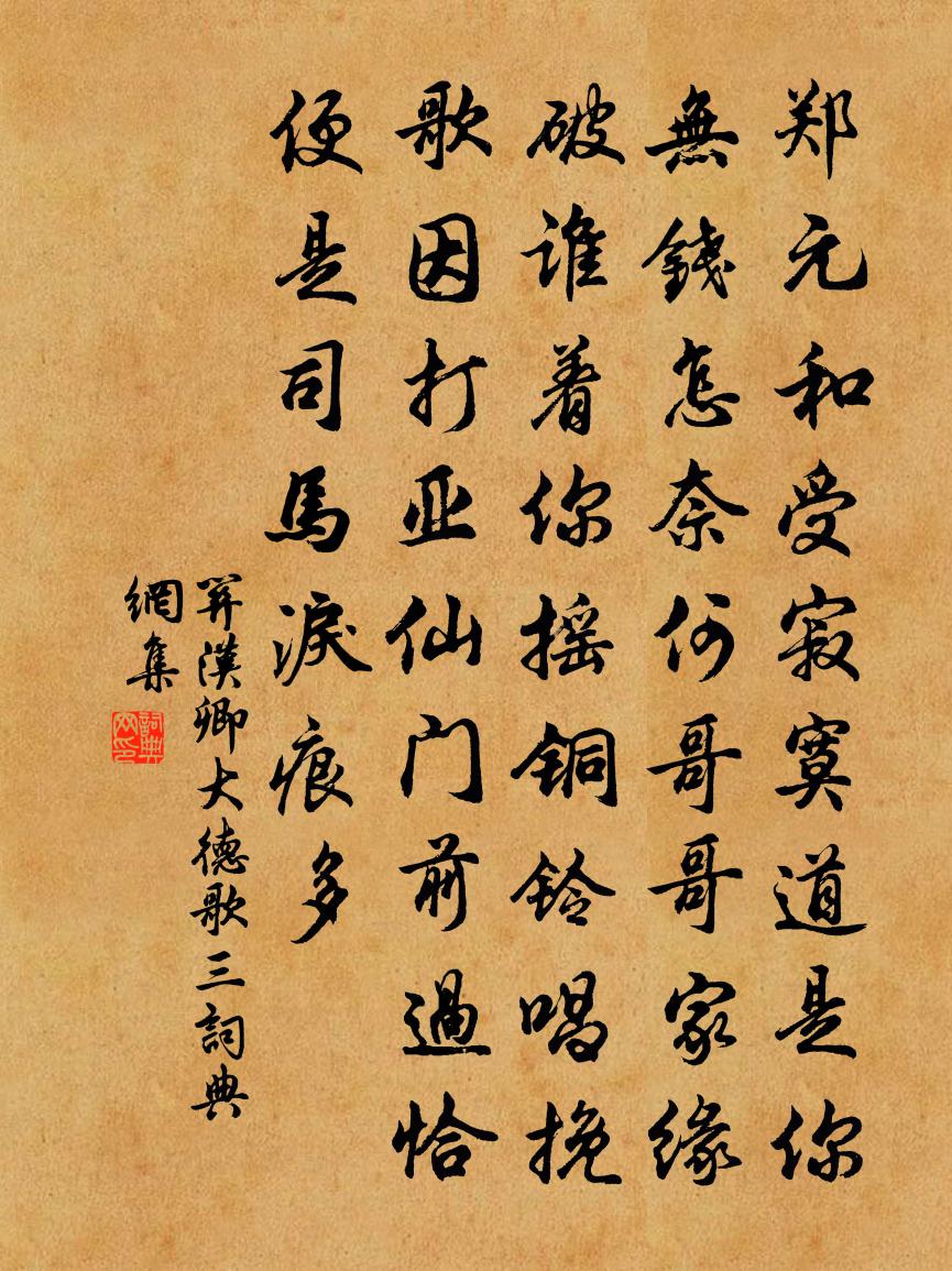 鄭元和,受寂寞,道是你無錢怎奈何?哥哥家緣破,誰著你搖銅鈴唱輓歌。因打亞仙門前過,恰便是司馬淚痕多。