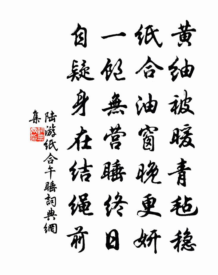 黃紬被暖青氈穩,紙合油窗晚更妍。一飽無營睡終日,自疑身在結繩前。