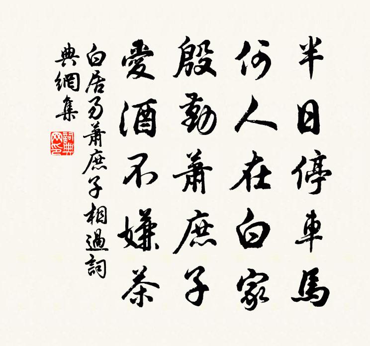 半日停車馬,何人在白家。殷勤蕭庶子,愛酒不嫌茶。