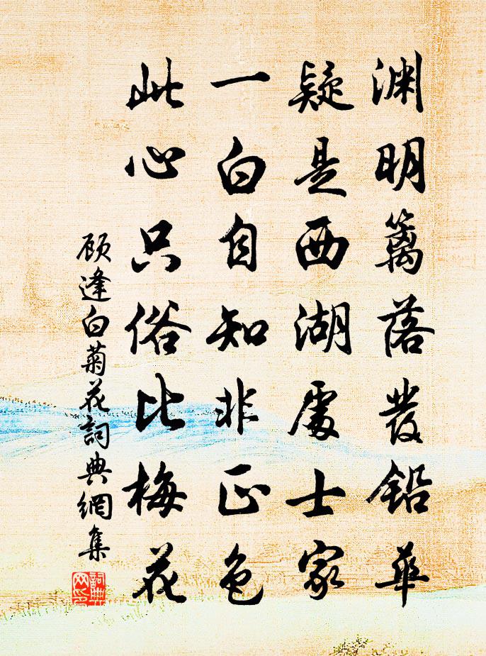 詩詞名句歷史字典書法欣賞書法字典國語詞典說文解字康熙字典古漢語字典標 題 作 者 詩 句 白菊花作者:顧逢 朝代:宋代白菊花原文淵明籬落髮鉛華,疑是西湖處士家。一白自知非正色,此心只俗比梅花。詩詞問答問:白菊花的作者是誰?答:顧逢問:白菊花寫於哪個朝代?答:宋代顧逢白菊花書法欣賞白菊花書法作品詩詞推薦謝朱公美遺瓜酒金君卿〔宋代〕龍蹄甘美蟻頭香,遠遠緘封遣老郎。便向喦亭逃暑去,恨無人共把觥觴。奉和運判朝散登樂山亭韓維〔宋代〕看山日日上孤城,不問雲昏與雪晴。六六高峰長秀色,雙雙啼鳥忽春聲。心驚流水光陰逝,身慕冥鴻羽翼輕。方促寄題習景純藏春塢司馬光〔宋代〕藏春在何放,鬱郁成松林。永日門闌靜,東風花木深。主公今素髮,野服遂初心。時與鄉人醉,高歌散百金。蝶戀花趙令畤〔宋代〕懊惱嬌痴情未慣。不道看看,役得人腸斷。萬語千言都不管。蘭房跬步如天遠。廢寢忘餐思想遍。賴有青鸞,不必次韻簽判丈立春日長句趙蕃〔宋代〕未說麥黃如病人,可堪梅落似殘春。休論北客驚相嘆,試問南公見一新。謂恐齊民罹癘疫,又言漢詔發深淳。從茲次韻和丹陽裴如晦學士寄示與蔡子直陳述古唱蘇頌〔宋代〕登瀛忝繼唐詞客,補郡仍陪漢望郎。政事將何攀邵杜,聲名空貴躡王楊。送趙承議陳師道〔宋代〕先生隱德世難名,晚見諸孫也自成。潁水向來須好句,道山今日有宗英。林湖更覺追隨盡,巾帽猶堪語笑傾。勤苦寄八十僧寶月溪顧逢〔宋代〕同庚同志又同師,湖海無人是舊知。百念俱灰惟一癖,死為鬼後亦吟詩。頌十玄談達本釋印肅〔宋代〕撒手到家人不識,明朝更不分南北。逢場作戲弄孔魂,反指牛兒是彌勒。三月十六日石湖書事三首范成大〔宋代〕種木二十年,手開南野荒。苒苒新歲月,依依舊林塘。污萊擅下濕,岑蔚驕眾芳。菱母尚能瘦,竹孫如許長。憶初寄一江薛梅坡顧逢〔宋代〕別君五十載春冬,遙想年來亦老容。見說多番入城市,路中相覓不相逢。紹興二十八年祀圜丘學士院〔宋代〕明明翼祖,閏侑泰壇。和造綿字,王業孔艱。表正封略,上際下蟋。躬以大報,亦止於燔。和張先輩見寄二首徐鉉〔唐代〕清時淪放在山州,邛竹紗巾處處游。野日蒼茫悲鵬舍,水風陰濕弊貂裘。難鳴候旦寧辭晦,松節凌霜幾換秋。兩首鹽商婦白居易〔唐代〕昨夜霜一降,殺君庭中槐。乾葉不待黃,索索飛下來。憐君感節物,晨起步前階。臨風踏葉立,半日顏色低。西望立春方岳〔宋代〕池痕吹皺綠粼粼,才見池痕認得春。香沁采鞭旗腳轉,自題蘭帖記春新。探春田為〔宋代〕小雨分山,斷雲鏤日,丹青歡狀清曉。柳眼窺晴,梅妝迎暖,林外幽禽啼早。煙徑潤如酥,正濃淡遙看堤草。望中赴職荊湖途中作張詠〔宋代〕闕下過從禮數頻,到官憂事更勞神。每逢山驛連宵住,似待孤雲憫此身。遇物感興因示子弟白居易〔唐代〕聖擇狂夫言,俗信老人語。我有老狂詞,聽之吾語汝。吾觀器用中,劍銳鋒多傷。吾觀形骸內,骨勁齒先亡。寄言無夢令侯善淵〔元代〕地水火風四大。為你百端為害。逐便各別離,遣我法身輕快。自在。自在。攝化超靈三界。過葉苔磯故居有感顧逢〔宋代〕天井坊中過,令人憶故知。幾回上心處,諸老倚樓時。猶記負暄稿,誰傳詠史詩。坐間年最小,今已白髭眉。名句推薦雲里帝城雙鳳闕,雨中春樹萬人家。王維《奉和聖制從蓬萊向興慶閣道中留春雨中春望之作應制》 差若毫釐,謬以千里。魏收《魏書·列傳·卷六十六》 南浦春來綠一川,石橋朱塔兩依然。范成大《橫塘·南浦春來綠一川》 坐看黑雲銜猛雨,噴灑前山此獨晴。崔道融《溪上遇雨二首》 不見去年人,淚濕春衫袖。歐陽修《生查子·元夕》 家家乞巧望秋月,穿盡紅絲幾萬條。林傑《乞巧》 後不乏人,榮之方久,賢者自苦亦惠嗣。來俊臣《羅織經·固榮卷第六》 更無柳絮因風起,惟有葵花向日傾。司馬光《客中初夏》 畢竟年年用著來,何似休歸去。如晦《楚天遙過清江引·有意送春歸》 東風灑雨露,會入天地春。李白《送郄昂謫巴中》