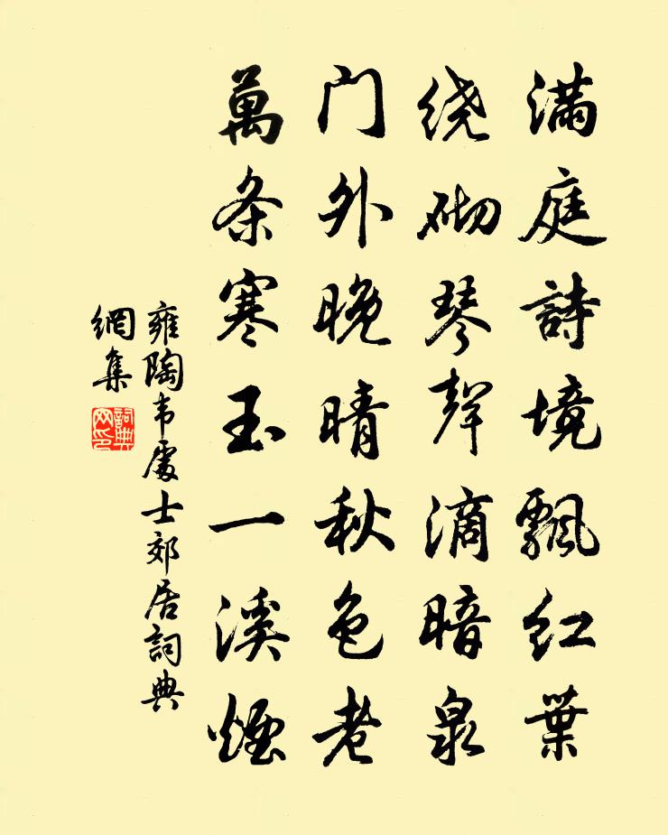 滿庭詩境飄紅葉,繞砌琴聲滴暗泉。門外晚晴秋色老,萬條寒玉一溪煙。