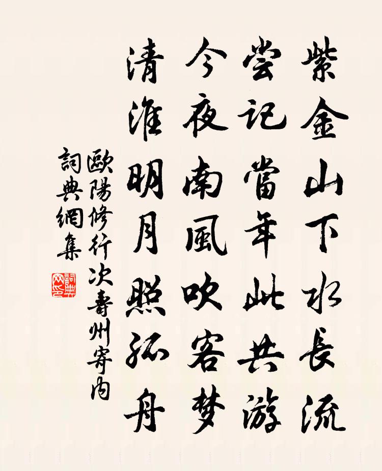 紫金山下水長流,嘗記當年此共游。今夜南風吹客夢,清淮明月照孤舟。