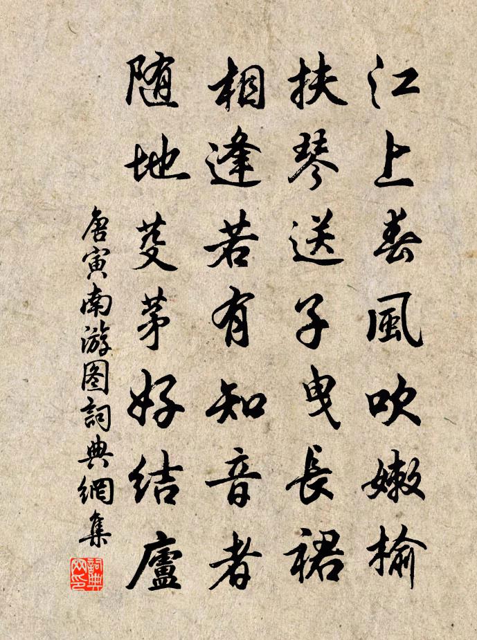 江上春風吹嫩榆,扶琴送子曳長裙。相逢若有知音者,隨地芟茅好結廬。