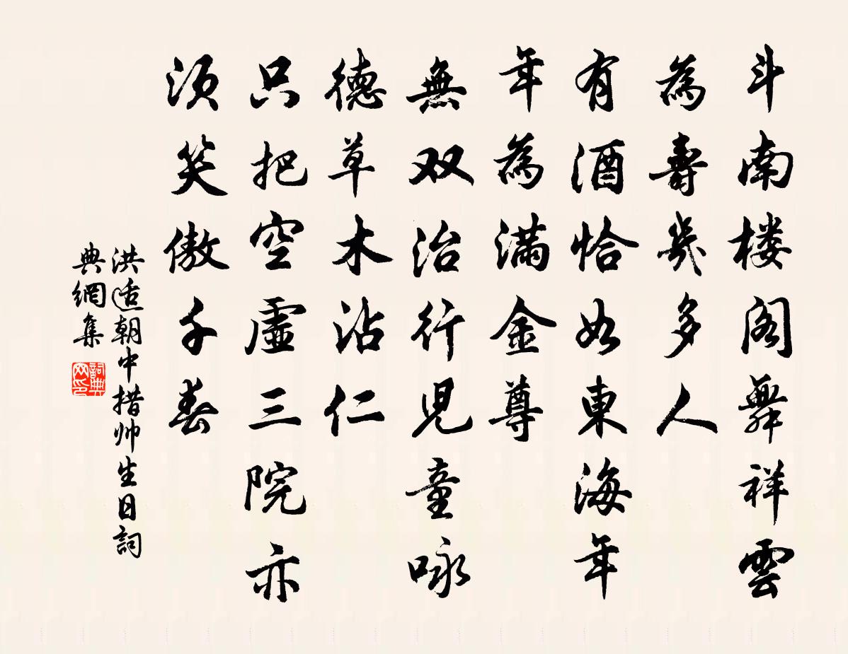 詩詞名句歷史字典書法欣賞書法字典國語詞典說文解字康熙字典古漢語字典標 題 作 者 詩 句 朝中措(帥生日)作者:洪适 朝代:宋代朝中措(帥生日)原文斗南樓閣舞祥雲。為壽幾多人。有酒恰如東海,年年為滿金尊。無雙治行,兒童詠德,草木沾仁。只把空虛三院,亦須笑傲千春。詩詞問答問:朝中措(帥生日)的作者是誰?答:洪适問:朝中措(帥生日)寫於哪個朝代?答:宋代問:朝中措(帥生日)是什麼體裁?答:詞洪适朝中措(帥生日)書法欣賞朝中措(帥生日)書法作品詩詞推薦浮丘道人招魂歌汪元量〔宋代〕有客有客浮丘翁,一生能事今日終。齧氈雪窖身不容,寸心耿耿摩蒼空。睢陽臨難氣塞充,大呼南八男兒忠。我公吳狀元史泳輓詞戴栩〔宋代〕理學通深藝學高,一官俄逐盛年拋。門中{上日下兆}董刊新志,海內陳雷哭舊交。黃落己空秋半葉,清芬未著臘寄題溪口廣慈院范仲淹〔宋代〕越中山水絕纖塵,溪口風光步步新。若得會稽藏拙去,白雲深處亦行春。次韻劉貢父和韓康公憶其弟持國二首蘇轍〔宋代〕愛君憂世老彌深,特操要須得失臨。晚歲飛騰推有德,故鄉安穩信無心。小邦近似西山隱,元氣終當北斗斟。聖主送紹興帥湯相得請洞霄歸括蒼二首曾幾〔宋代〕誰言富貴踐危機,永日深春故里歸。煙雨高樓增意氣,蓬萊傑閣少光輝。向來赤舄又遵陸,此去青鞋長掩扉。畫戟村居陸游〔宋代〕青藜杖出氛埃外,白版扉開水竹邊。造物與閒仍與健,鄉人知老不知年。齋居每袖持螯手,妄想寧流見麴涎?昨夜奉和同太子監守違戀李元嘉〔唐代〕乾象開層構,離明啟少陽。卜征從獻吉,守器屬元良。逖矣凌周誦,遙哉掩漢莊。好士傾南洛,多才盛北場。地分相次尋舉客寄住人(一作再經三叟居)周賀〔唐代〕停橈因舊識,白髮向波濤。以我往來倦,知君耕稼勞。渚田臨舍盡,坂路出檐高。游者還南去,終期伴爾曹。同德精舍舊居傷懷韋應物〔唐代〕洛京十載別,東林訪舊扉。山河不可望,存沒意多違。時遷跡尚在,同去獨來歸。還見窗中鴿,日暮繞庭飛。梨山廟朱繼芳〔宋代〕無處著詩名,梨山萬古青。人間留此像,天上作何星。祝史祠神醉,騷人謁夢醒。當時青紫楦,曾有許精靈。泛舟青溪入水門登高齋奉呈叔康王安石〔宋代〕簿領紛紛惜此時,起攜佳客散沈迷。十圍但見諸營柳,九曲難尋故國溪。牽埭欲隨流水遠,放船終礙畫橋低。子猷宮詞王珪〔唐代〕太液波清水殿涼,畫船驚起宿鴛鴦。翠眉不及池邊柳,取次飛花入建章。古憤楊維楨〔元代〕陰陰璞玉抱,幽幽雌劍鳴。玉屈有時白,劍孤有時並。如何妾玉身,長抱昏石名?如何妾劍身,指為妖鐵精?天乎冬至二首袁燮〔宋代〕陽剛初得一何微,萬彙亨嘉肇此時。只此胚胎須護惜,要教宇宙總熙熙。和人晚秋客思釋文珦〔宋代〕雙轂苦難留,江城又晚秋。故鄉難寄訊,倦客獨登樓。衰草重重恨,征鴻字字愁。漁翁卻蕭散,吹笛過前洲。同孫祖仁王平甫游蔣山作王令〔宋代〕山形郁盤陀,石路隨直紆。蔭松坐興長,飲泉百煩除。憶望江上樓,采翠橫晴虛。愛之不能去,取席臥與俱。若逢詠紅梅花得“花”字曹雪芹〔清代〕疏是枝條艷是花,春妝兒女競奢華。閒庭曲檻無餘雪,流水空山有落霞。幽夢冷隨紅袖笛,遊仙香泛絳河槎。前身普天樂·雨兒飄張鳴善〔元代〕雨兒飄,風兒揚。風吹回好夢,雨滴損柔腸。風蕭蕭梧葉中,寸點點芭蕉上。風雨相留添悲愴,雨和風捲起淒涼。頌古一百則釋正覺〔宋代〕兩堂雲水盡分拏,王老師能驗正邪。利刀斬斷具亡像,千古令人愛作家。此道未喪,知音可嘉。鑿山透海兮唯尊大緣識宋太宗〔宋代〕眼識諸緣相,行持妙法存。明開邪見性,不見有無根。名句推薦水調數聲持酒聽。午醉醒來愁未醒。張先《天仙子·水調數聲持酒聽》 表獨立兮山之上,雲容容兮而在下;屈原《九歌》 罪人或免人罪,難為亦為也。來俊臣《羅織經·問罪卷第十》 賞心樂事共誰論?花下銷魂,月下銷魂。唐寅《一剪梅·雨打梨花深閉門》 山河破碎風飄絮,身世浮沉雨打萍。文天祥《過零丁洋》 欲將心事付瑤琴。岳飛《小重山·昨夜寒蛩不住鳴》 菡萏香銷翠葉殘,西風愁起綠波間。李璟《攤破浣溪沙·菡萏香銷翠葉殘》 水至清則無魚,人太急則無智。佚名《增廣賢文·上集》 忽憶故人今總老。貪夢好。茫然忘了邯鄲道。王安石《漁家傲·平岸小橋千嶂抱》 雨橫風狂三月暮,門掩黃昏,無計留春住。歐陽修《蝶戀花·庭院深深深幾許》
