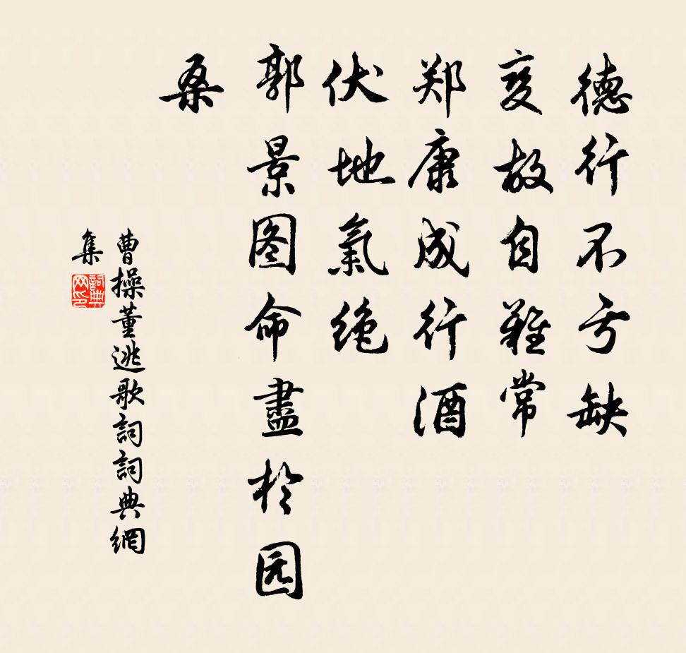 詩詞名句歷史字典書法欣賞書法字典國語詞典說文解字康熙字典古漢語字典標 題 作 者 詩 句 董逃歌詞作者:曹操 朝代:魏晉董逃歌詞原文德行不虧缺,變故自難常。鄭康成行酒,伏地氣絕;郭景圖命盡於園桑。詩詞問答問:董逃歌詞的作者是誰?答:曹操問:董逃歌詞寫於哪個朝代?答:魏晉問:曹操的名句有哪些?答:曹操名句大全曹操董逃歌詞書法欣賞董逃歌詞書法作品詩詞推薦競渡曲劉禹錫〔唐代〕沅江五月平堤流,邑人相將浮彩舟。靈均何年歌已矣,哀謠振楫從此起。楊桴擊節雷闐闐,亂流齊進聲轟然。蛟龍留守待制視學石介〔宋代〕翼翼取則地,菁菁樂育篇。使轓臨學舍,台席俯談筵。韋相傅經書,文翁唱教先。諸生動觀嘆,門外卓卿旃。山路偶興白居易〔唐代〕筋力未全衰,仆馬不至弱。又多山水趣,心賞非寂寞。捫蘿上煙嶺,蹋石穿雲壑。谷鳥晚仍啼,洞花秋不落。提籠游普濟寺王休〔宋代〕排險凌空入磴斜,參差金碧倚煙霞。一山門裡分三剎,萬柳湖邊帶幾家。世人無人吞粟棘,國中有佛吐蓮花。憑欄郊廟歌辭。享太廟樂章。光大舞佚名〔唐代〕大業龍祉,徽音駿尊。潛居皇德,赫嗣天昆。展儀宗祖,重誠孝孫。春秋無極,享奏存存。次韻高蓼洪咨夔〔宋代〕隰葒照眼似舡窗,只欠沙頭野鴨雙。花引穟垂丹作佩,葉扶節起翠為幢。婦收滋味歸羹鼎,兒挹馨香赴酒缸。老我和寬居見懷韻王柏〔宋代〕北望戲馬台,荊榛滿中路。英氣一何多,懷古渺難泝。山河腥日月,虎豹沐雨露。累累楚猴冠,異哉天所賦。豈無閔師自天台見寄石枕林逋〔宋代〕斵石自何許,枕之懷赤城。空廬復蕙帳,旦暮白雲生。秋風王諶〔宋代〕去年相遇釣魚磯,今歲飄飄又入扉。渡月薄侵蟾兔冷,拂雲輕助燕鴻飛。逗遛餘響驚殘夢,催促新寒上裌衣。欲把烏夜啼(八之一)陸游〔宋代〕金鴨余香尚暖,綠窗斜日偏明。蘭膏香染雲鬟膩,釵墜滑無聲。冷落鞦韆伴侶,闌珊打馬心情。繡屏驚斷瀟湘夢,雜劇·玉簫女兩世姻緣喬吉〔元代〕第一折(老旦扮卜兒上,詩云)少年歌舞老年身,喜笑常生滿面春。胭粉豈為無價寶,郎君自是有情人。老身許氏楊秘校秋懷宋祁〔宋代〕治畹當樹蘭,治林當植桂。蘭生可香國,桂茂絕聚薈。邈哉志士節,所趣與人異。意經千古上,心包九垠際。道勝次韻費夢得晚秋感懷三首郭印〔宋代〕搖落秋風晚,吾衰已一翁。不堪居世上,寧忍臥山中。帷幄人焉用,塵埃帝尚蒙。仰天無計出,老淚濺寒空。偈頌一百五十首釋心月〔宋代〕披牯牛皮,輥瞎驢隊。帶水拖泥,東倒西{左犭右屯}。黃梅七百無人會。次洪監簿惠詩韻五首姜特立〔宋代〕相逢可恨十年遲,鍼芥相投更不疑。從此詩筒數來往,不須千里寄相思。謝僧寄拄杖謝邈〔唐代〕峭壁猿啼采處深,一枝奇異出孤岑。感師千里寄來意,發我片雲歸去心。窗外冷敲檐凍折,溪邊閒點戲魚沈。他年題高尚書夜山圖二首趙孟淳〔宋代〕江行山立月盤桓,有客無言樓上看。清興肯隨城漏盡,夜深風露恐高寒。去國毛滂〔宋代〕年來去國故遲遲,坂上長鳴老益悲。不作居山慚捷逕,強須了事學痴兒。風霜冷百何能笑,藜藿空腸未厭飢。里巷贈鷺鷥陳襄〔宋代〕兩個鷺鷥相對立,江邊無物蓼花疏。知君潔白如霜雪,何必臨川更羨魚。又號牛李佚名〔唐代〕門生故吏,不牛則李。(李謂宗閔也)。名句推薦龍噓氣成雲,雲固弗靈於龍也。韓愈《雜說一·龍說》 清漏漸移相望久,微雲未接過來遲。李商隱《辛未七夕》 歸來飽飯黃昏後,不脫蓑衣臥月明。呂岩《牧童 / 令牧童答鍾弱翁》 若待上林花似錦,出門俱是看花人。楊巨源《城東早春》 傷心重見,依約眉山,黛痕低壓姜夔《慶宮春·雙槳蓴波》 風緊雁行高,無邊落木蕭蕭。納蘭性德《河瀆神·風緊雁行高》 天道無親,常與善人。老子《老子·德經·第七十九章》 陌上風光濃處。第一寒梅先吐。李彌遜《十樣花·陌上風光濃處》 秋已盡,日猶長,仲宣懷遠更淒涼。李清照《鷓鴣天·寒日蕭蕭上瑣窗》 梨花風起正清明,遊子尋春半出城。吳惟信《蘇堤清明即事》