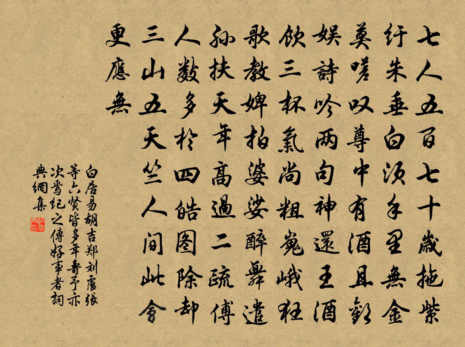 七人五百七十歲,拖紫紆朱垂白須。手裡無金莫嗟嘆,