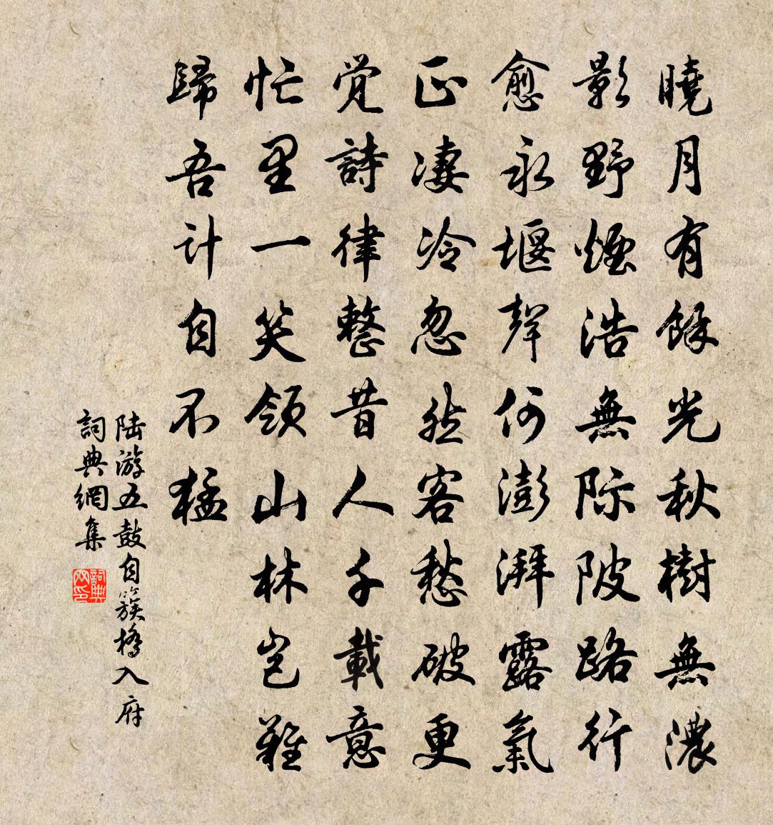 曉月有餘光,秋樹無濃影。野煙浩無際,陂路行愈永。
