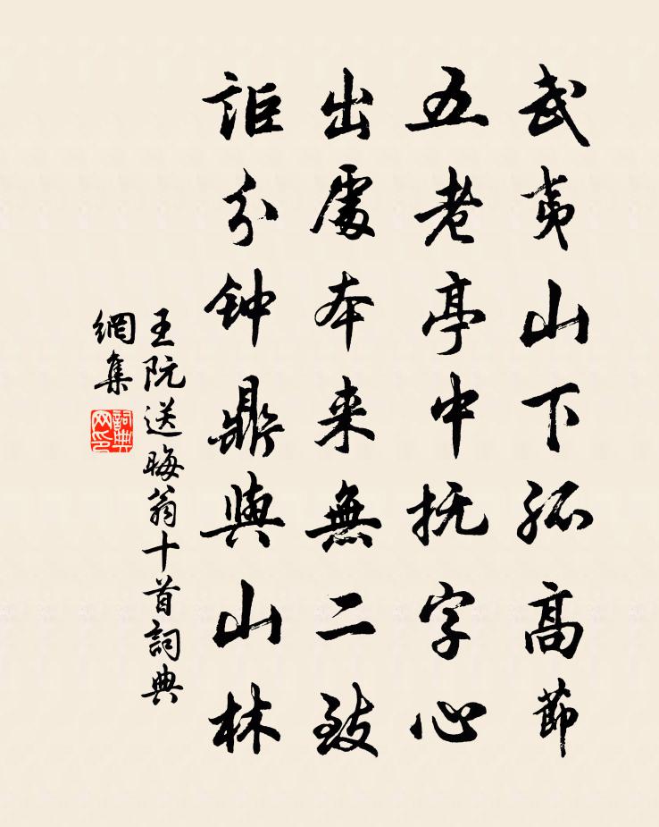 詩詞名句歷史字典書法欣賞書法字典國語詞典說文解字康熙字典古漢語字典標 題 作 者 詩 句 送晦翁十首作者:王阮 朝代:宋代送晦翁十首原文武夷山下孤高節,五老亭中撫字心。出處本來無二致,詎分鐘鼎與山林。詩詞問答問:送晦翁十首的作者是誰?答:王阮問:送晦翁十首寫於哪個朝代?答:宋代王阮送晦翁十首書法欣賞送晦翁十首書法作品詩詞推薦涌金門城望五首方回〔宋代〕蕭條垂柳映枯荷,金碧樓空水鳥過。略剩繁華猶好在,細看冷淡奈愁何。遙知堤上遊人少,漸覺城中空地多。回首野燒陳舜俞〔宋代〕急燒山上草,莫顧山下木。燒草得地美,欲種來歲粟。乘風縱巨燎,烈烈遍岩谷。既不問玉石,何暇愛麋鹿。寄謝木蘭花周紫芝〔宋代〕江頭雨後山如髻。催送新涼風有意。月來楊柳綠陰中,秋在梧桐疏影外。小窗紋簟涼如水。歲歲年年同此味。眼前徐稚山林出詩見示因書其後顧禧〔宋代〕論交常憶少年時,耐久如君倍足思。金馬不移孺子節,石麟肯負志公期。經霜傲菊依幽徑,漾月修篁種曲池。六客奉和潁川公秋夜上官儀〔唐代〕泬寥空色遠,芸黃淒序變。涸浦落遵鴻,長飆送巢燕。千秋流夕景,萬籟含宵喚。峻雉聆金柝,層台切銀箭。燕城讀史羅公升〔宋代〕中屠蹶張一健卒,欲斬嬖倖尊朝廷。如何董賢小豎子,迨退宰輔如優伶。送人西上劉克莊〔宋代〕賀白詞□□□□,□□□□□□先。飛騰海鶻並天馬,隔結□□□□□。□□□□□點首,劍神紫氣夜沖天。□□送司空曙之蘇州苗發〔唐代〕盤門吳舊地,蟬盡草秋時。歸國人皆久,移家君獨遲。廣陵經水宿,建鄴有僧期。若到西霞寺,應看江總碑。絕句萬哲〔宋代〕少日時時負百憂,從人絡馬與牽牛。中年置此身如竹,荏苒風前得自由。贈陳望堯李鹹用〔唐代〕若說精通事藝長,詞人爭及孝廉郎。秋螢短焰難盈案,鄰燭餘光不滿行。鵠箭親疏雖異的,桂花高下一般香。明時送黃補闕南遷杜荀鶴〔唐代〕得罪非天意,分明謫去身。一心貪諫主,開口不防人。自古有遷客,何朝無直臣?喧然公論在,難滯楚南春。枕上口占陸游〔宋代〕五十年前詩酒身,山陰風月尚如新。閒愁已是無闌障,一枕春寒更惱人。黃鵠歌先秦無名〔先秦〕悲夫黃鵠之早寡兮。七年不雙。宛頸獨宿兮不與眾同。夜半悲鳴兮想其故雄。天命早寡兮獨宿何傷。寡婦念此兮泣登石台山與劉次皋李揆王度周仲卿聯句胡融〔宋代〕璇台插中天,乾坤發端倪。荊榛夾險道,自古誰攀躋。嘉予二三友,乘興同杖藜。行行陟其巔,一榼手自攜。上摩送葉子春赴官司慈谿陳耆卿〔宋代〕眼邊英氣鬱嵯峨,甫及同堂奈別何。正心簿書觀道力,且於言動卜天和。聖門克己勤登岸,後學褆身感逝波。三載臨江仙朱敦儒〔宋代〕直自鳳凰城破後,掰釵破鏡分飛。天涯海角信音稀。夢回遼海北,魂斷玉關西。月解重圓星解聚,如何不見人歸。春日三首范成大〔宋代〕西窗一雨又斜暉,睡起薰籠換袷衣。莫放珠簾遮洞戶,從教燕子作雙飛。送男存心如燕二月二十五日夜走筆古體方回〔宋代〕我年三十四,鄂漢脫戰場。四月扁舟東,生汝於建康。九載鶴山門,靜翁還鵷行。實為舊主人,別意殊徊徨。爾時和陶阻風於規林韻寄陳時中二首吳芾〔宋代〕人皆有還往,我獨無所之。若不見君子,誰與同襟期。嗟我已衰老,無復少壯時。縱使善衛養,豈能長在茲。願言初伏日招王幾道小飲歐陽修〔宋代〕北園數畝官牆下,嗟我官居如傳舍。滹沱北渡馬踏冰,西山病歸花已謝。落英不見空繞樹,細草初長猶可藉。空園名句推薦嘆息老來交舊盡,睡來誰共午甌茶。陸游《幽居初夏》 此後錦書休寄,畫樓雲雨無憑。晏幾道《清平樂·留人不住》 記得別伊時,桃花柳萬絲。納蘭性德《菩薩蠻·新寒中酒敲窗雨》 桃花春水淥,水上鴛鴦浴。韋莊《菩薩蠻》 交朋友增體面,不如交朋友益身心王永彬《圍爐夜話·第四五則》 春風不相識,何事入羅幃。李白《春思》 黯然銷魂者,唯別而已矣!江淹《別賦》 迢遞嵩高下,歸來且閉關。王維《歸嵩山作》 嶺外音書斷,經冬復歷春。宋之問《渡漢江》 苦心中常得悅心之趣;得意時便一失意之悲。洪應明《菜根譚·概論》