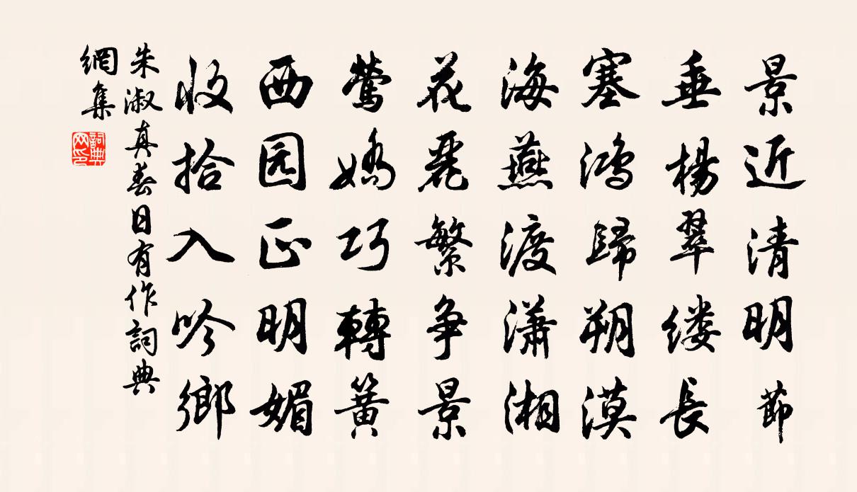 景近清明節,垂楊翠縷長。塞鴻歸朔漠,海燕渡瀟湘。