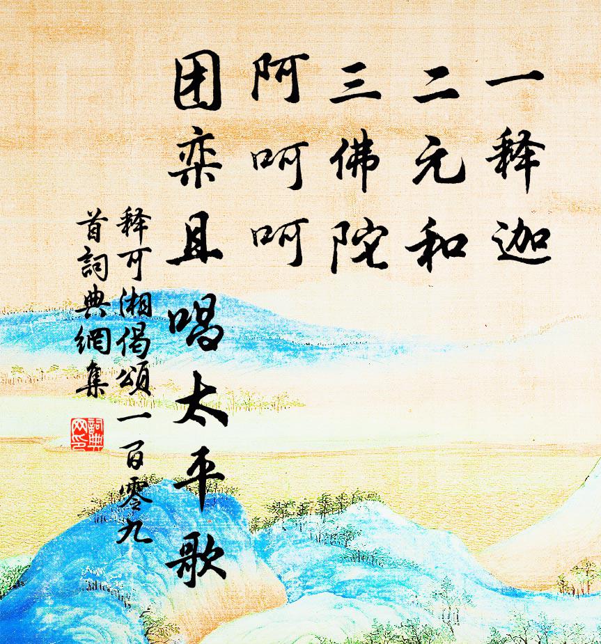 詩詞名句歷史字典書法欣賞書法字典國語詞典說文解字康熙字典古漢語字典標 題 作 者 詩 句 偈頌一百零九首作者:釋可湘 朝代:宋代偈頌一百零九首原文一釋迦,二元和,三佛陀。阿呵呵,團欒且唱太平歌。詩詞問答問:偈頌一百零九首的作者是誰?答:釋可湘問:偈頌一百零九首寫於哪個朝代?答:宋代釋可湘偈頌一百零九首書法欣賞偈頌一百零九首書法作品詩詞推薦鷓鴣天(壽熊左史)黃定〔宋代〕間世文章萬選錢。清時平步八花磚。大開紫府瑤池宴,正是橙黃橘綠天。金燭里,玉堂前。翰林元是武夷仙。雍容好事近(和子直惜春)葛立方〔宋代〕歸日指清明,肯把話言輕食。已是飛花時候,賴東風無力。青簾沽酒送春歸,莫惜萬金擲。屈指明年春事,有紅梅蓮子寄外龍輔〔宋代〕蓮房新摘袖中攜,剖寄青青子數枚。若識心頭最清淨,莫嫌根腳本污泥。論語絕句一百首張九成〔宋代〕大都禮義本人情,若論人情莫若親。苟使於親無曲折,不知人視作何人。頌十玄談釋印肅〔宋代〕還還,不消下水及登山。左右逢源名實相,從斯周匝臥雲閒。禪人並化主寫真求贊釋正覺〔宋代〕形衰柳蒲,心老江湖。魚潛波路靜,鶴夢月巢孤。不損色香三昧手,粉黏雙股理華須。秋夜寓直即事懷贈蕭令公裴侍郎兼通簡南省諸友人王灣〔唐代〕聖主萬年興,賢臣數載升。古靈傳岳秀,宏量稟川澄。畿甸舉長策,風霜秉直繩。出車遙俗震,登閣滿朝稱。賦簡和豎伯梅六題一孤芳二山間三雪中四水邊五月胡寅〔宋代〕欣逢冷艷破冬溫,更待飛霙滌晝昏。剩欲約君移酒處,小橋斜過竹邊門。自遣李覯〔宋代〕富貴浮去畢竟空,大都仁義最無窮。一千八百周時國,誰及顏回陋巷中。春王正月公羊高〔先秦〕元年者何?君之始年也。春者何?歲之始也。王者孰謂?謂文王也。曷為先言“王”而後言“正月?”王正月也。送元中丞江淮轉運(一作王維詩)錢起〔唐代〕薄稅歸天府,輕徭賴使臣。歡沾賜帛老,恩及卷綃人。去問殊官俗,來經幾劫春。東南御亭上,莫問有風塵。稽山道中陸游〔宋代〕禹陵草木初沾露,謝墅人家已閉門。八十年間幾來往,痴頑不料至今存。多景樓故址林景熙〔宋代〕灰飛百尺景愁人,斷礎殘蕪但鹿群。對峙金焦兩拳石,平分淮浙半江雲。乾坤幾沸蕭公鑊,風浪空藏郭氏墳。野衲清平樂韋莊〔唐代〕何處游女,蜀國多雲雨。雲解有情花解語,剗地繡羅金縷。妝成不整金鈿,含羞待月鞦韆。住在綠槐陰里,門臨春和虞使君賦山茶花二首程公許〔宋代〕梅花蘸碧江當,似怪高人金玉音。詠絮可憐清寡伴,冠霞來與共論心。定知名迫瓊瑤響,莫情杯浮琥珀深。姑射清道一大尹存之、庭美二學士簡於聖明…四韻呈上三君子杜牧〔唐代〕九金神鼎重丘山,五玉諸侯雜珮環。星座通霄狼鬣暗,戍樓吹笛虎牙閒。斗間紫氣龍埋獄,天上洪爐帝鑄顏。若念法雲寺和湯立賢留題王之道〔宋代〕寺占湖邊數畝山,杖藜偷得一朝閒。昨朝恰別居巢長,又喜新詩在壁間。奉和子華持國玉汝來飲西軒梅堯臣〔宋代〕我誠官局冷,終日事靡括。每耽古人書,似與世俗闊。同道三四人,來過慰饑渴。迭相陳語言,曾未厭刀呾。自中淵禪人之乳峰釋智愚〔宋代〕淵默雷聲善發機,鈍根難下頂門椎。青霜黃葉壓窮野,急急歸來見隱之。暑中久不把酒盆池千葉白蓮忽開一枝欣然小酌陸游〔宋代〕千葉芙蕖白玉膚,一樽沆瀣碧琳腴。極知俱出氛埃外,我亦秋風山澤臞。名句推薦黃昏寒立更披襟,露浥清香悅道心。司空圖《白菊雜書四首》 理郁者苦貧,辭溺者傷亂劉勰《文心雕龍·神思》 記玉關踏雪事清游,寒氣脆貂裘。張炎《八聲甘州·記玉關踏雪事清游》 相逢不用忙歸去,明日黃花蝶也愁。蘇軾《九日次韻王鞏》 雪霜凌厲而見殺,來歲不改其性也黃庭堅《書幽芳亭記》 苟不至德,至道不凝焉。子思《中庸·第二十七章》 有風方起浪,無潮水自平。吳承恩《西遊記·第七十五回》 君不見走馬川行雪海邊,平沙莽莽黃入天。岑參《走馬川行奉送出師西征 / 走馬川行奉送封大夫出師西征》 料得他鄉遇佳節,亦應懷抱暗悽然。韓偓《寒食日重遊李氏園亭有懷》 寂寂竟何待,朝朝空自歸。孟浩然《留別王侍御維 / 留別王維》